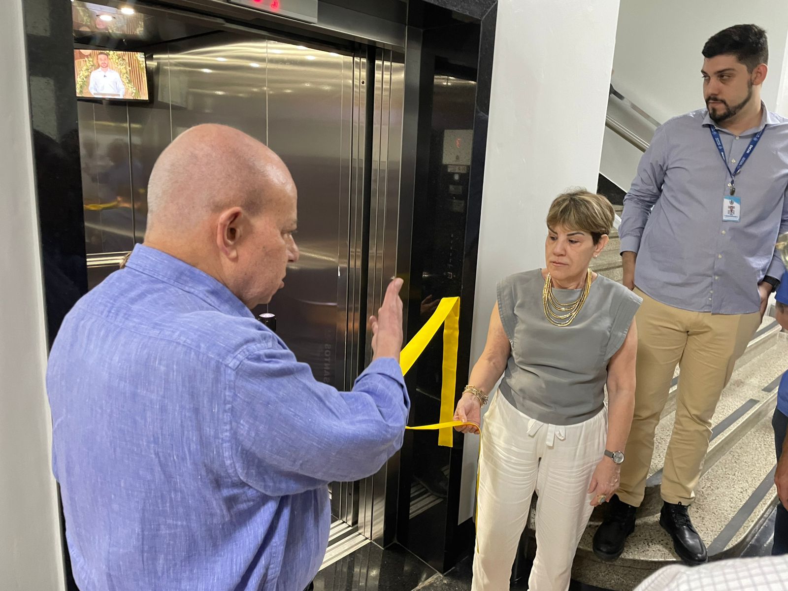 O provedor Ariovaldo Feliciano, membros da mesa administrativa e diretoria inauguraram o novo elevador, puxando a tradicional fita amarela. “Dando continuidade ao compromisso que assumi ao chegar à Santa Casa, o de modernizar a instituição, hoje entregamos mais um importante avanço: o novo elevador. Estamos iniciando a troca de todos os equipamentos, um passo fundamental dentro do nosso projeto de modernização e melhoria contínua do hospital”, destaca o provedor.