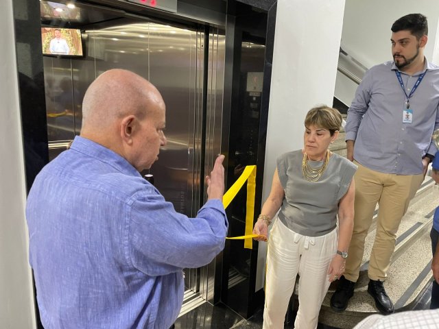 O novo Elevador nº 2 foi oficialmente entregue e entrou em funcionamento na tarde desta segunda-feira (08/12/2025), trazendo mais conforto, rapidez e segurança para o público. Agora exclusivo para passageiros, o equipamento não poderá ser utilizado para transporte de macas, leitos ou carrinhos funcionais, que continuarão sendo direcionados ao Elevador nº 1.