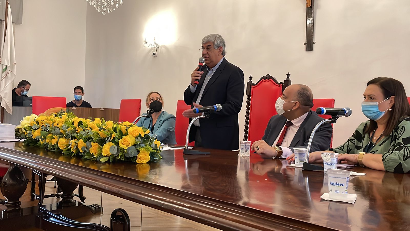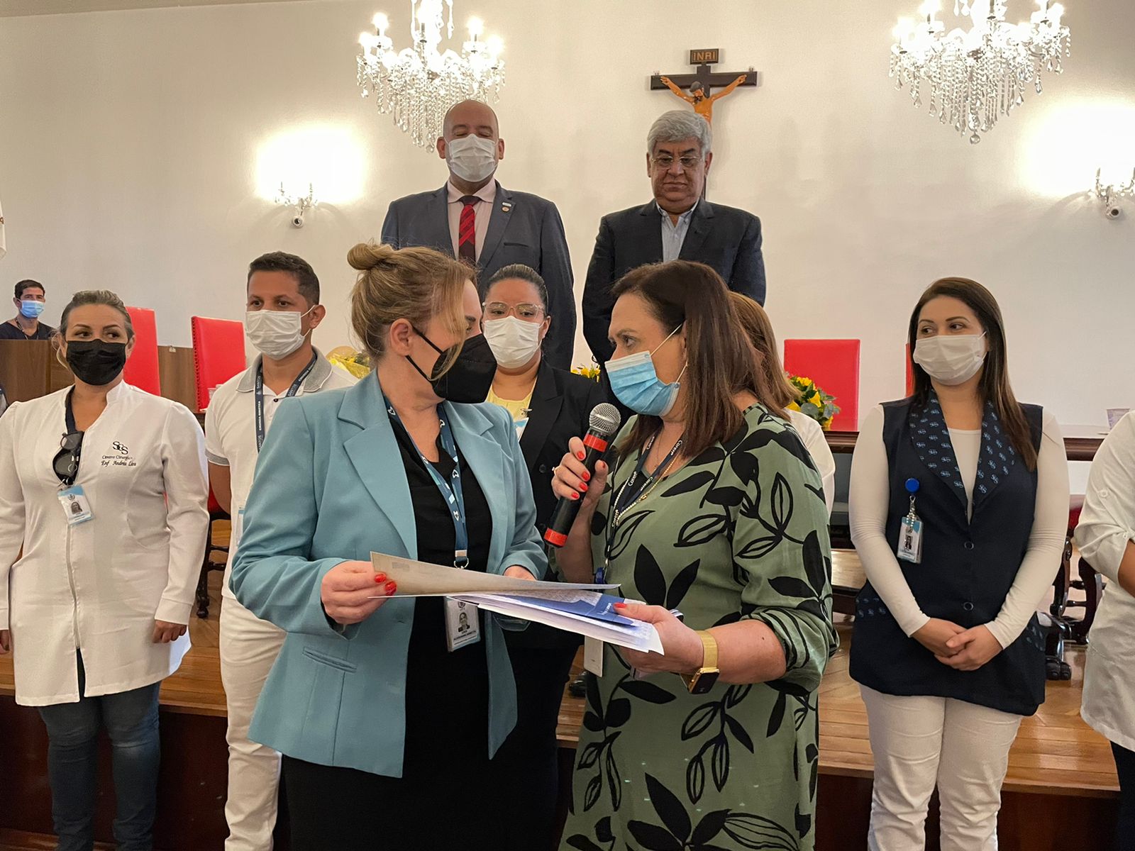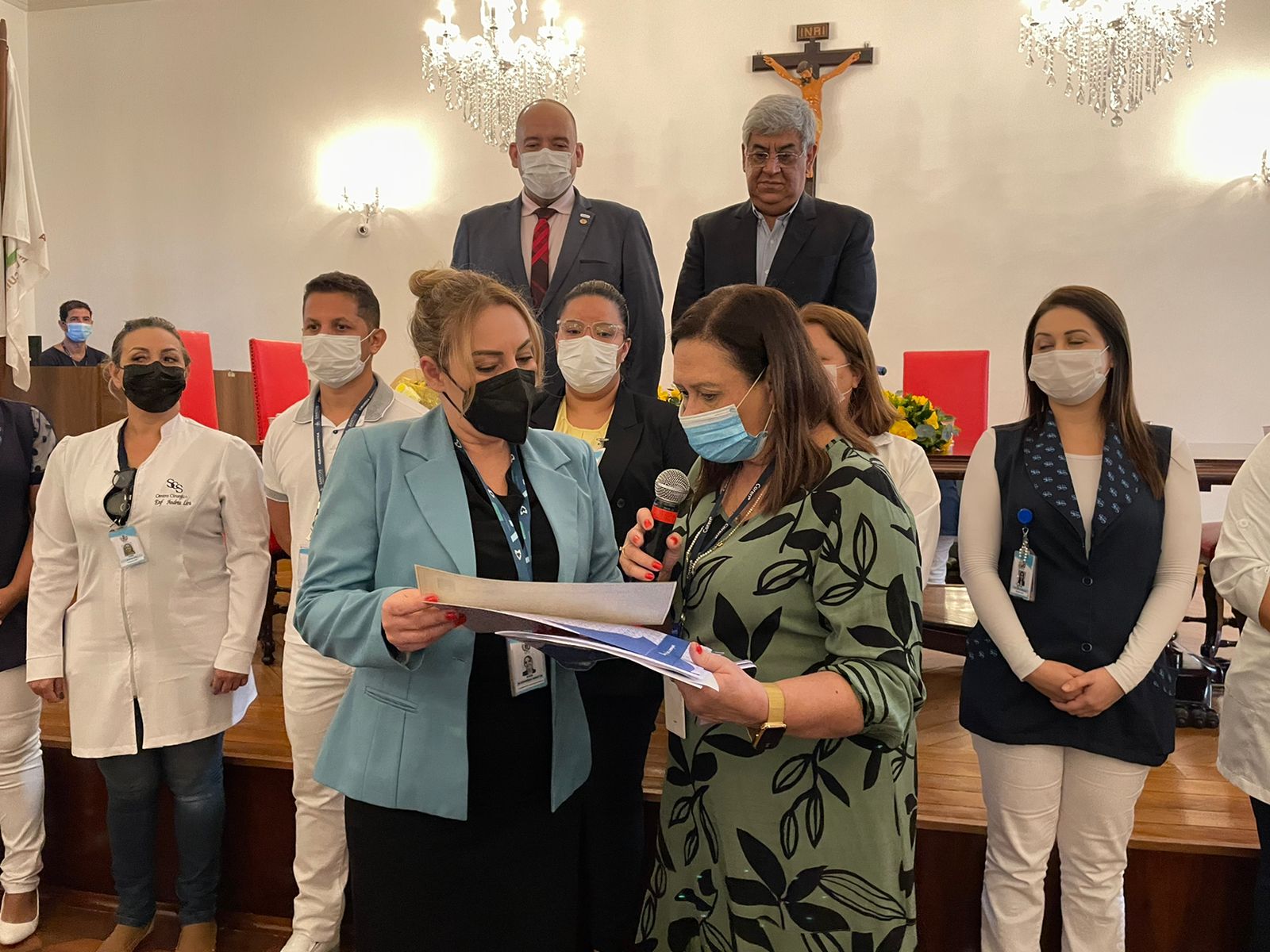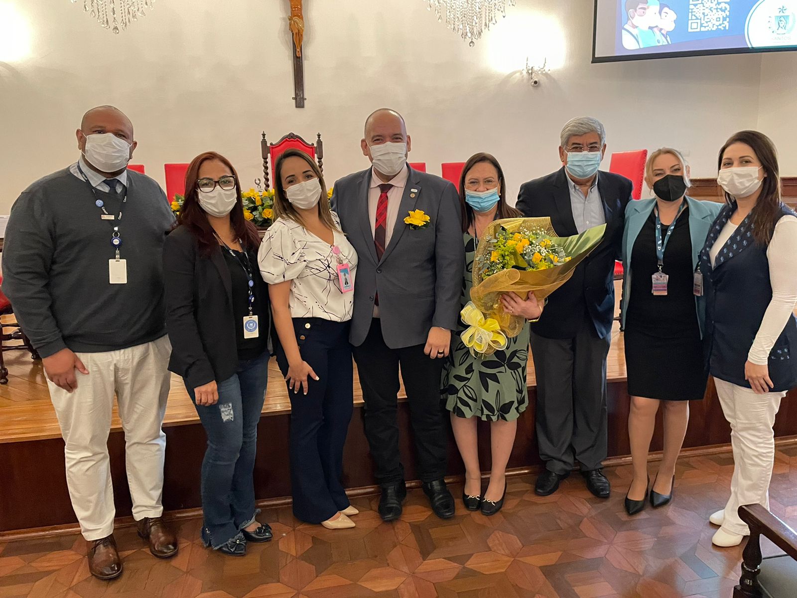 O vice provedor da Irmandade, Carlos Teixeira Filho, tomou a vez da palavra e aproveitou a oportunidade para enaltecer a representatividade da atuação da presidente da Comissão de Controle da Qualidade, Eliana Lopes Feliciano, esposa do provedor Ariovaldo Feliciano, parafraseando que “’ao lado’ de um grande homem, sempre existe uma grande mulher”, se referindo à importância de suas ações para a evolução e transformação da instituição.