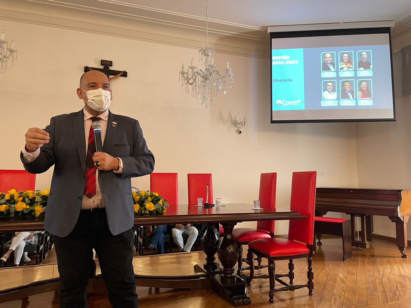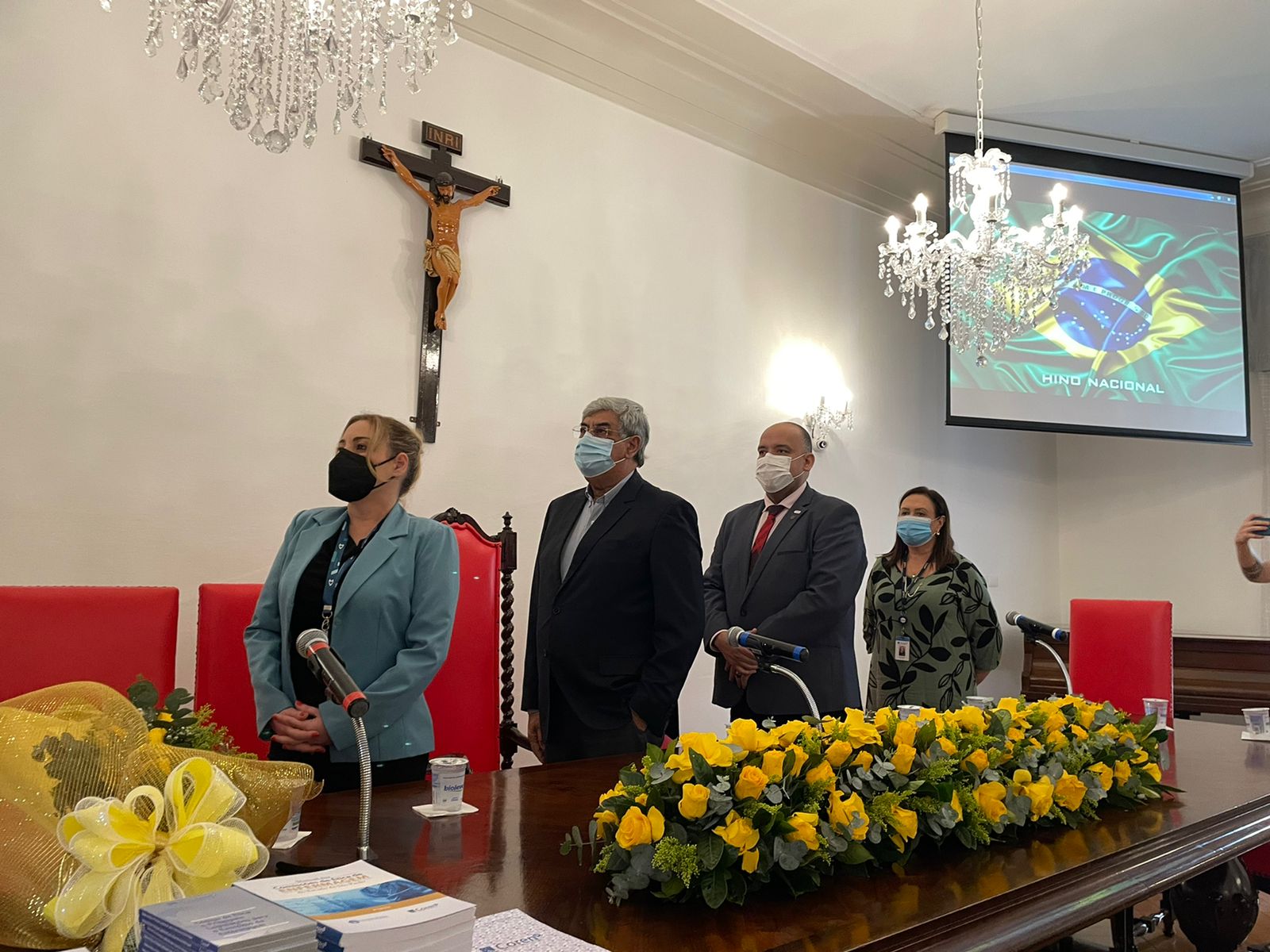 Após o discurso do vice provedor, os 22 membros da Comissão de Ética de Enfermagem 2022/2025 tomaram posse, sendo eleita como presidente a Enfª. Juliana Cordella, e como secretária a Enfª. Ionara de Medeiros.