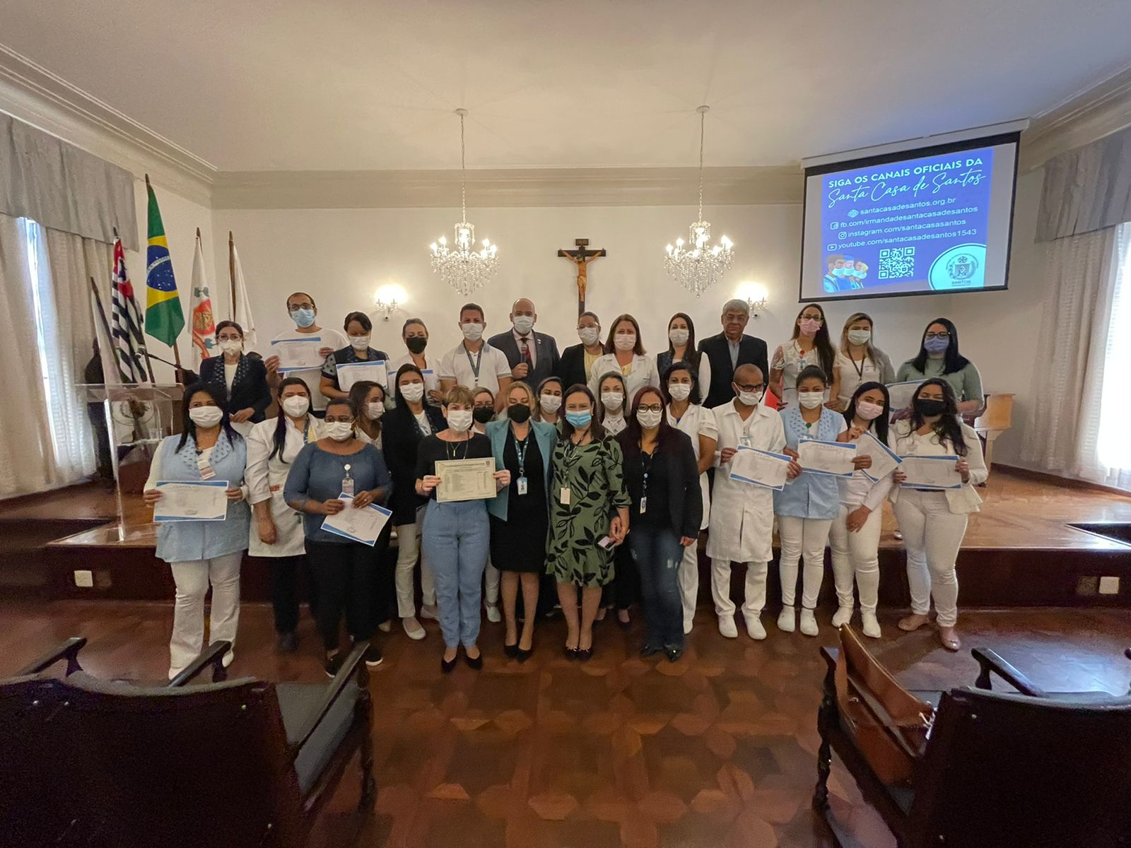 Cerimônia aconteceu no consistório da Santa Casa de Santos e contou com a presença do presidente do Coren-SP, James Francisco dos Santos.