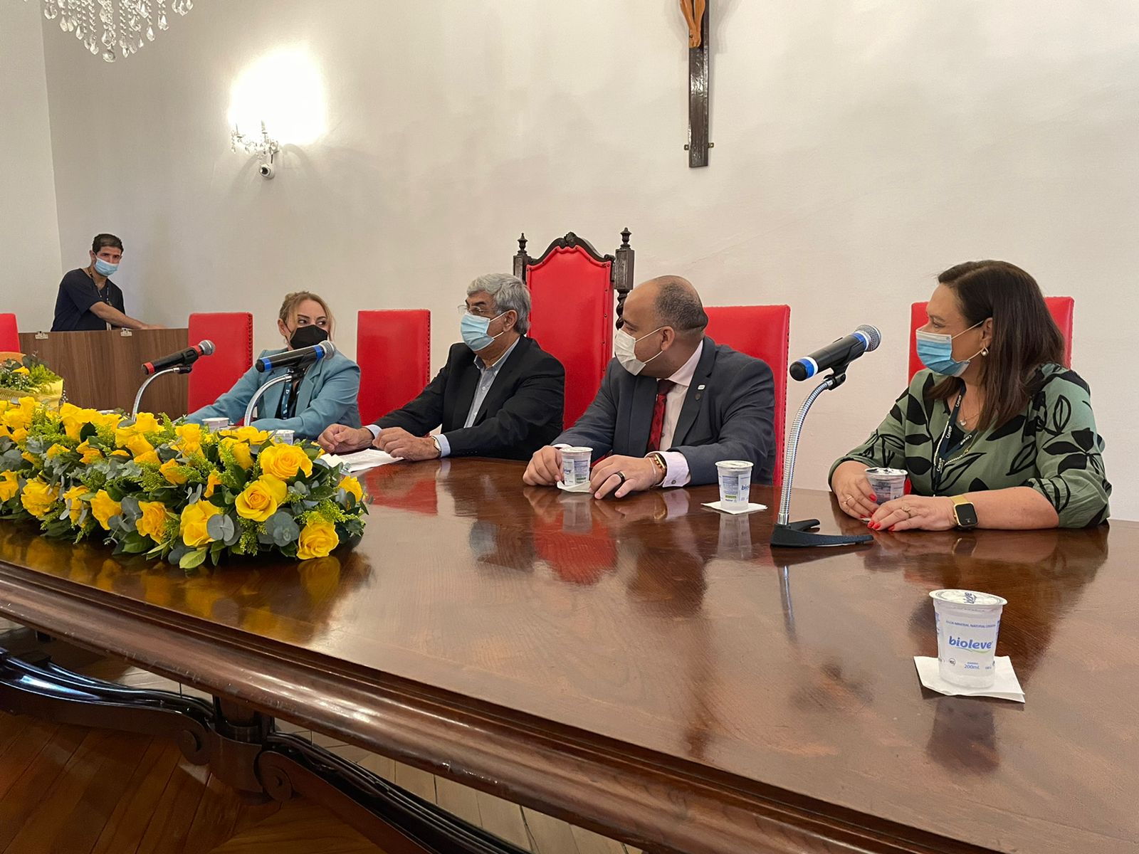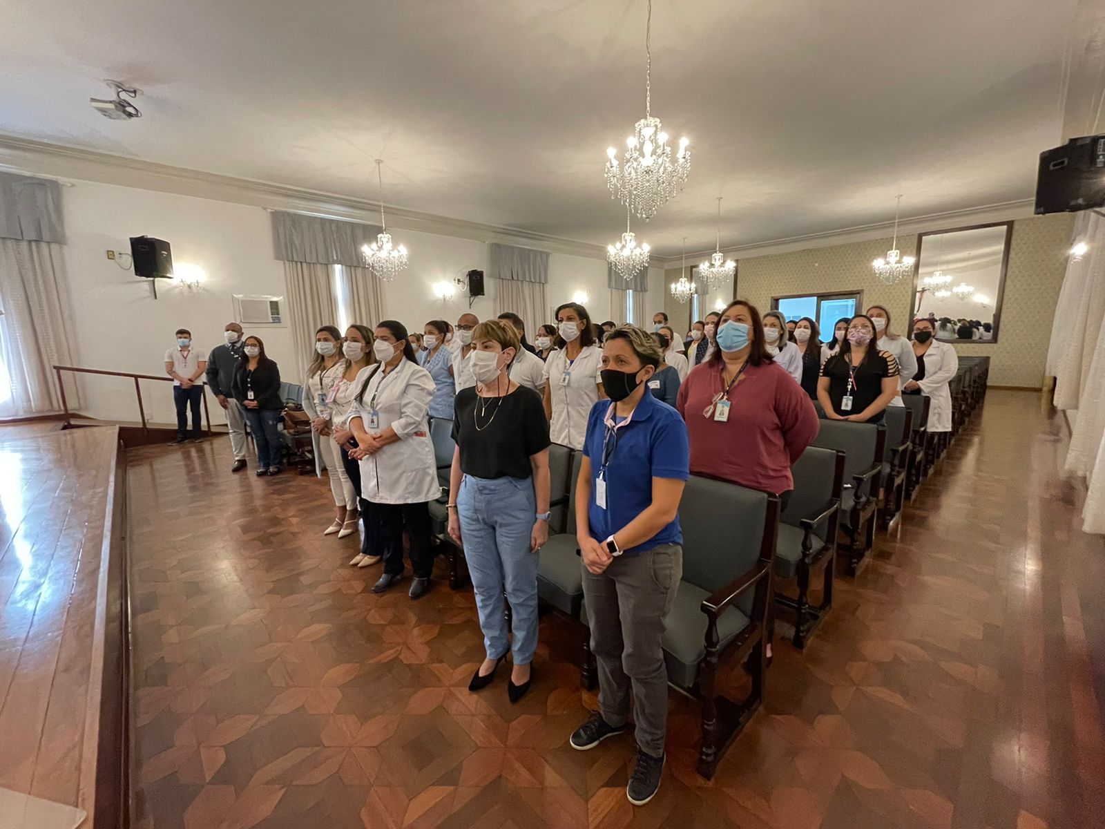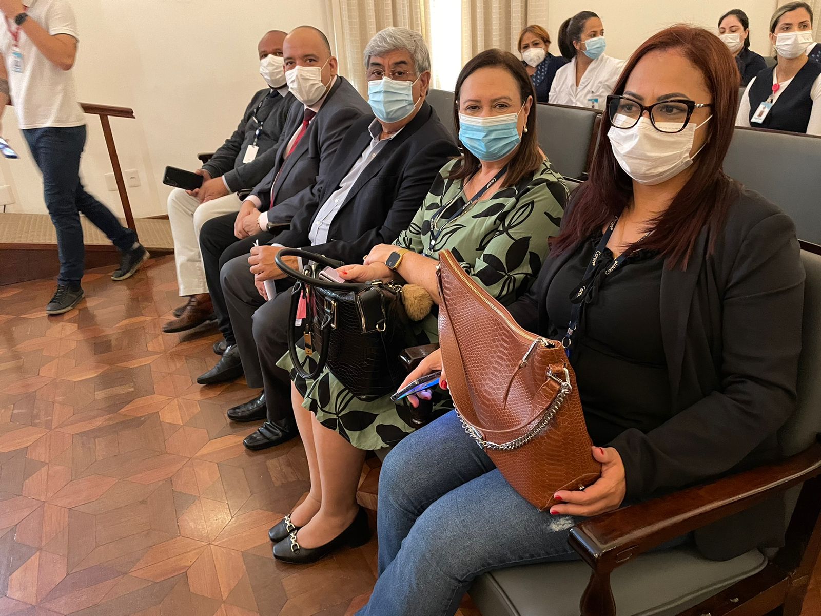 Para mesa de honra, foram convidados a tomar lugar: o vice provedor, Carlos Teixeira Filho; a gerente de Enfermagem, Alessandra Roberto Conceição Manetta; o presidente do Coren-SP, James Francisco dos Santos; e a coordenadora das Comissões de Ética do Coren-SP, Ivete Losada Alves Trotti.