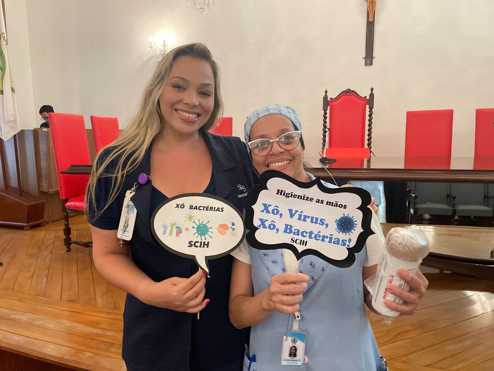 Além disso, foi apresentado vídeos educacionais que ensinam a técnica correta de higienizar as mãos e também o Índice da Taxa de Infecção Hospitalar da Santa Casa de Santos, que em 2015 era de 5,5% e em 2023 caiu para 2,2%. Esse número é o resultado do trabalho da equipe da CCIH, dentro das unidades de internação, especialmente nas UTI’s.