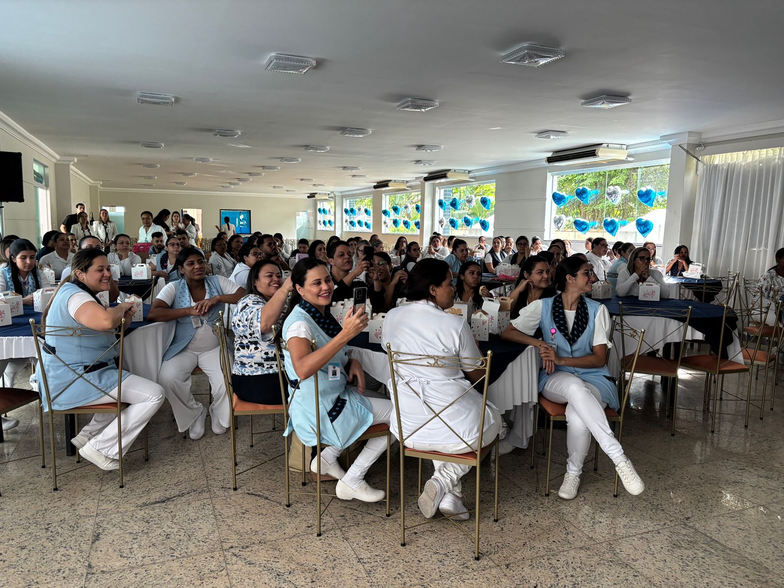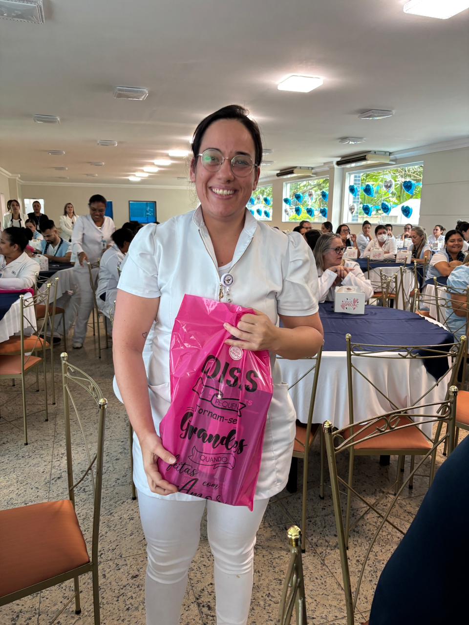 Também foram sorteados diversos brindes e os colaboradores receberam uma caixa com lanche e um porta crachá especial da Semana da Enfermagem.