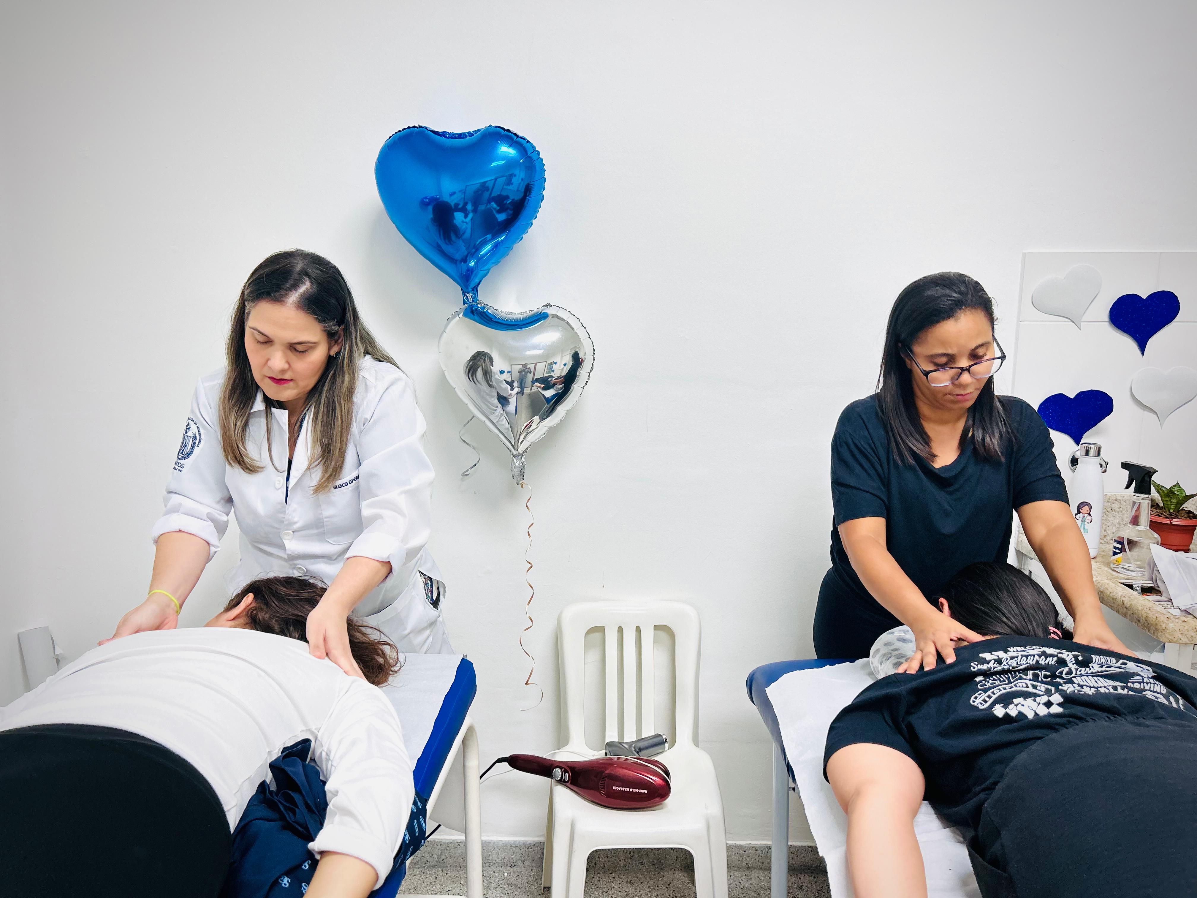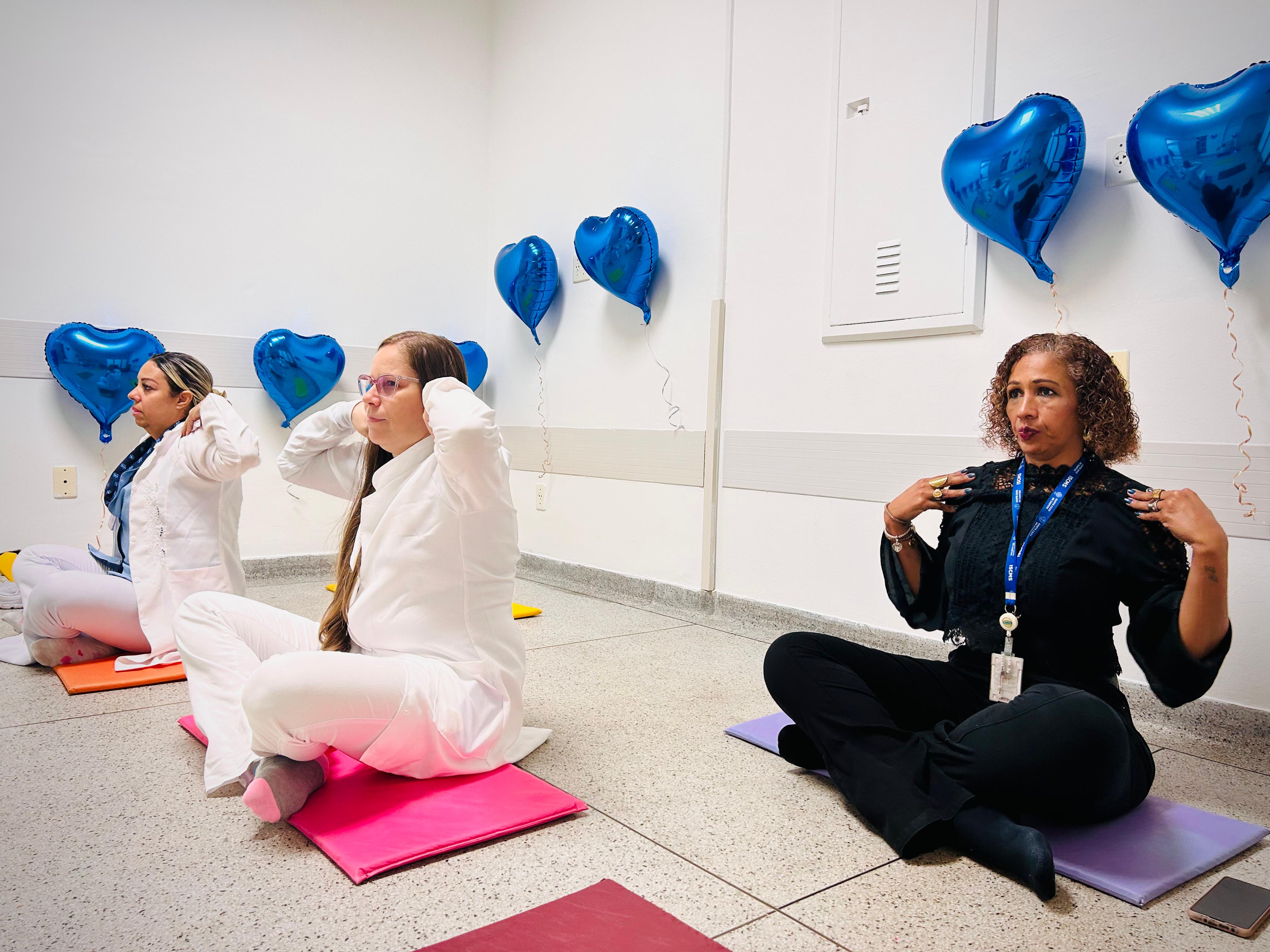 Aula de Yoga e Massagem.