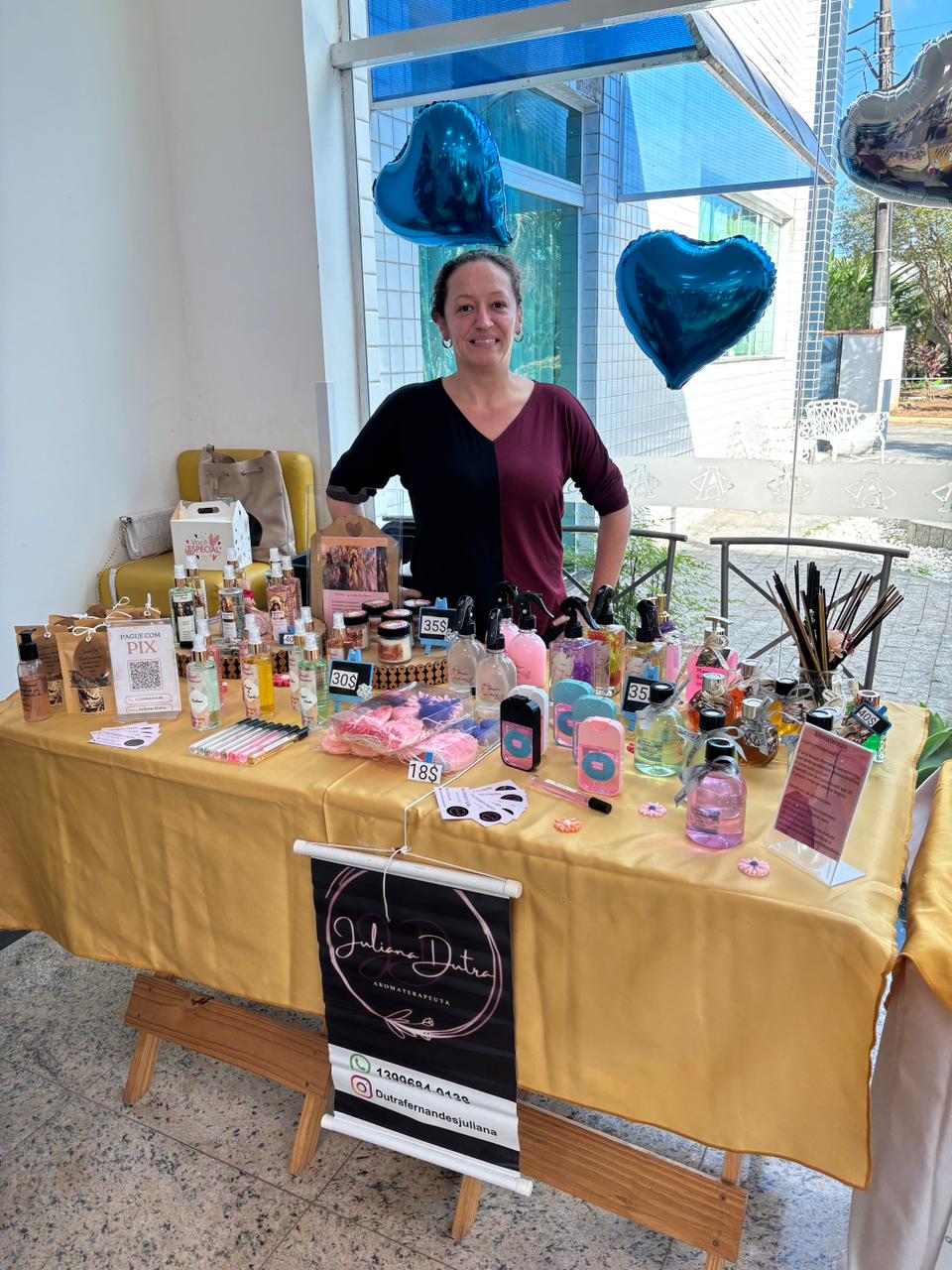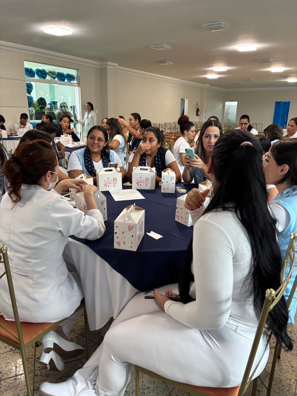 No salão rosa do 2ºA, representantes da Mary Kay, ministraram aulas de auto maquiagem com dicas de beleza. Ficou disponível um toten de fotos impressas para os colaboradores registrarem o momento. Além disso, também tinha disponível aula prática de Yoga e massagem.