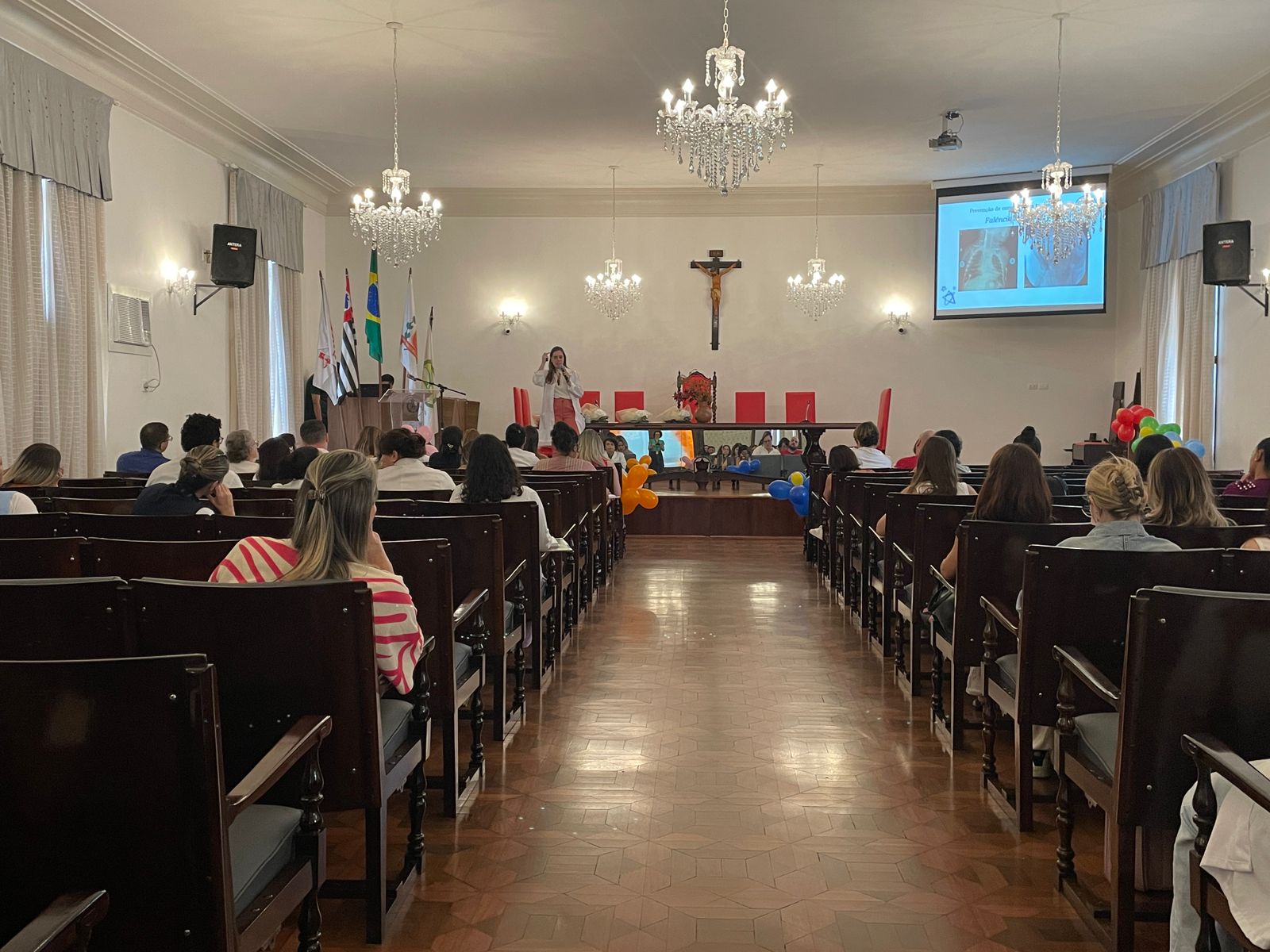 Depois, foi a vez da nutricionista da Santa Casa, Juliana Gonzaga, que explicou sobre a nutrição do paciente oncológico, e da Enfª. Dileiny Geronutti, que falou dos cuidados paliativos em pacientes oncológicos.
