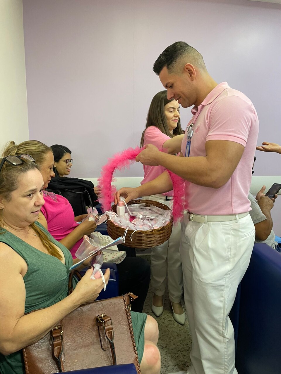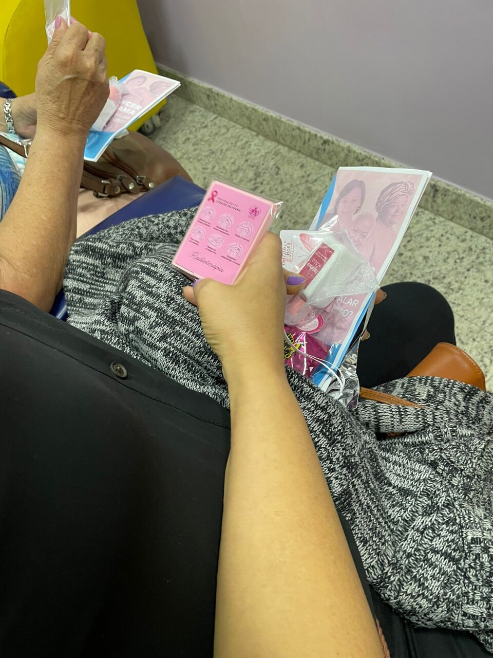 Durante a programação, os pacientes participaram de uma roda de conversa com nutricionistas, que abordaram hábitos alimentares saudáveis e a importância da nutrição na prevenção e no tratamento do câncer. O momento contou ainda com um café da tarde especial e a entrega de brindes e folders informativos com orientações sobre prevenção, autoexame e a realização da mamografia.