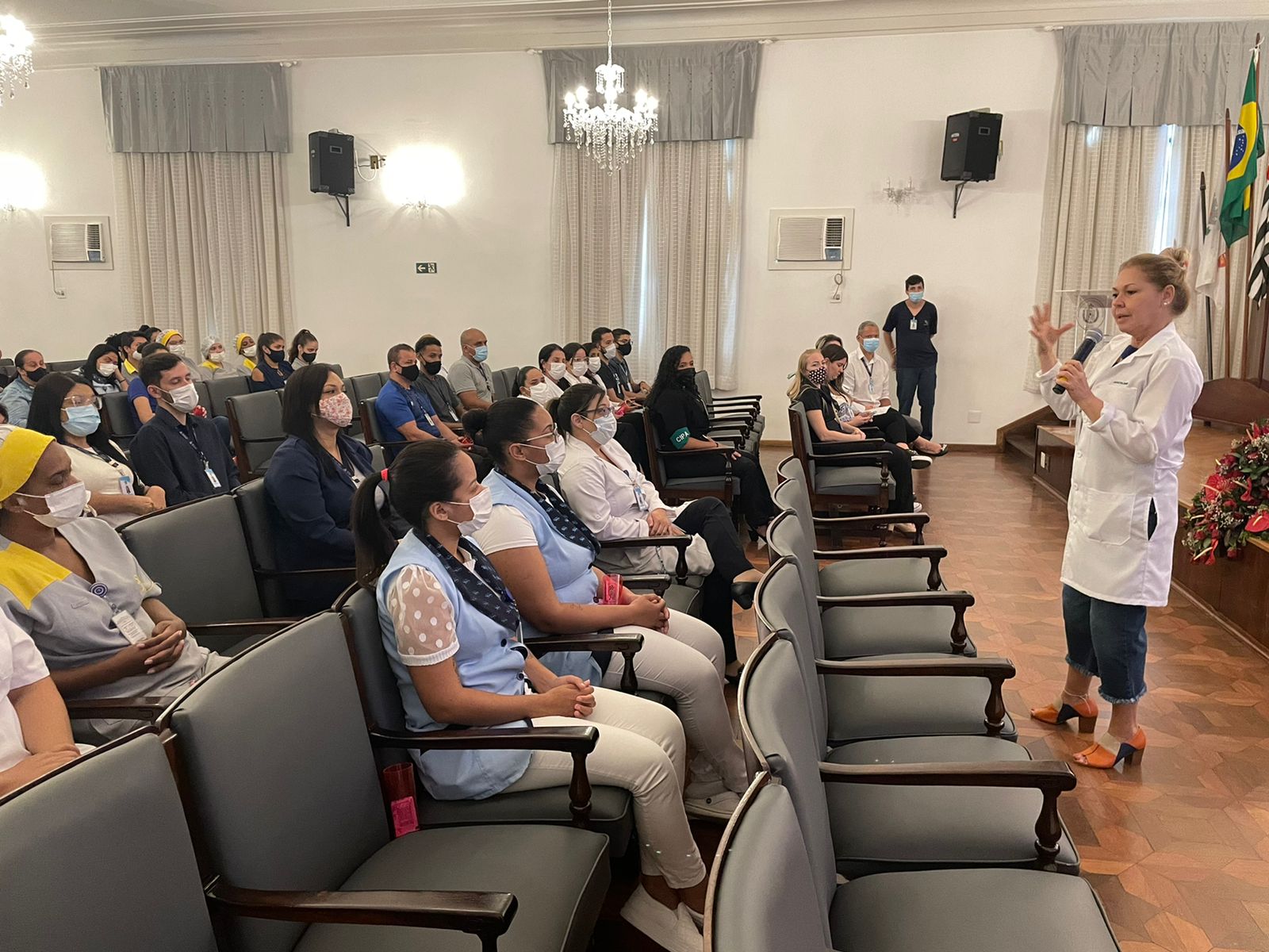 Vale destacar que, na noite de ontem, das 19h às 21h, completando a programação do 2º dia de evento, e para atender os funcionários do noturno, aconteceram também as palestras “Serviço de Controle Hospitalar: O que você não sabia”, com o Enfº Sérgio Félix Cardoso, e “Prevenção de Acidentes de Trabalho e Trajeto”, com o Técnico de Segurança do Trabalho, Flávio Leite, que apresentou o tema novamente para contemplar as equipes que não puderam participar no período da manhã.