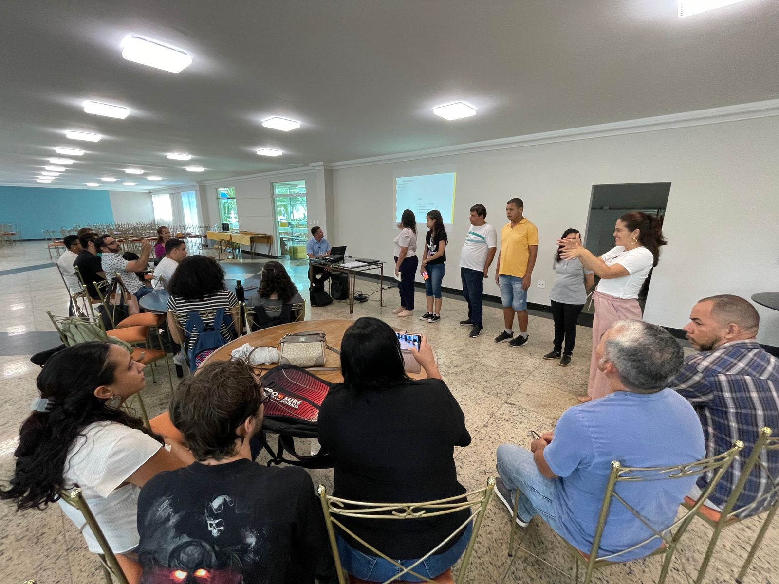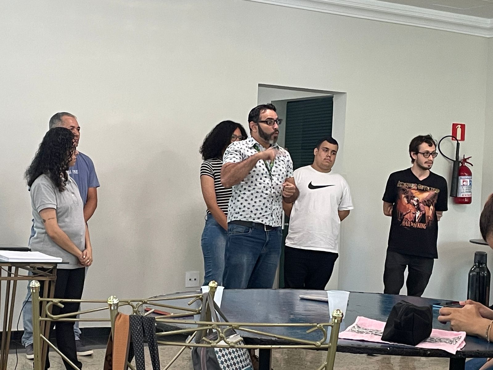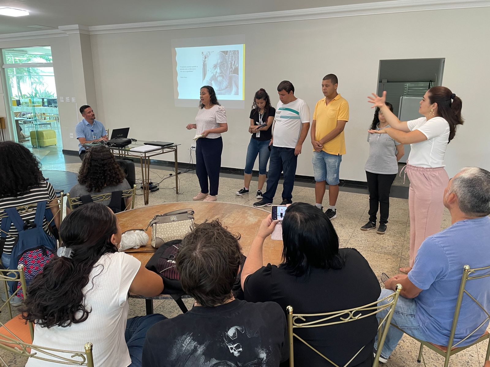 Após a apresentação, que foi aplaudida e aprovada por todos os presentes, os certificados foram entregues aos participantes pelos profissionais que ministraram as aulas, como forma de reconhecimento pela dedicação e empenho no compartilhamento de conhecimento.