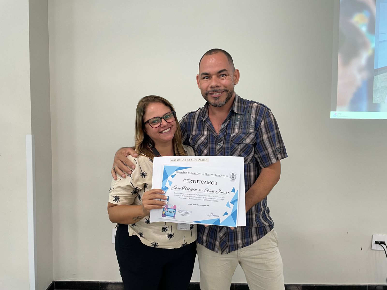 A cerimônia de encerramento para a entrega de certificados aconteceu no salão da Abrescas, com as presenças do vice provedor da Santa Casa, Carlos Teixeira Filho, e do diretor de apoio, Octavio Tavolaro Filho.