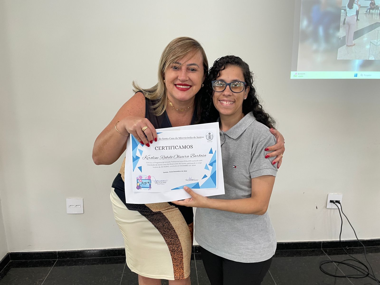 Nesta quinta, dia 19/12, a Santa Casa de Santos realizou a entrega dos certificados de conclusão de curso para os participantes do Programa de Inclusão Profissional para PcD. Esta é a 4ª turma formada pelo curso criado pela instituição, que tem a finalidade de preparar pessoas com deficiência para o mercado de trabalho.