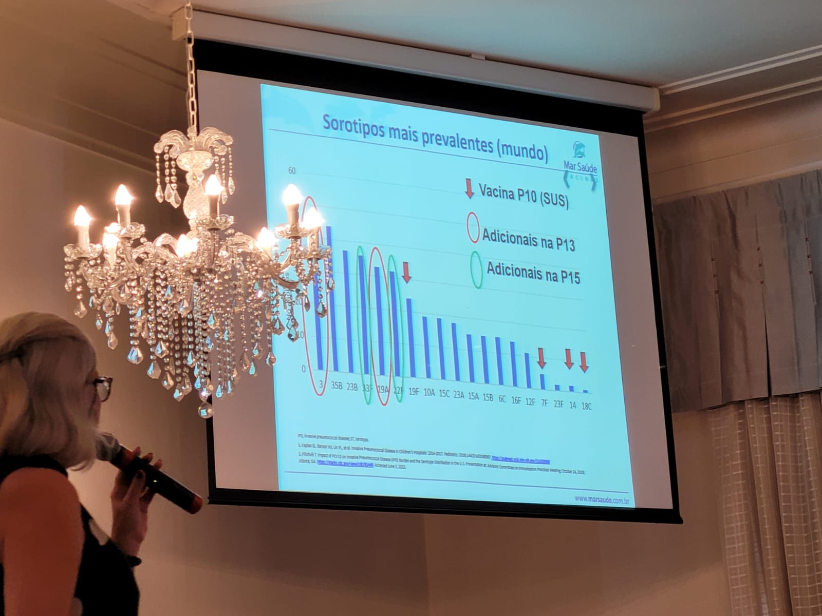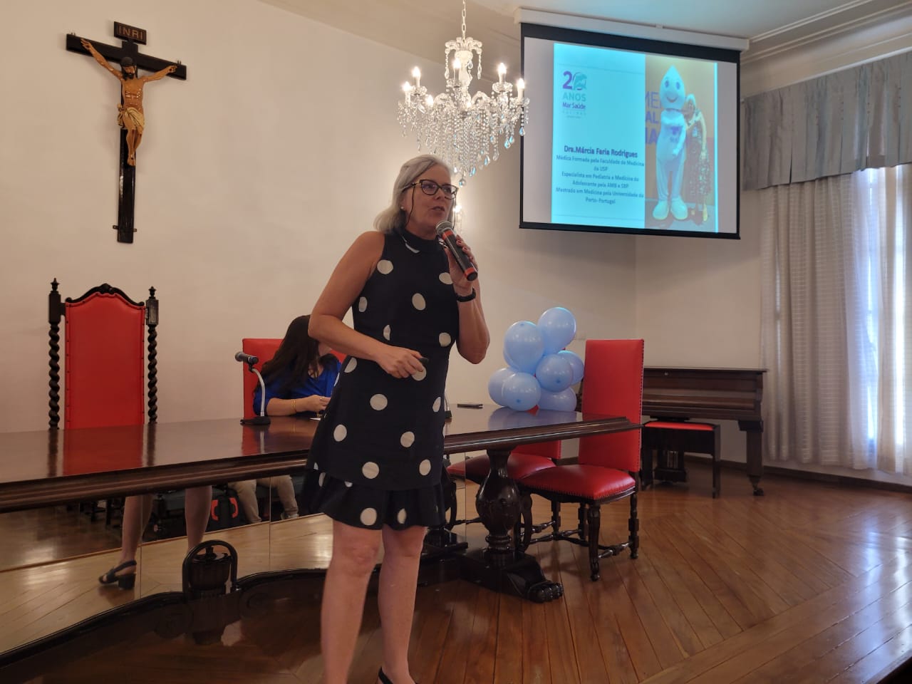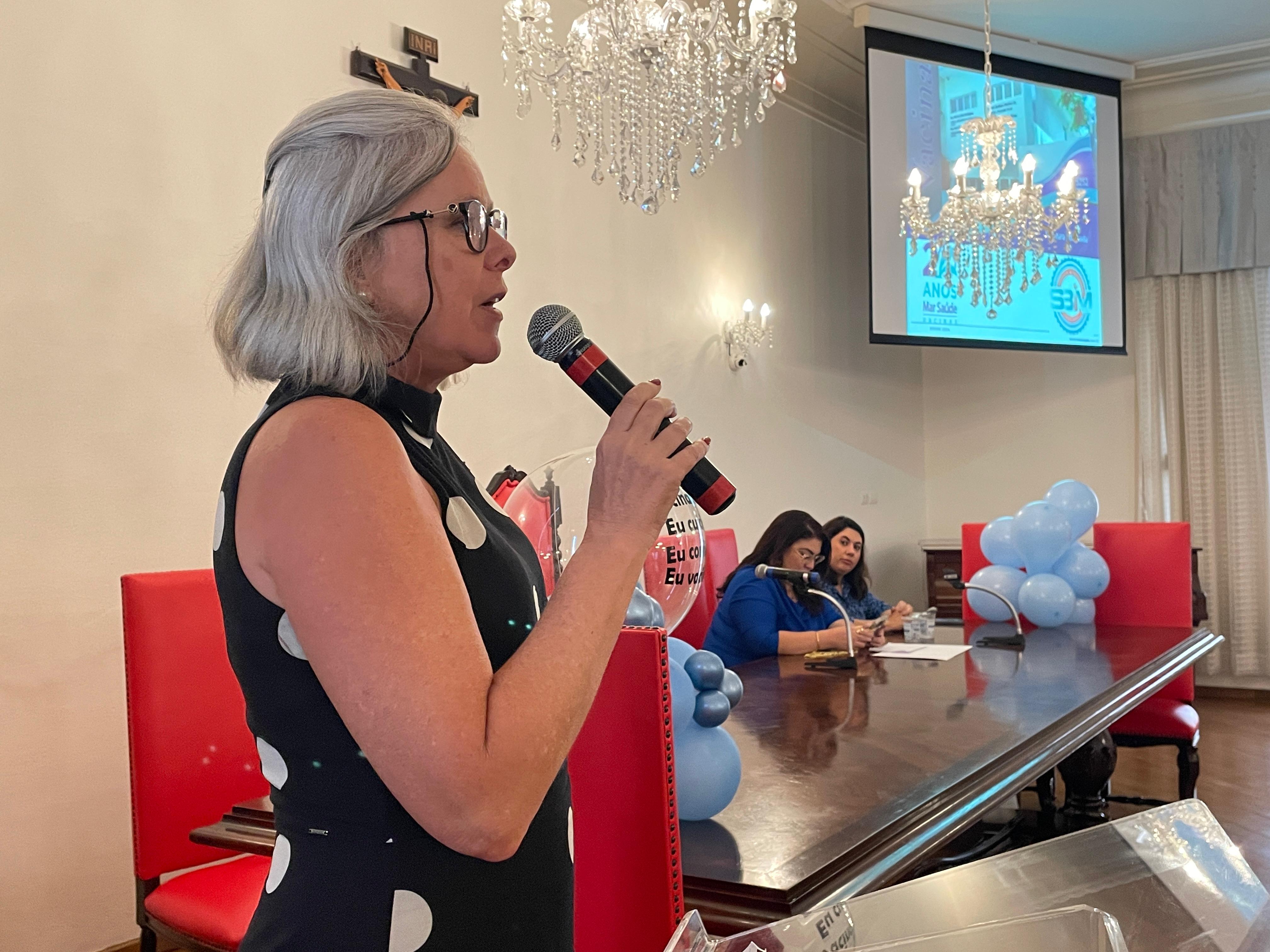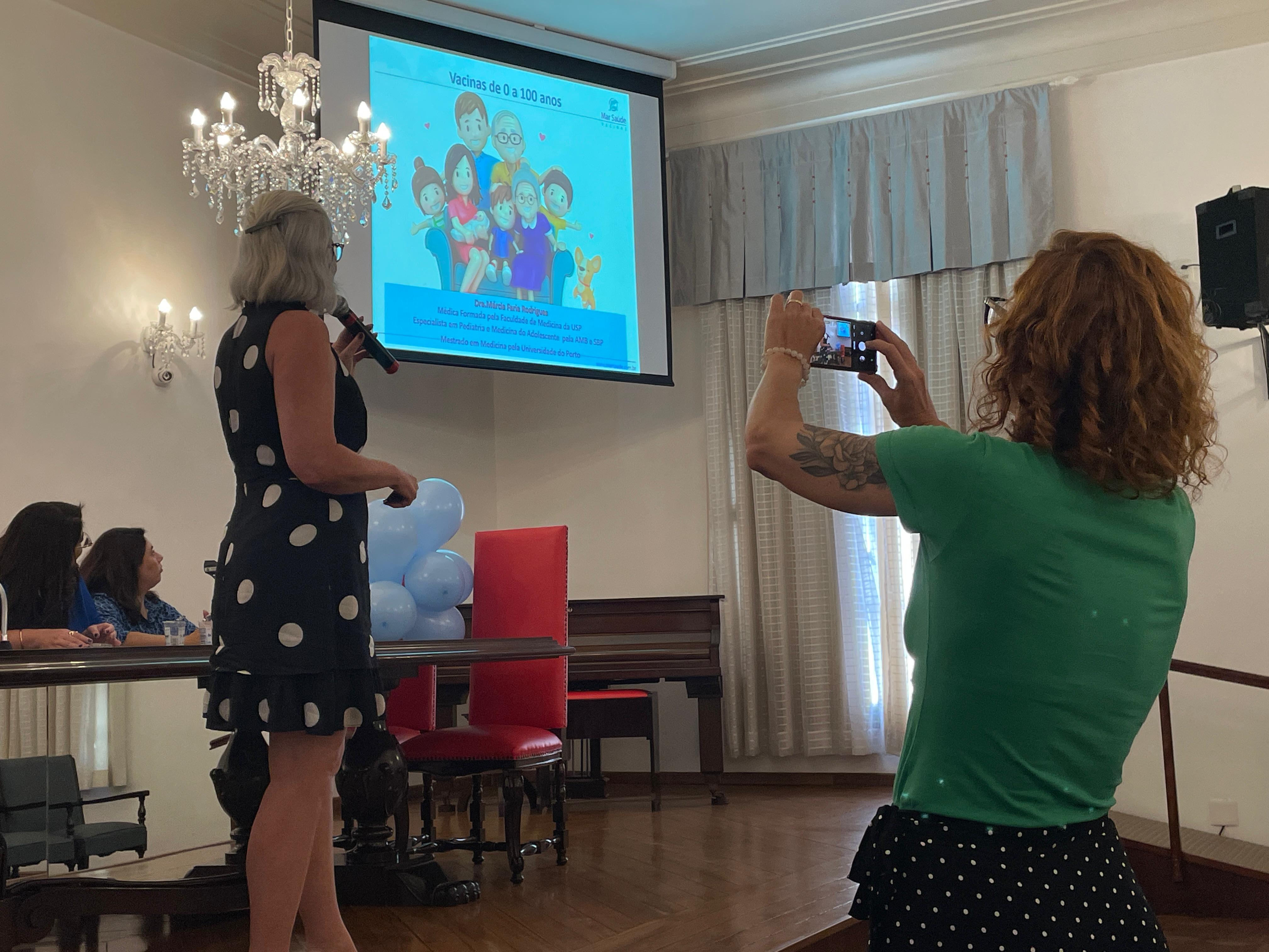 Dando continuidade ao simpósio, a terceira palestra foi com a pediatra da Clínica Mar Saúde Vacinas, Drª. Márcia Faria Rodrigues, que falou sobre diversos tipos de vacinas, formas de ação, efeitos colaterais, consequências de não vacinar e as principais diferenças das vacinas oferecidas pelo SUS e as particulares.