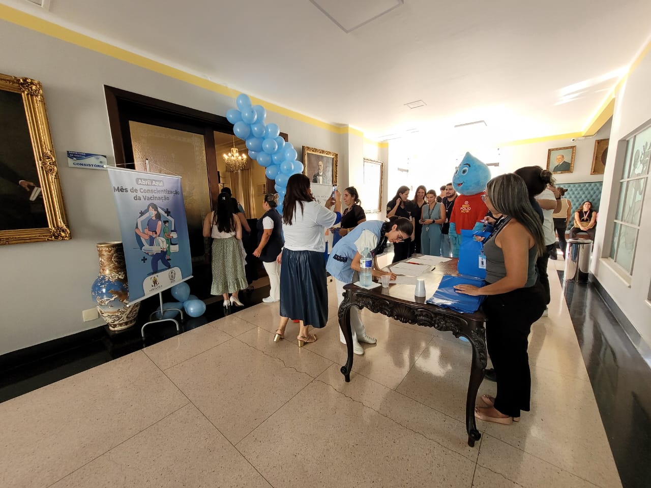 Ação é uma referência ao “Abril Azul – confiança nas vacinas: eu cuido, eu confio, eu vacino”, campanha da Sociedade de Pediatria de São Paulo (SPSP).