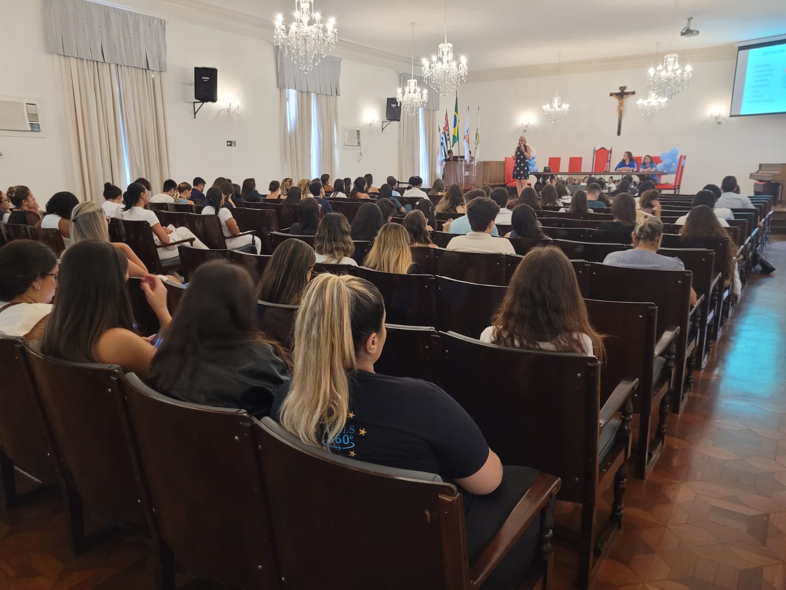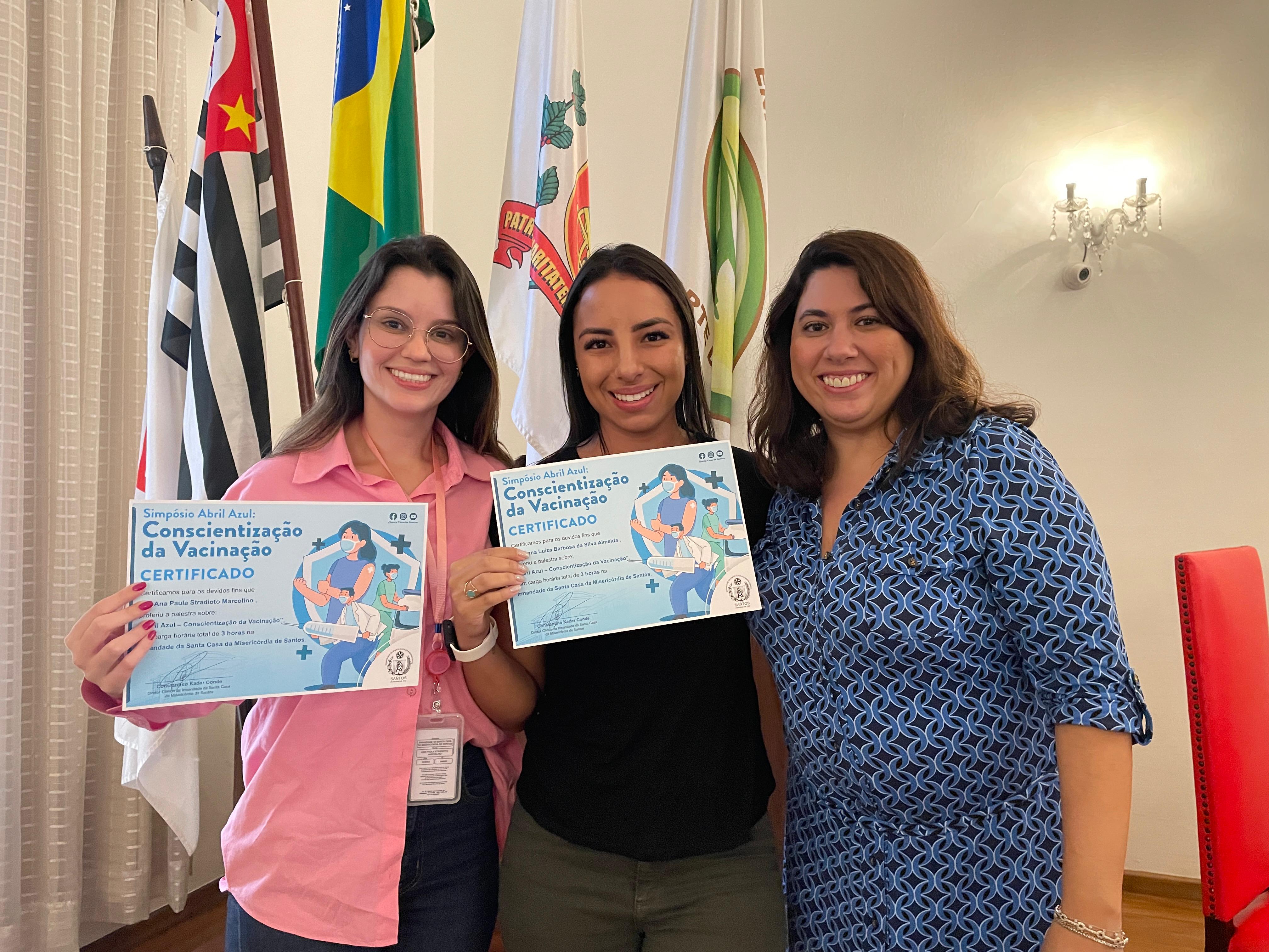 O Serviço de Pediatria da Santa Casa de Santos promoveu no dia 24/4 o 1º Simpósio de Conscientização da Vacinação do hospital, com os apoios da Clínica Mar Saúde Vacinas e laboratório EMS. O evento foi organizado pelas pediatras Drª. Bruna Giacomelli (coordenadora do serviço), e Drª. Ana Luiza Passos Dib, e contou com a participação dos médicos residentes da Pediatria e outras especialidades, como também profissionais de saúde da instituição. Cerca de 100 pessoas participaram do simpósio.