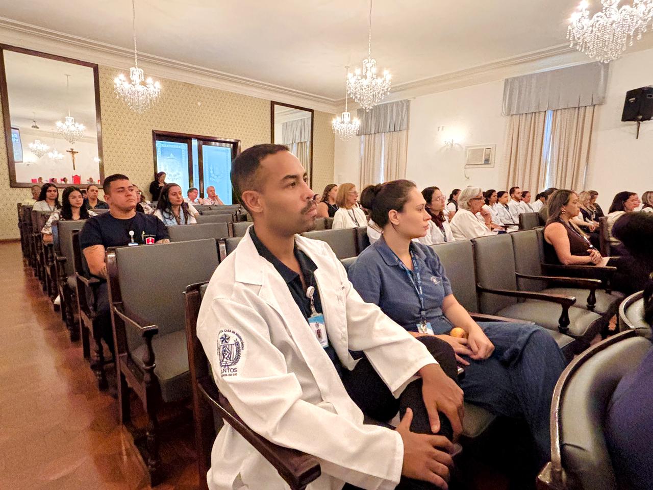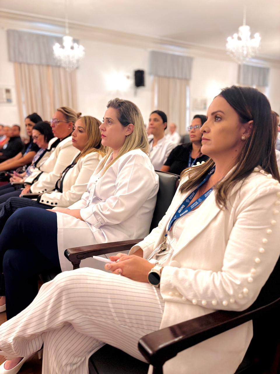 Estavam presentes na cerimônia a Presidente da Comissão de Controle da Qualidade (CCQ) Eliana Lopes Feliciano, Diretores, Gestores e colaboradores da Santa Casa de Santos.