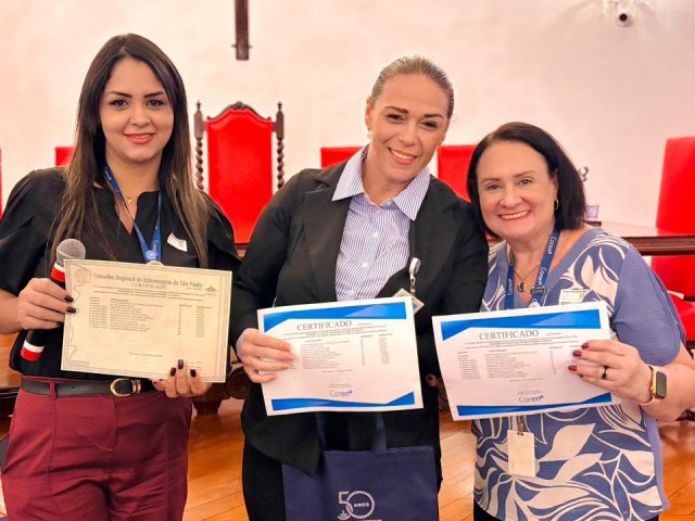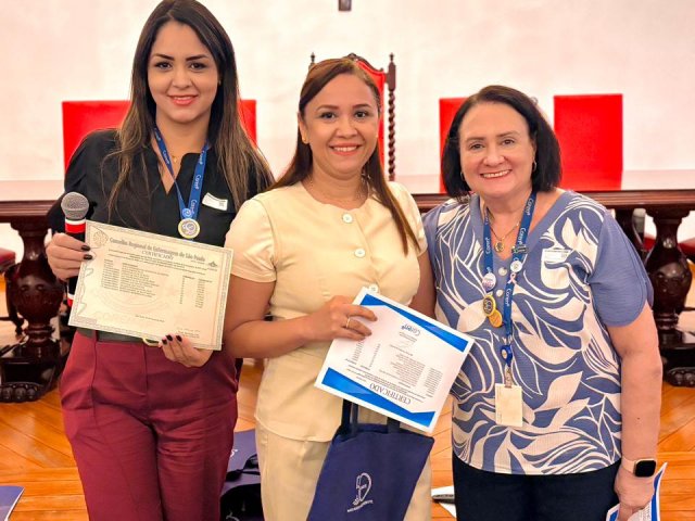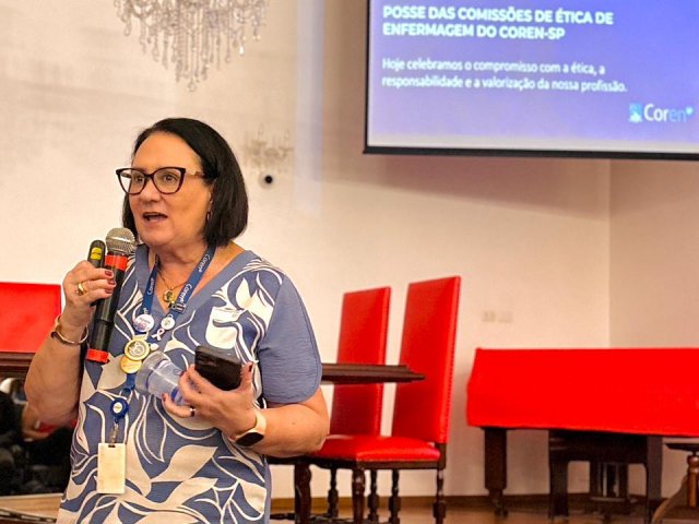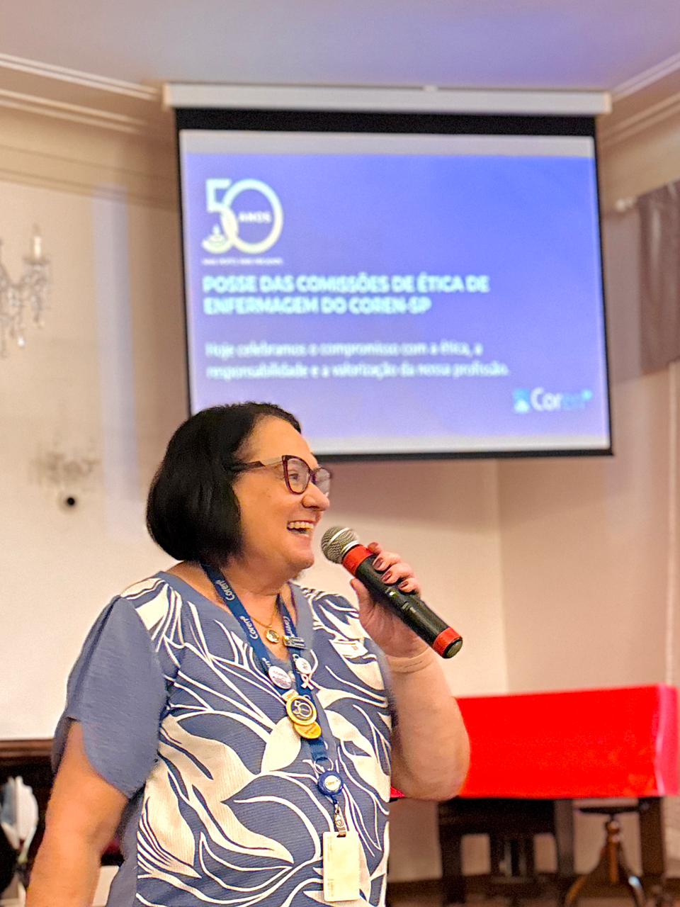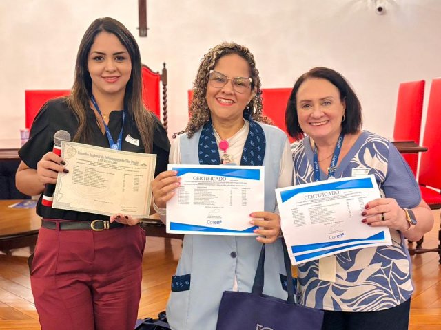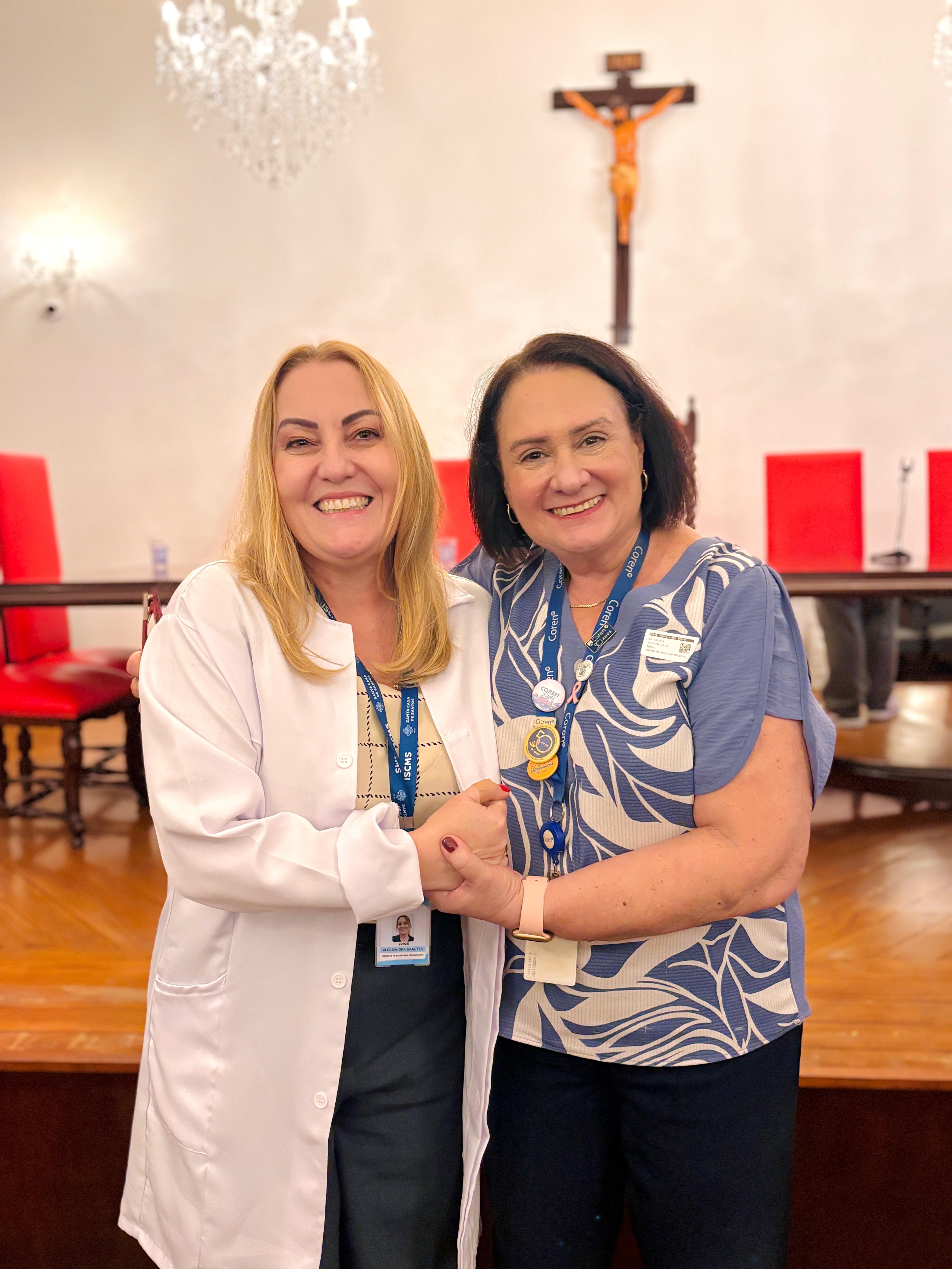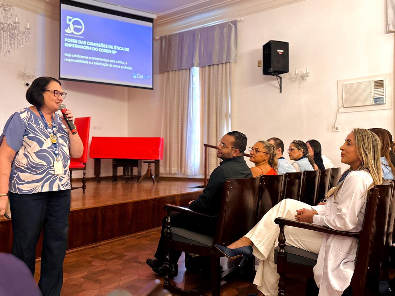 Após a cerimônia de posse, as representantes do Coren São Paulo, Ivete Louzada Trotti e Yara Teixeira dos Santos ministraram uma palestra com o tema: “Posse das Comissões de Ética de Enfermagem”.