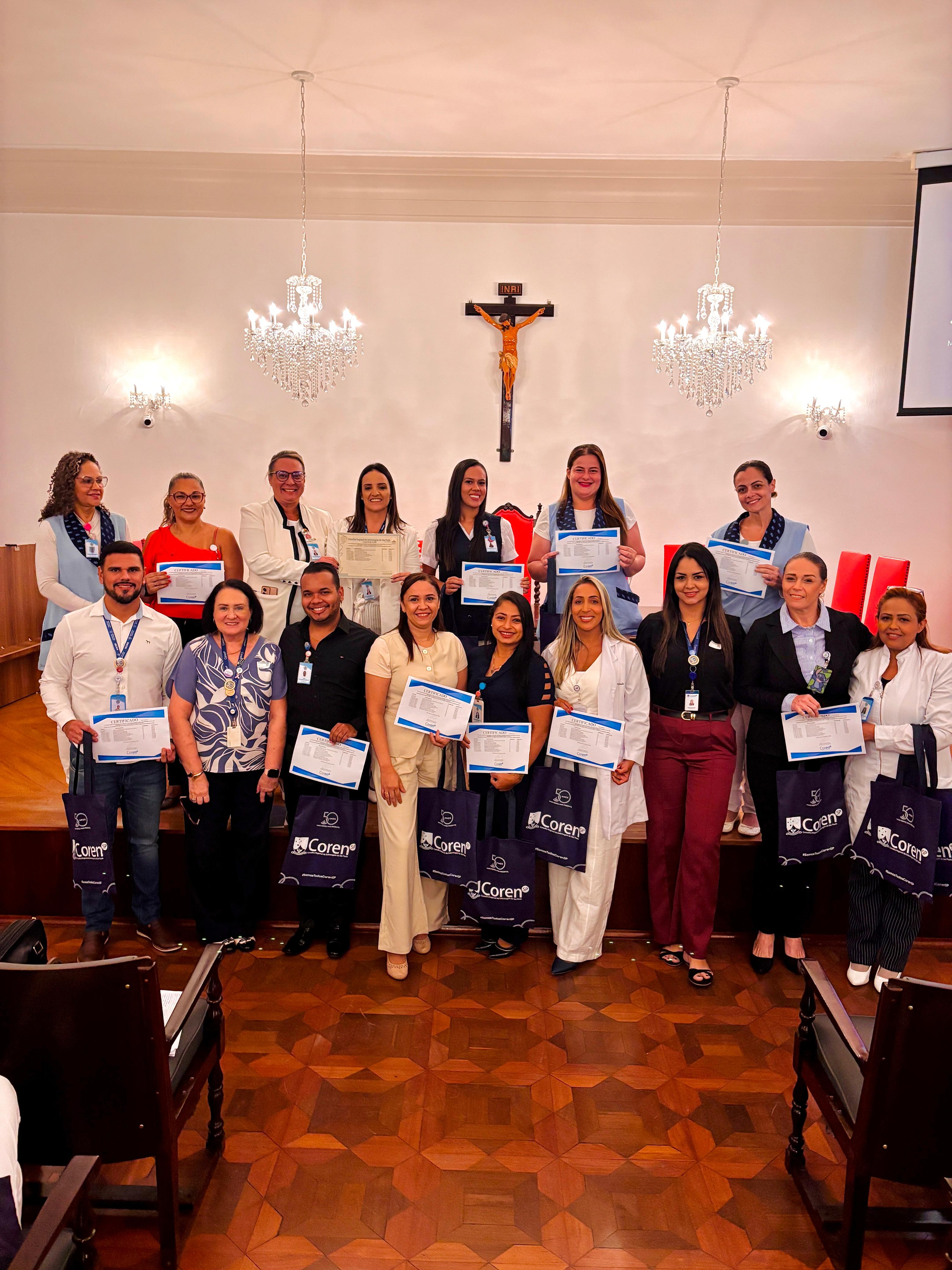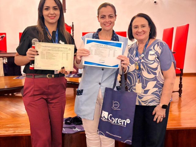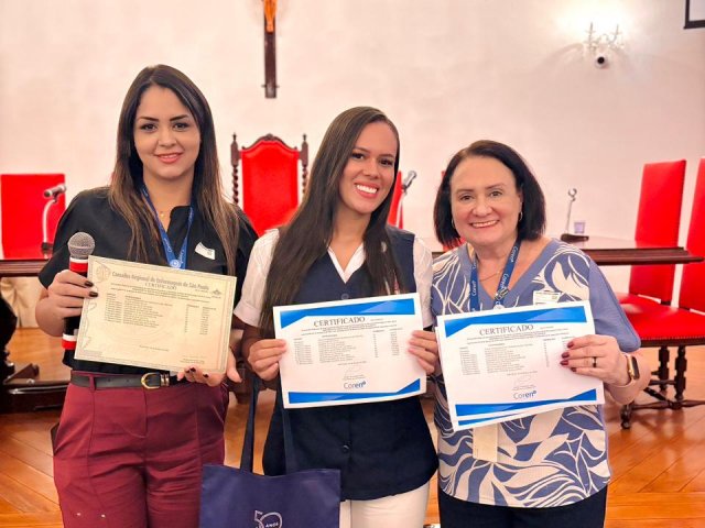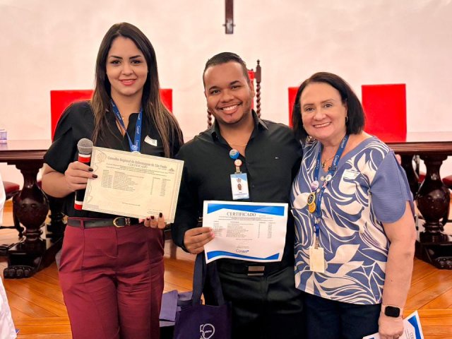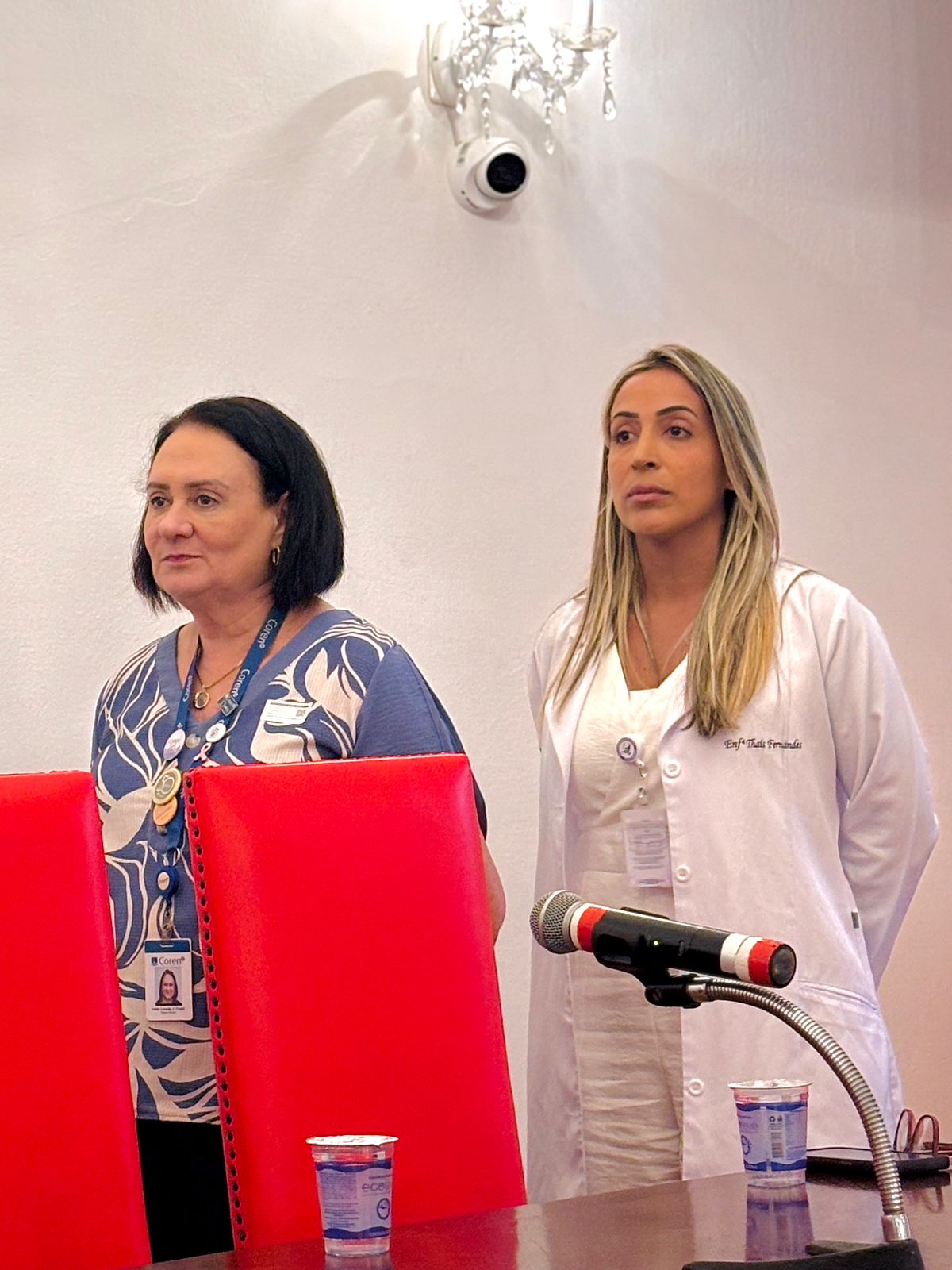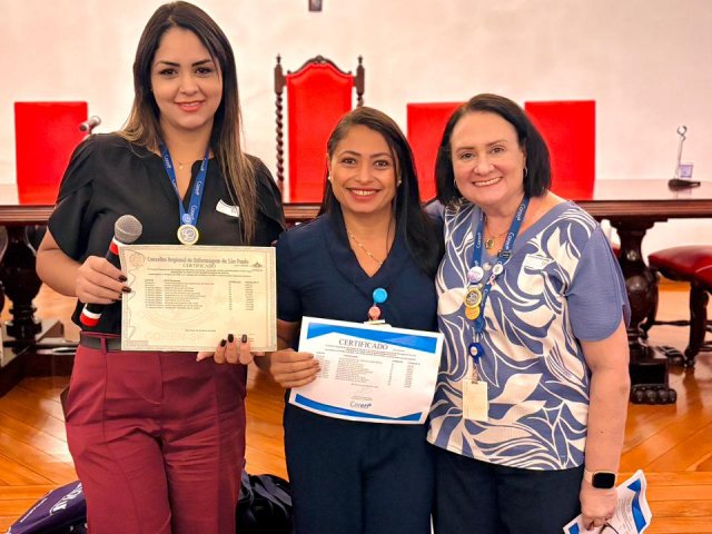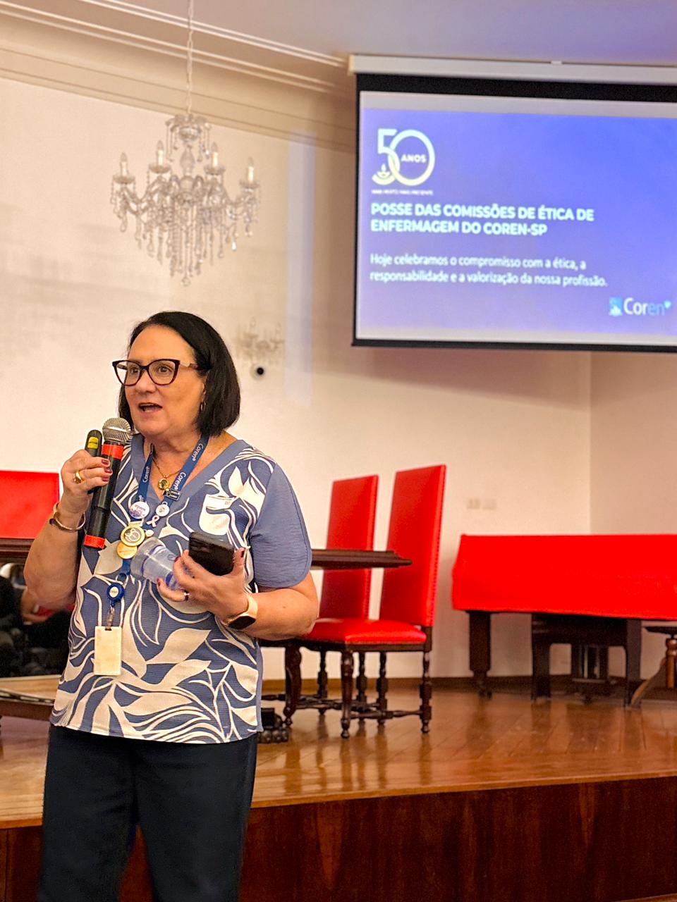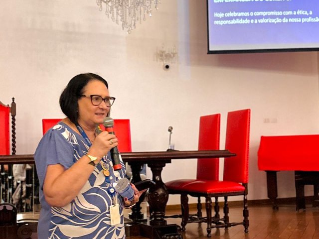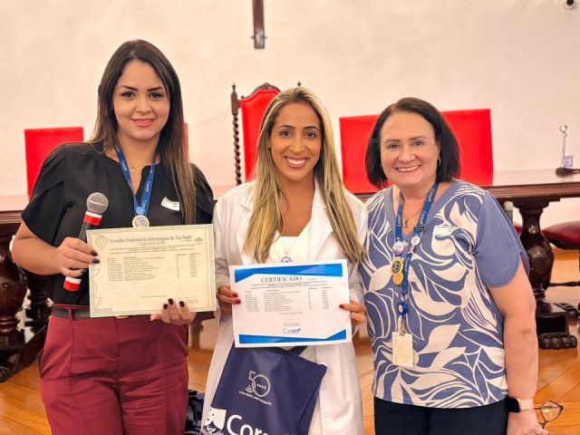 Após a cerimônia de posse, as representantes do Coren São Paulo, Ivete Louzada Trotti e Yara Teixeira dos Santos ministraram uma palestra com o tema: “Posse das Comissões de Ética de Enfermagem”.