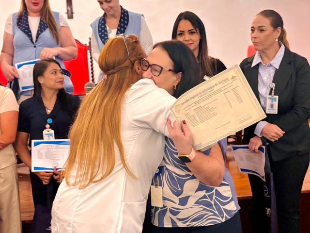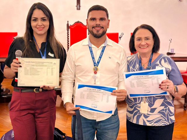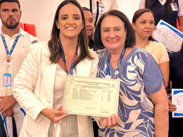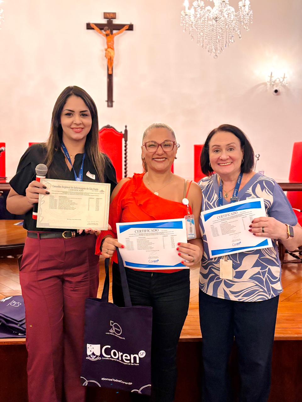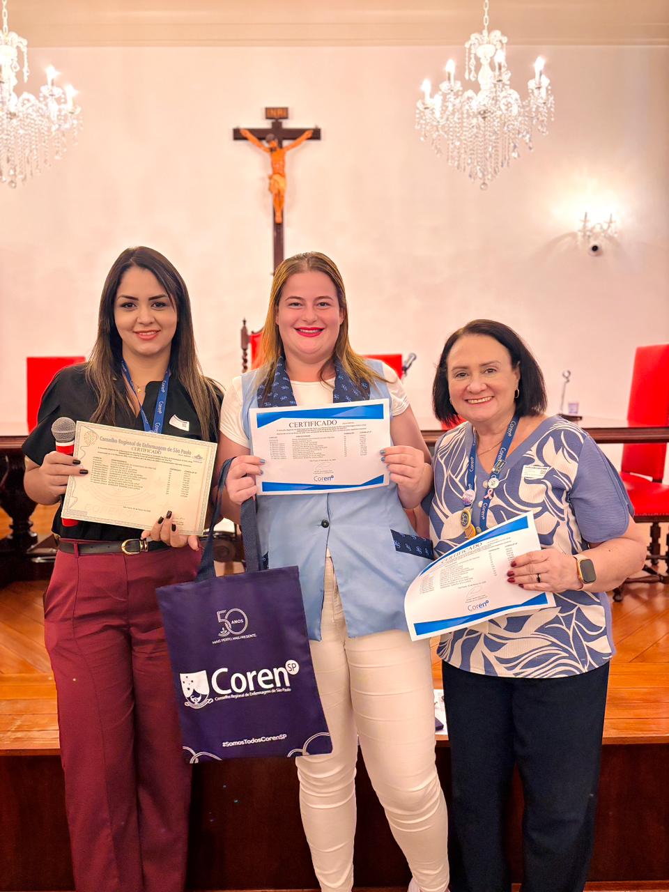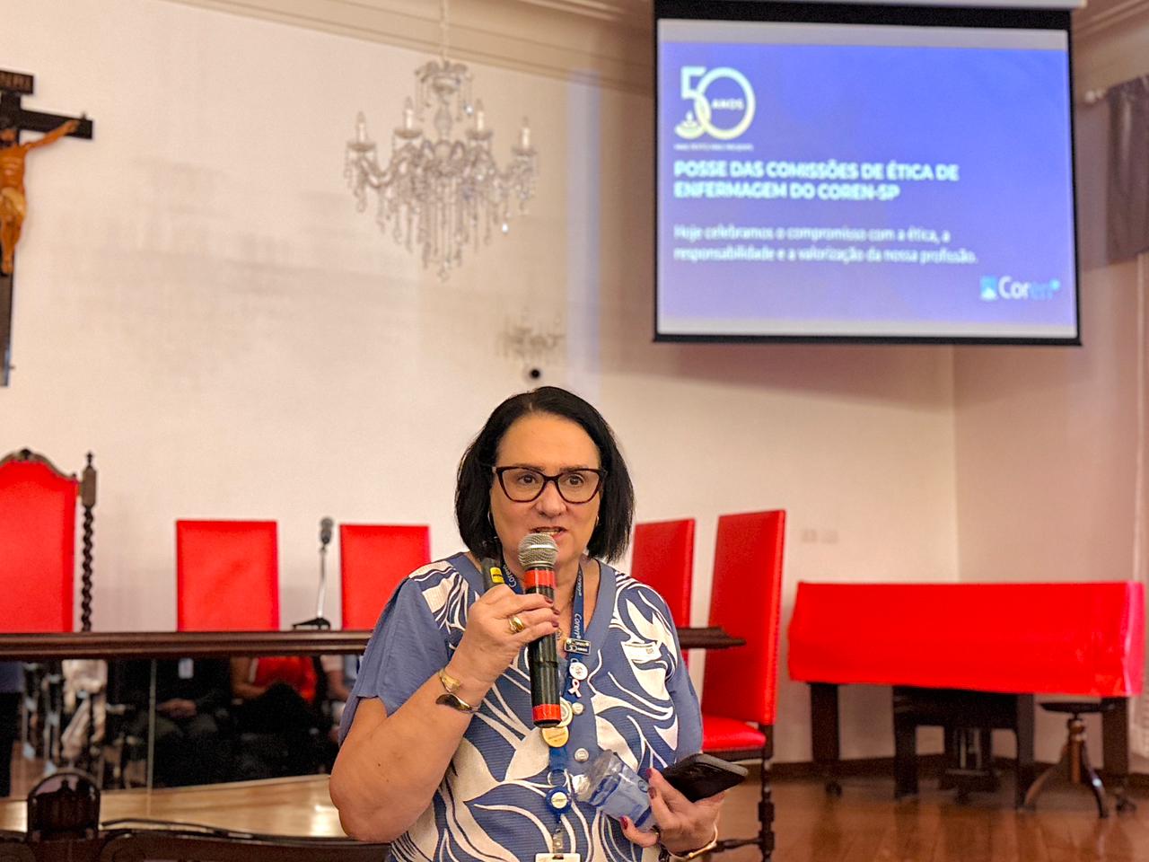 Após a cerimônia de posse, as representantes do Coren São Paulo, Ivete Louzada Trotti e Yara Teixeira dos Santos ministraram uma palestra com o tema: “Posse das Comissões de Ética de Enfermagem”.