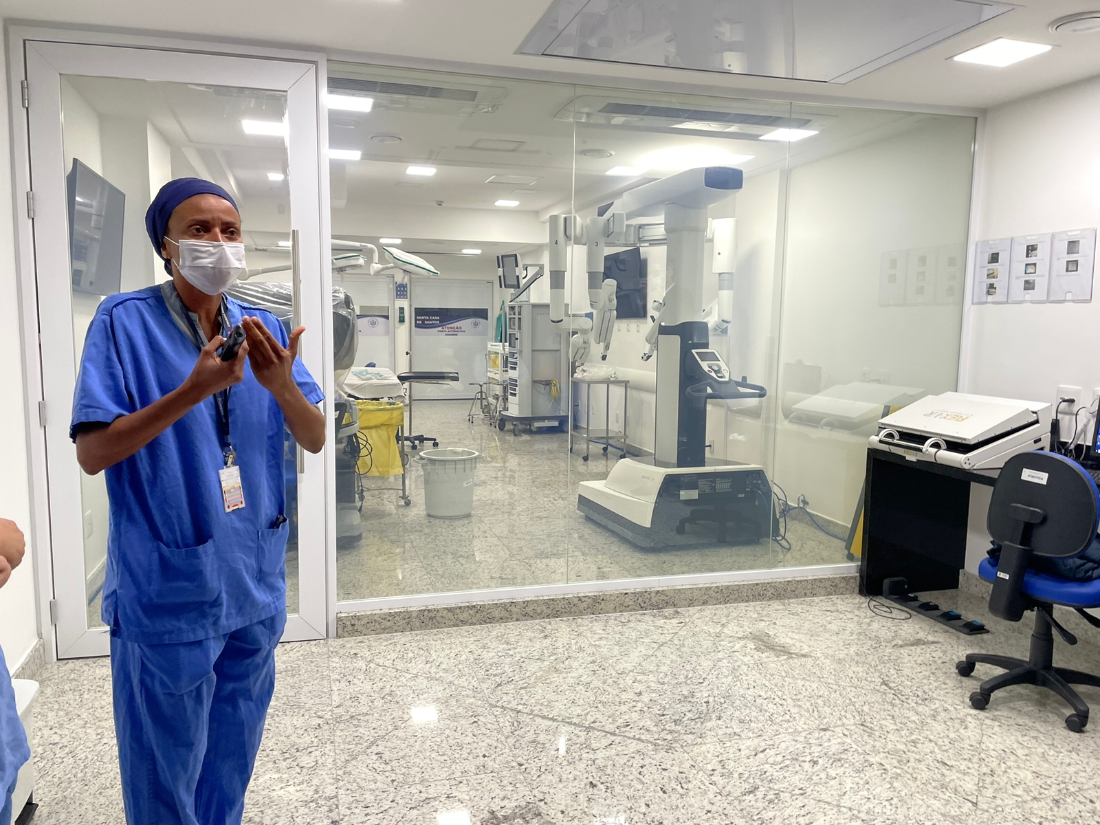 A visita começou pelo corredor principal do 1ºA para ver o resultado da reforma que foi concluída esta semana, e na sequência o provedor aproveitou para mostrar as instalações da unidade de internação do 1ºG. O grupo também visitou a nova ala infantil do SUS 3ºD, Centro Cirúrgico e Centro Robótico.