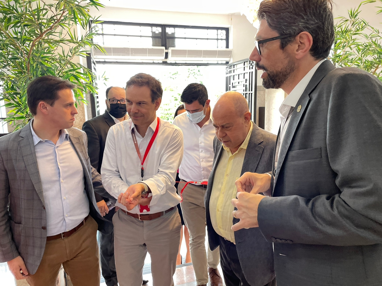 O presidente do Banco Santander, Mário Leão, esteve na Santa Casa de Santos no dia 24/1 para conhecer as novas instalações de diversas áreas da instituição. Ele veio acompanhado da vice-presidente do Banco, Vanessa Lobato, do diretor de Rede Comercial, Robson Rezende, do Superintendente Executivo, Javier Garcia, e do Superintendente de Governo e Instituições, Márcio Gianicco.