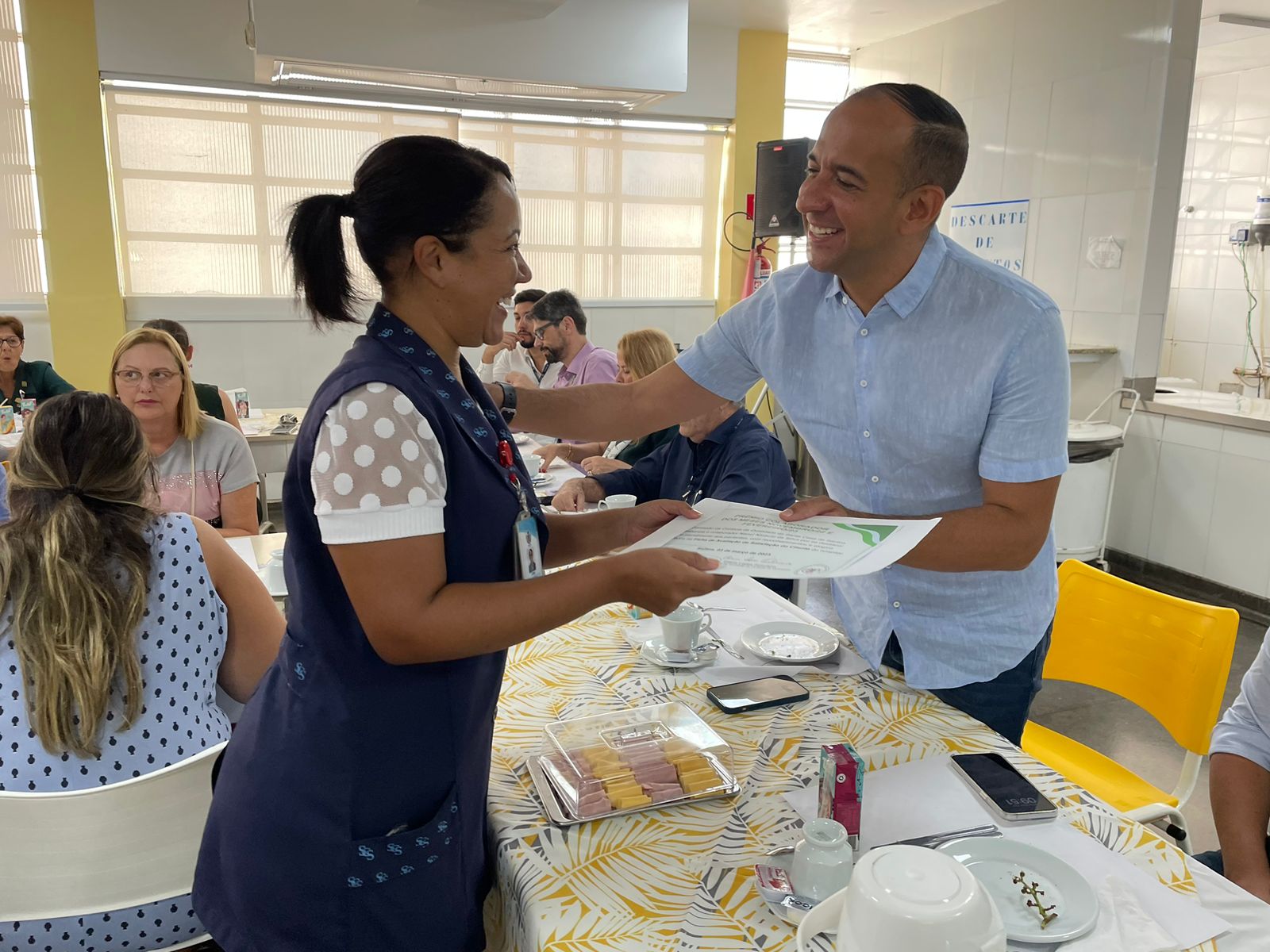 Após todos se servirem do café da manhã, dando continuidade ao evento, o provedor Ariovaldo Feliciano fez a entrega dos certificados de congratulação aos profissionais que se destacaram no atendimento aos pacientes, que foram: