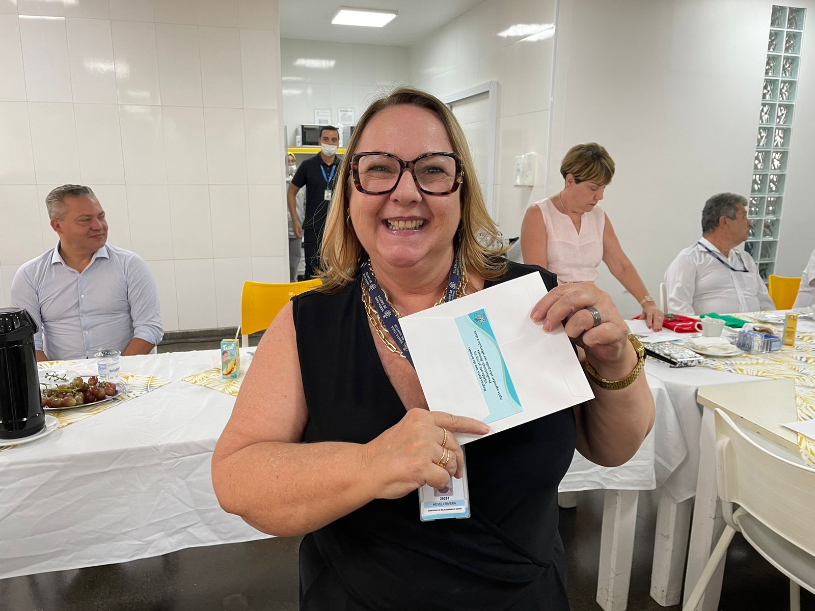 Esta é a quarta vez consecutiva que a Enfª Nanci Nicácio ganha o certificado de colaboradora destaque, e cumprindo o regulamento da CCQ para premiação, ela ganhou um pingente de ouro com o símbolo da enfermagem, entregue pelas mãos da presidente da CCQ, Eliana Lopes Feliciano.