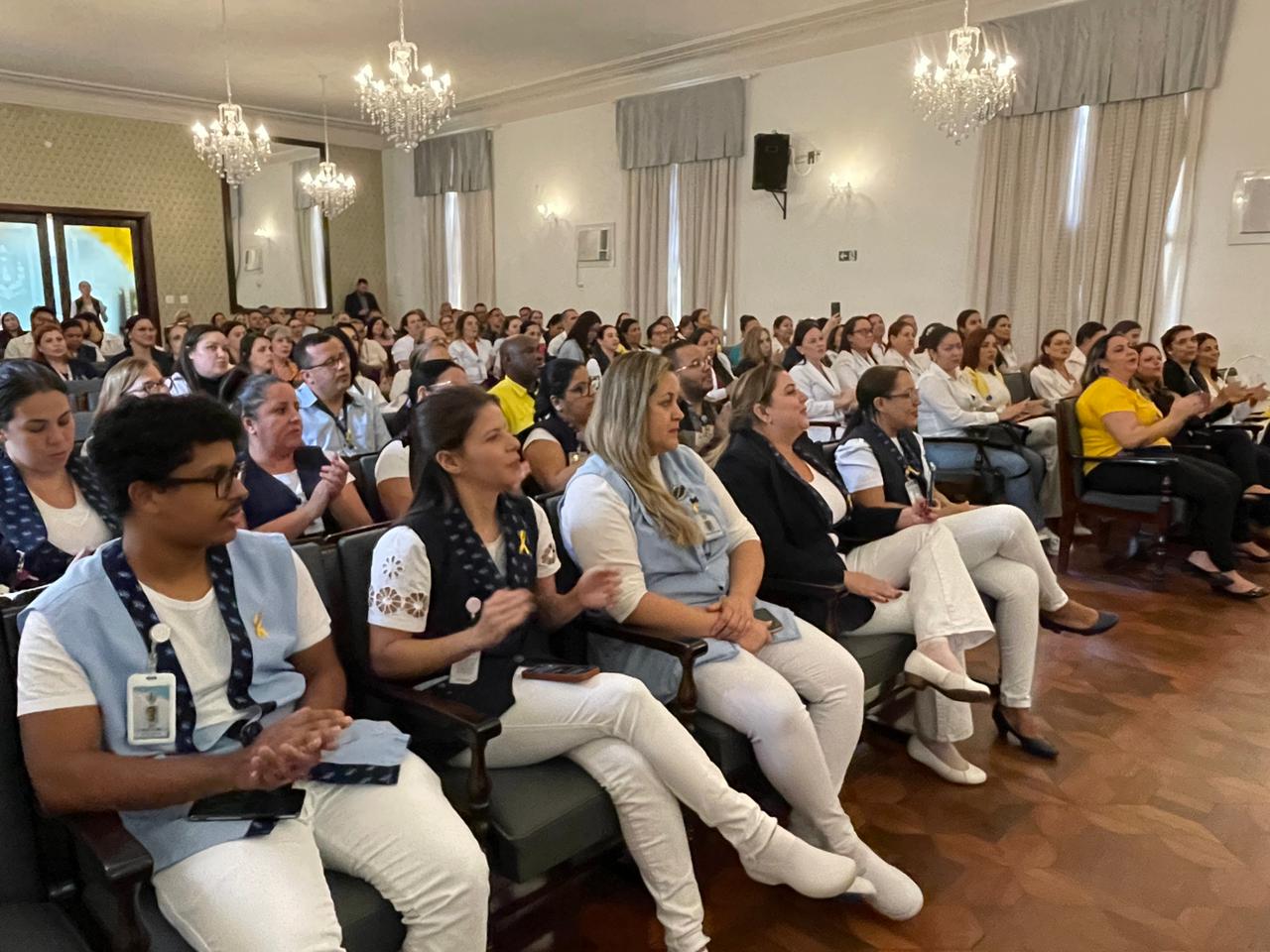 Em seguida, a enfermeira Gislane Lacerda Aleixo Soares, que atua na ala de psiquiatria, fez uma palestra para alertar sobre os sinais que as pessoas podem apresentar quando estão precisando de cuidados relacionados com a saúde mental.