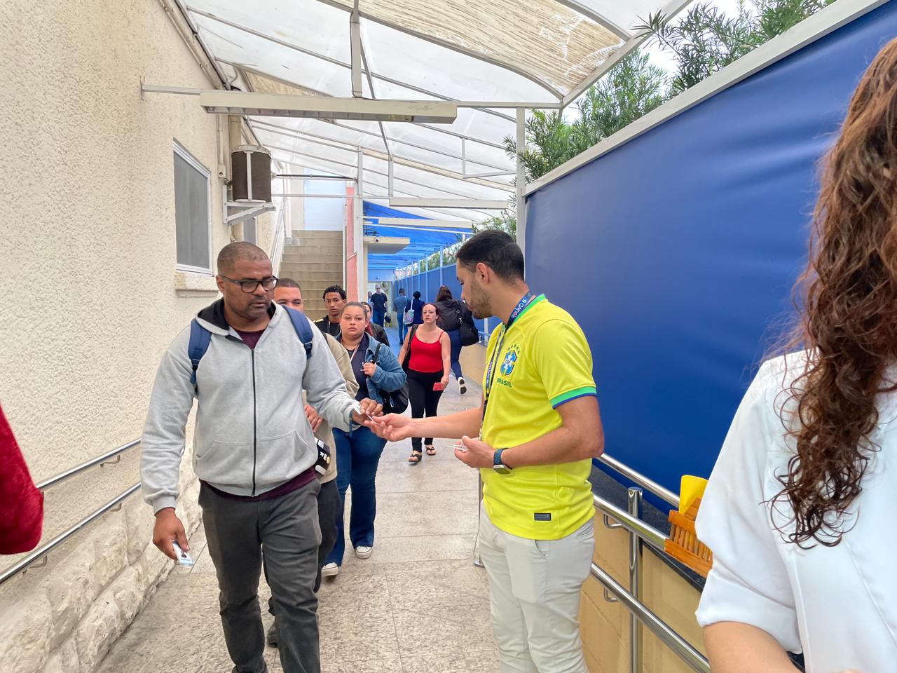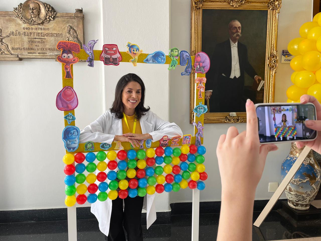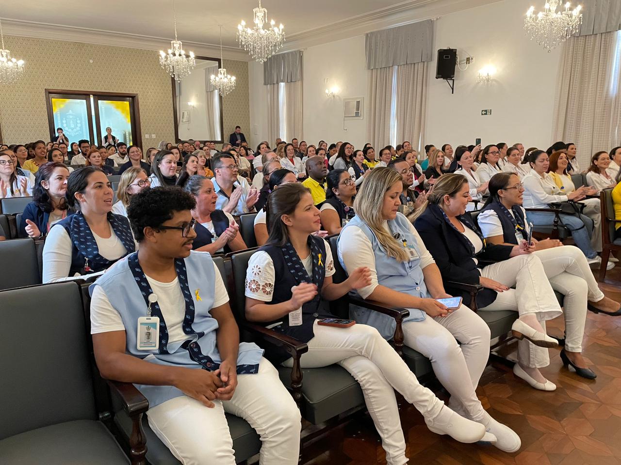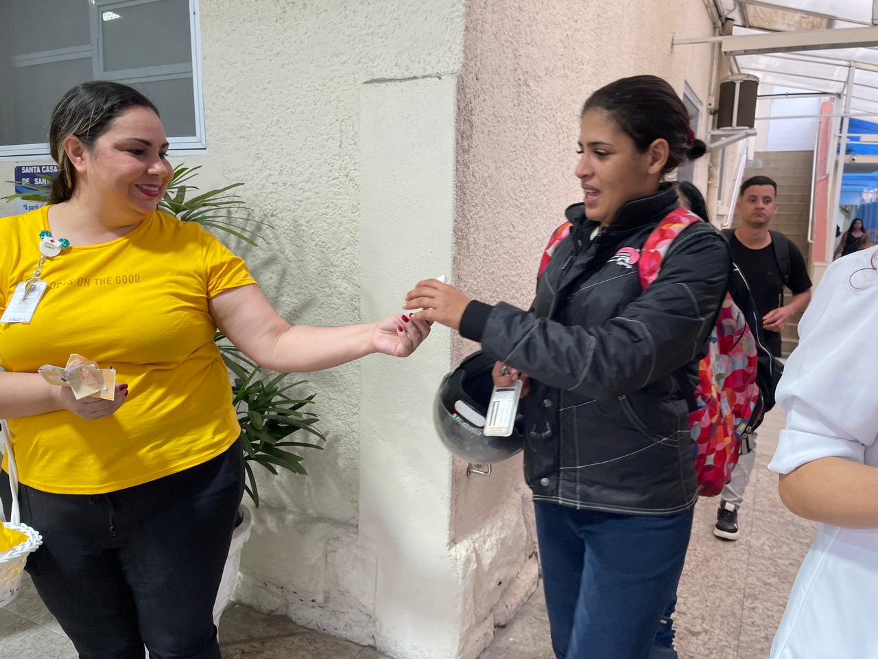 O início da semana na Santa Casa de Santos começou diferente para os funcionários da instituição, que foram recepcionados logo no primeiro horário da manhã com música e um grupo da comissão organizadora da campanha Setembro Amarelo entregando pirulitos com frases motivacionais.