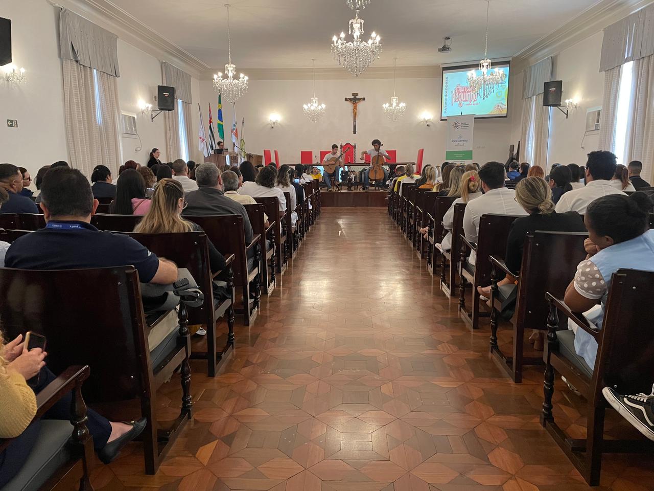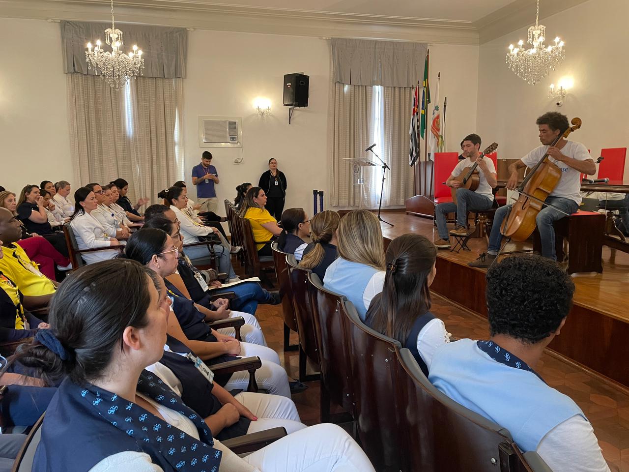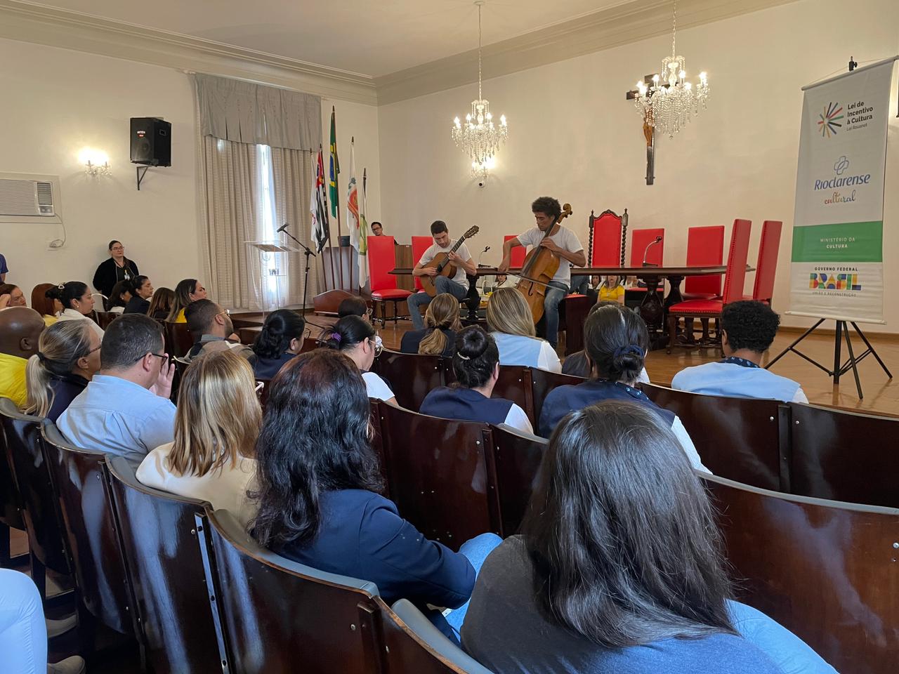 No período da tarde, às 14h, no consistório, teve apresentação da Orquestra de Cordas Rioclarense Cultural que emocionou o público, que lotou o espaço e cantou junto o repertório apresentado.