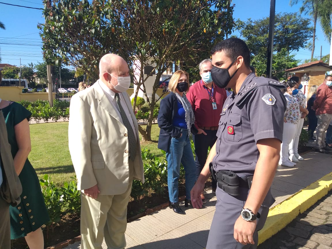 Prefeito de Santos, Rogério Santos, marcou presença para o hasteamento da bandeira, e Banda da Polícia Militar animou a programação aberta ao público.