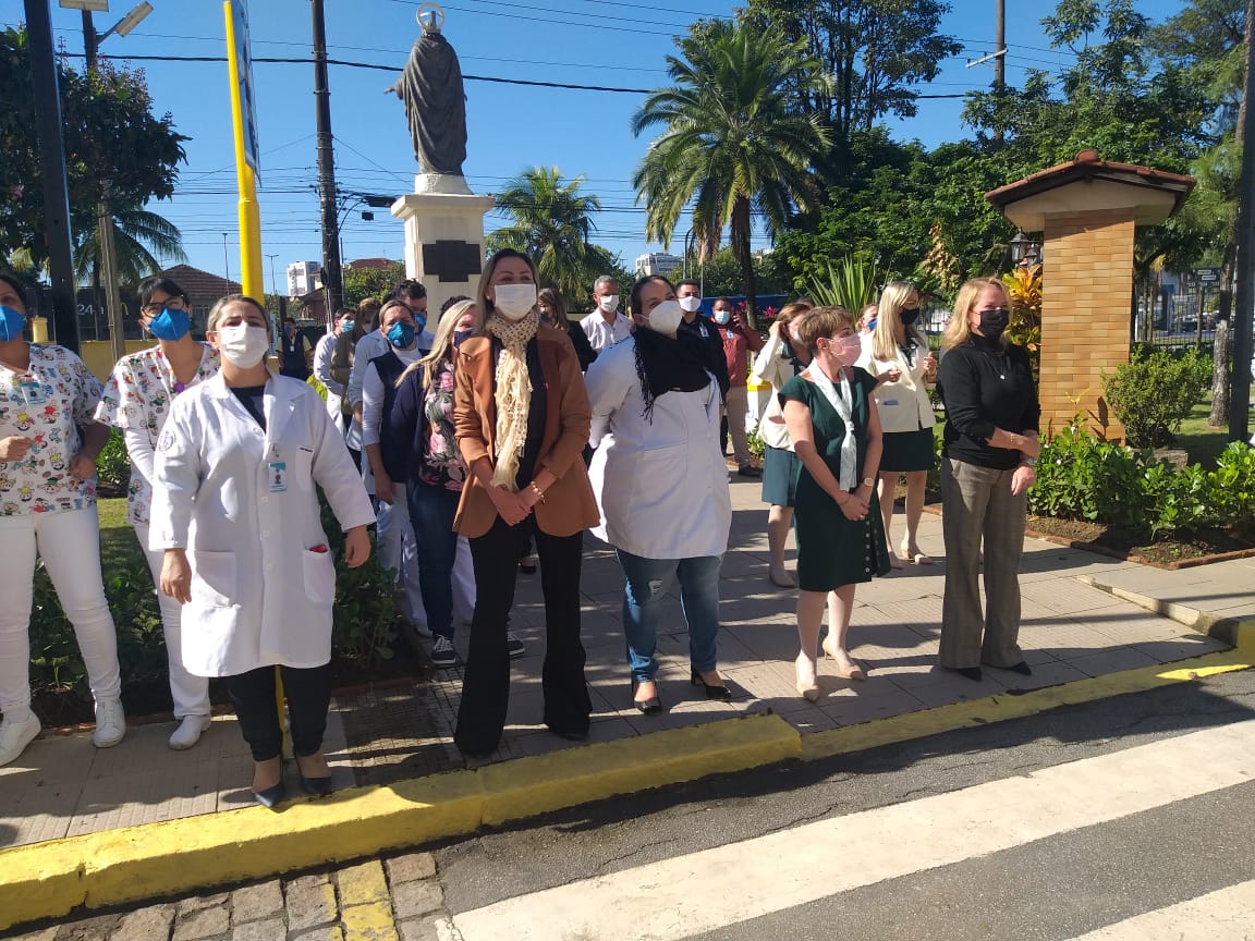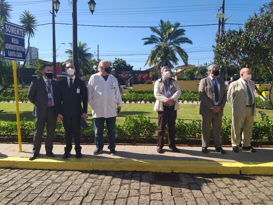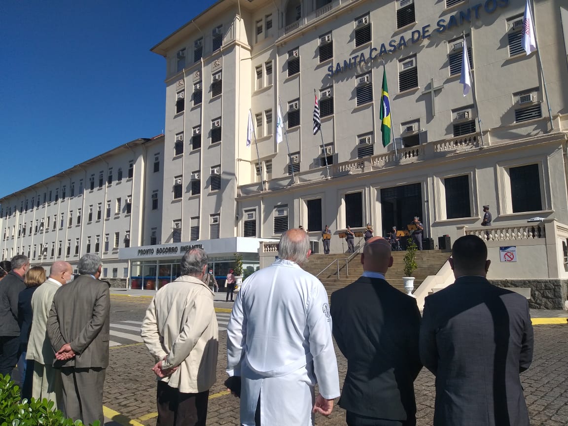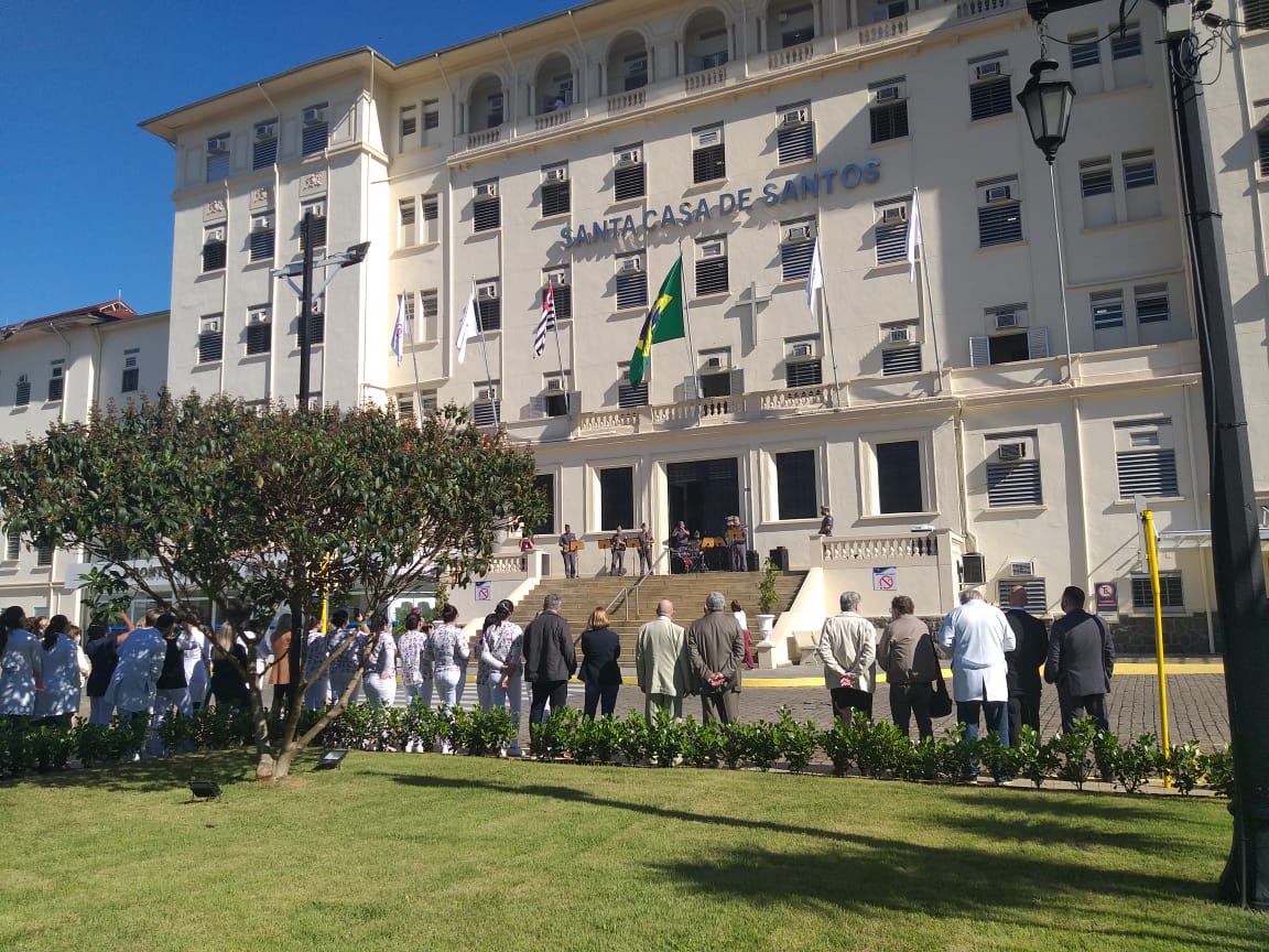 Para marcar a data, a Santa Casa de Santos convidou autoridades, membros da Mesa Administrativa e gestores, para participarem do hasteamento das bandeiras.