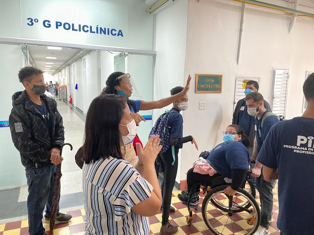 Para implementar as aulas, os participantes também realizaram visita monitorada na Santa Casa de Santos, e puderam ver de perto as rotinas de trabalho de diversos setores, proporcionando aos alunos a experiência da vivência institucional.