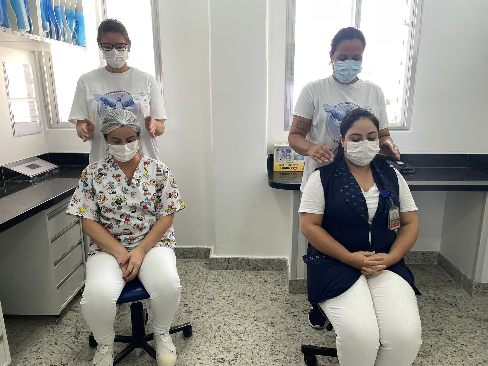Em parceria com voluntários do grupo Vibrando Amor, equipes assistenciais participam do programa terapêutico que visa a saúde do colaborador.