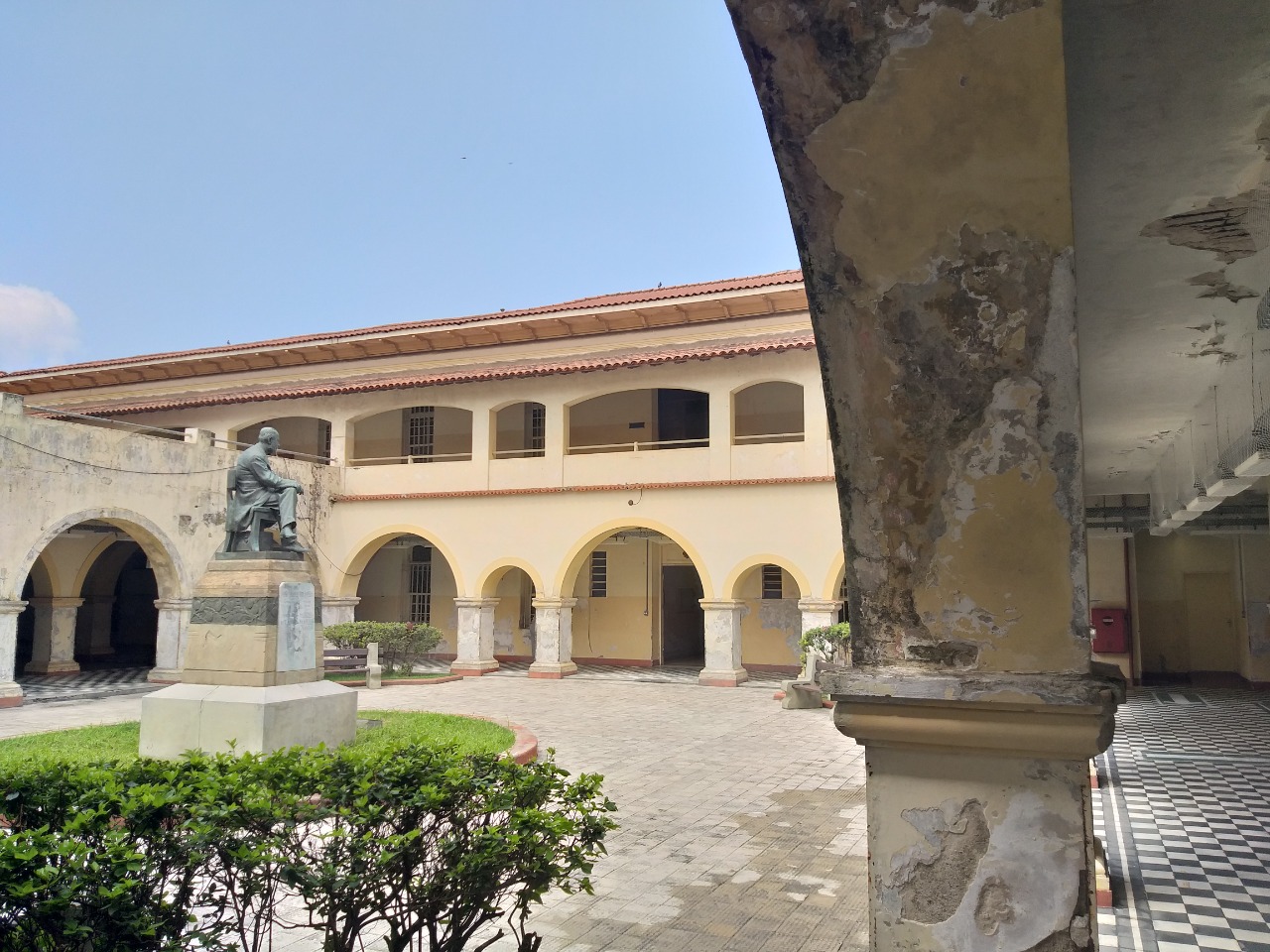 Após a apresentação, foi realizada a visita por todo o imóvel, a começar pela entrada principal, onde pôde ser visto um enorme cupinzeiro que cresceu logo acima da porta. Na chamada “sala do diretor” foi possível mostrar uma parte da pintura artística que foi coberta por diversas camadas de tinta usadas nas paredes, sem nenhum cuidado com o valor histórico. O achado foi feito pelo arqueólogo Manoel Gonzalez, que tem trabalhado no local. Segundo Gonzalez, tratam-se de afrescos, mas ainda não é possível dizer em qual período teriam ocorrido as descaracterizações. Em algumas salas, azulejos brancos, daqueles bem populares, tomaram conta de todas as paredes.