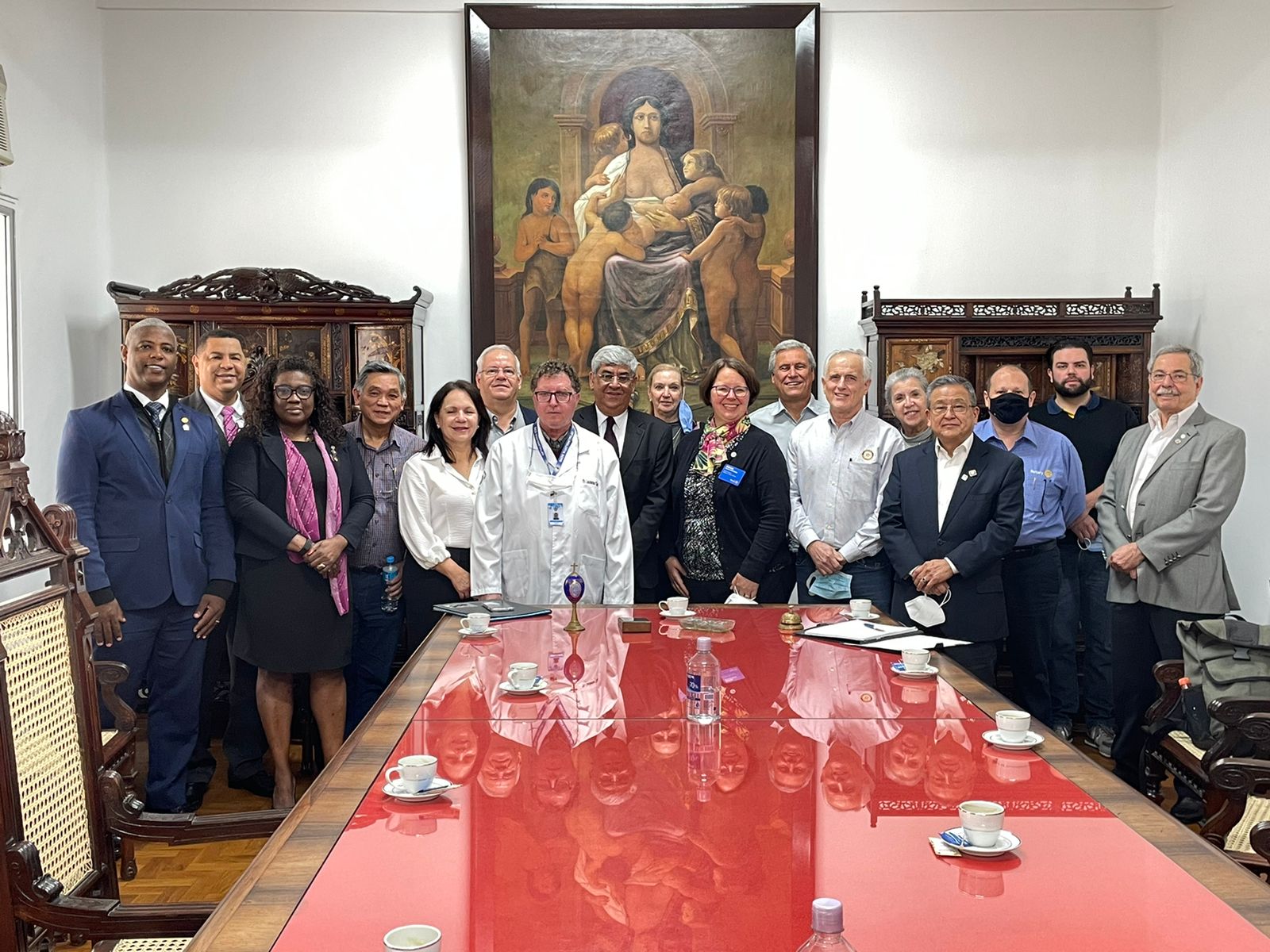 O vice provedor, Carlos Teixeira Filho, e o diretor clínico, Constantino Kader Conde, receberam a comitiva na Sala da Mesa Administrativa. O vice provedor explanou sobre a história da Santa Casa de Santos, como também sobre a representatividade da instituição para o país. O diretor clínico falou sobre os desafios da pandemia, e como foram os atendimentos no serviço de Oftalmologia neste período.