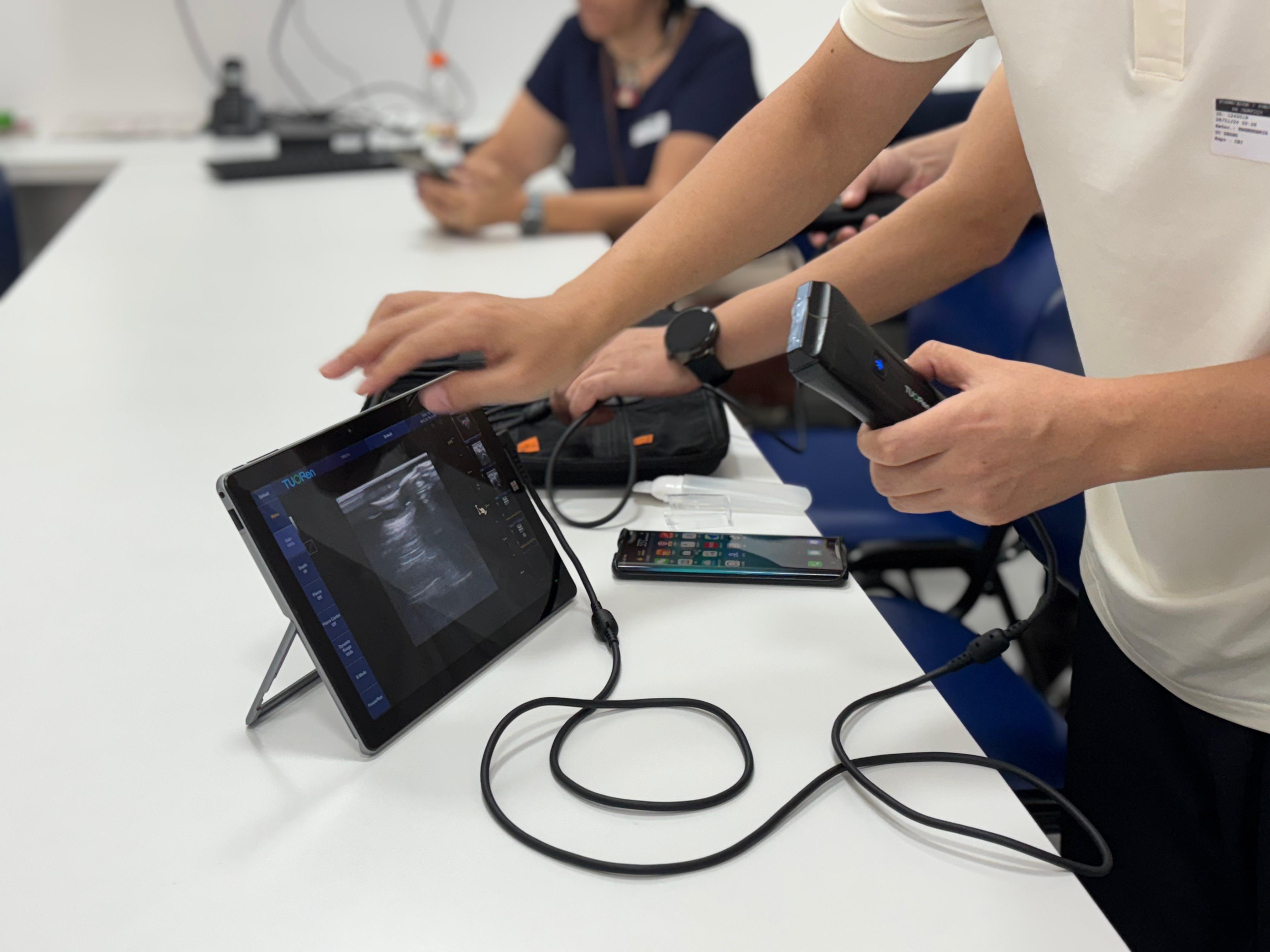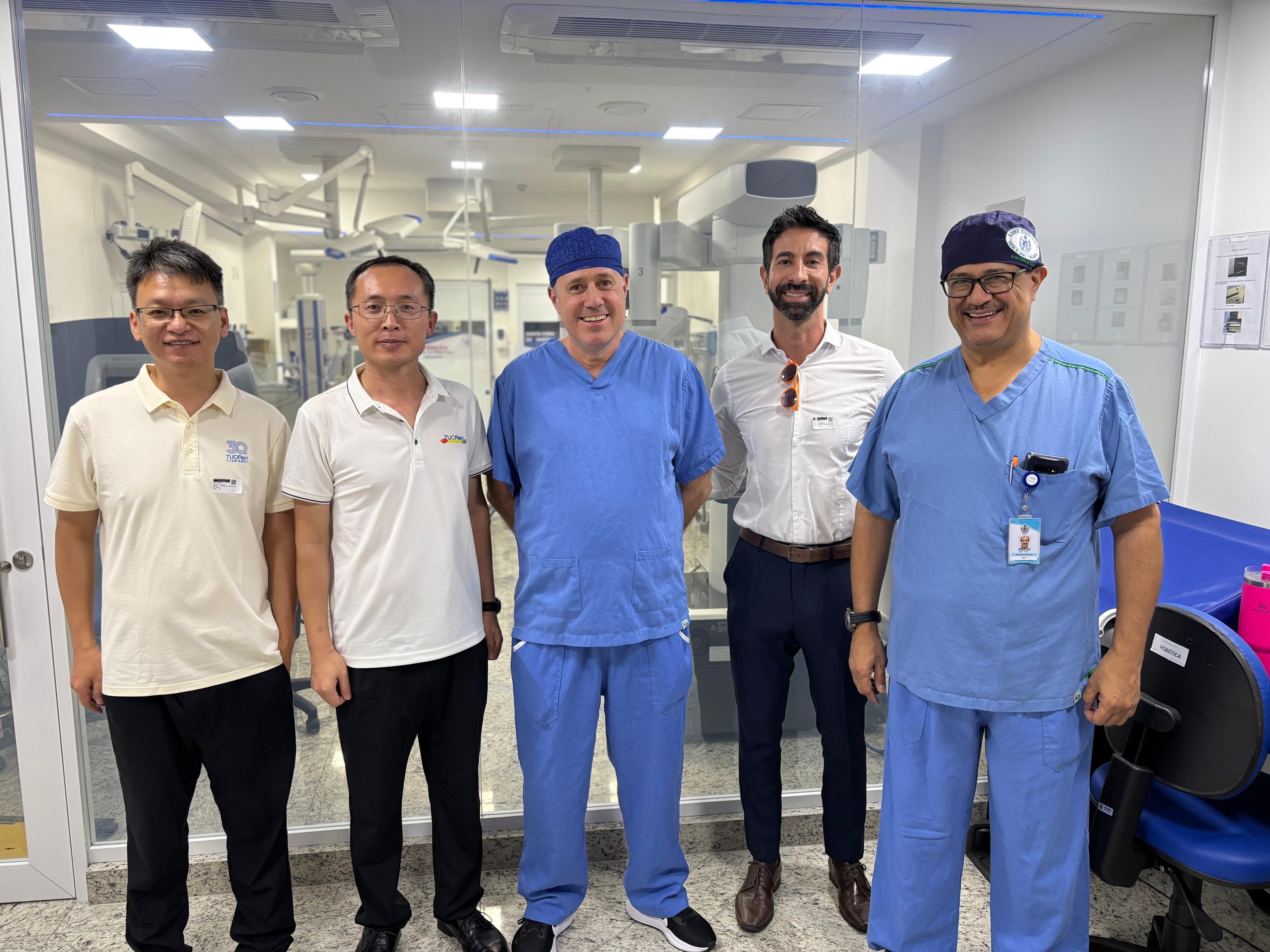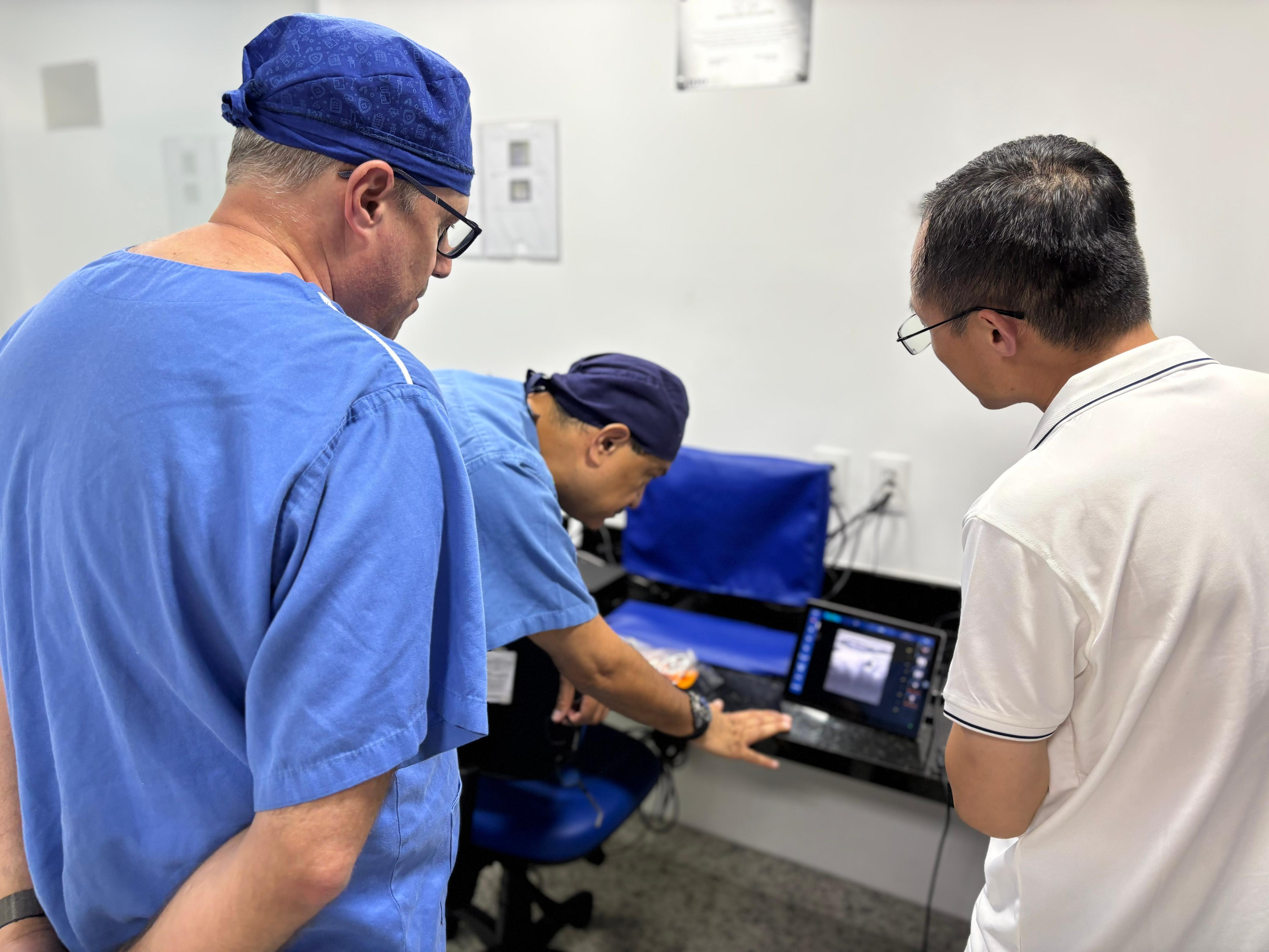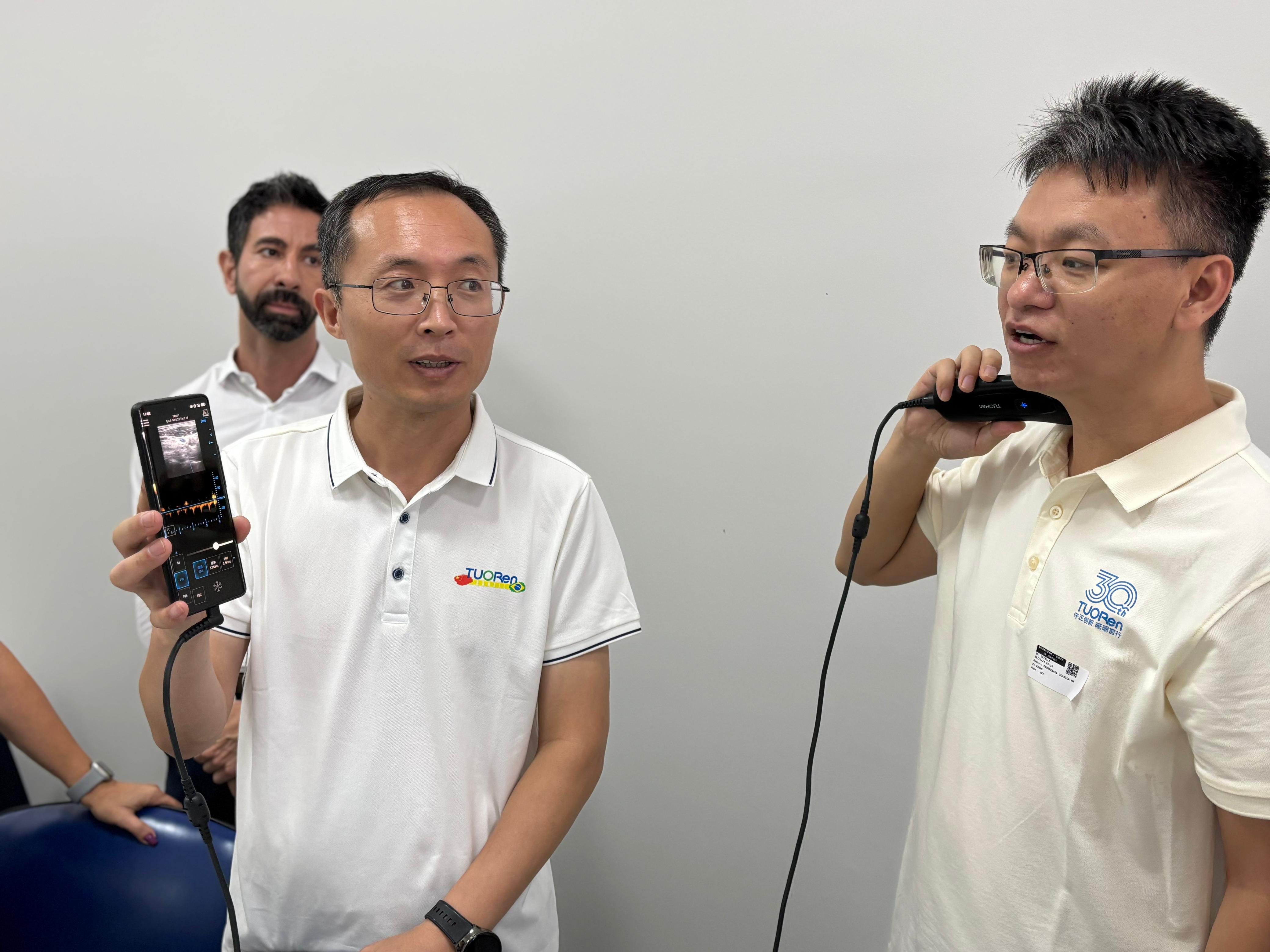 Ainda na visita, Zhang e Yao apresentaram o produto para os anestesistas da instituição, destacando a praticidade, facilidade e agilidade que o aparelho em questão promove para procedimentos cirúrgicos - "Com este aparelho o médico pode rastrear qualquer anormalidade durante o procedimento cirúrgico, além de ter uso também para o dia a dia das enfermarias do hospital", destacou Zhang Yu.