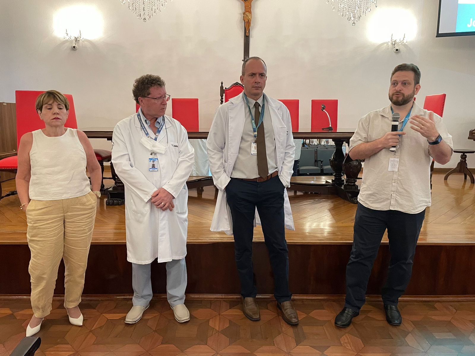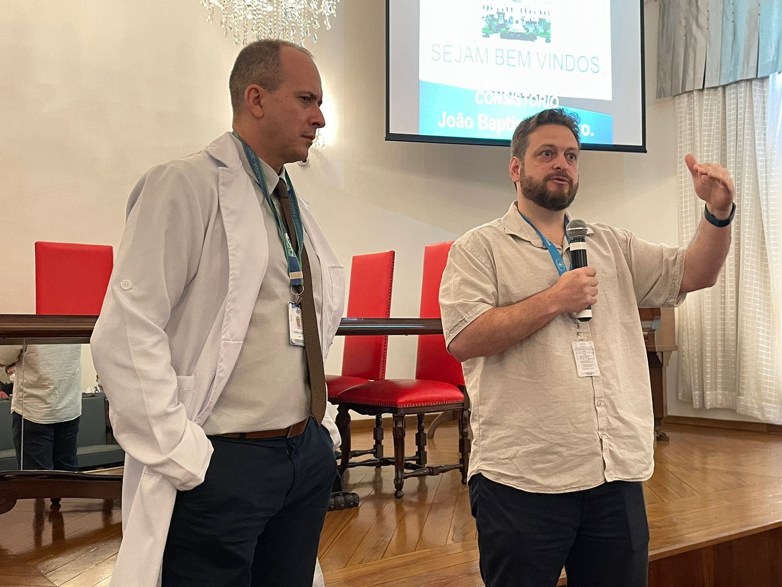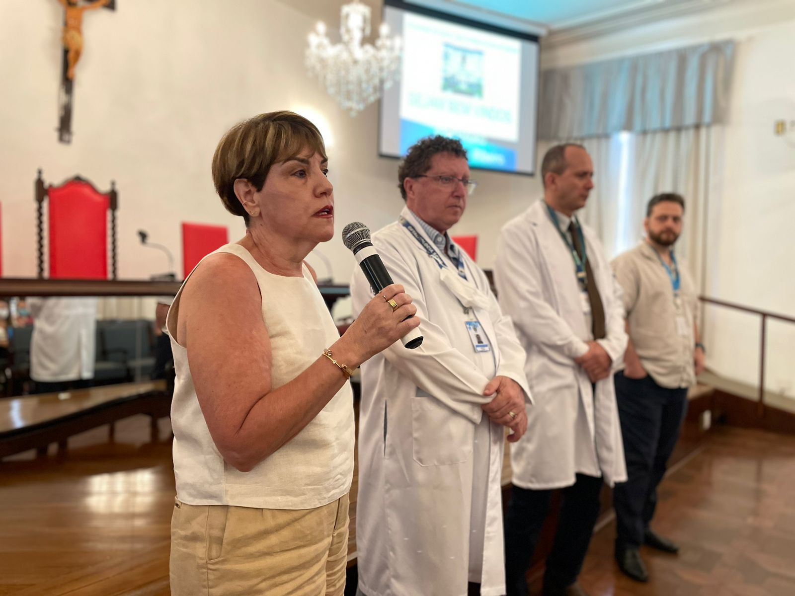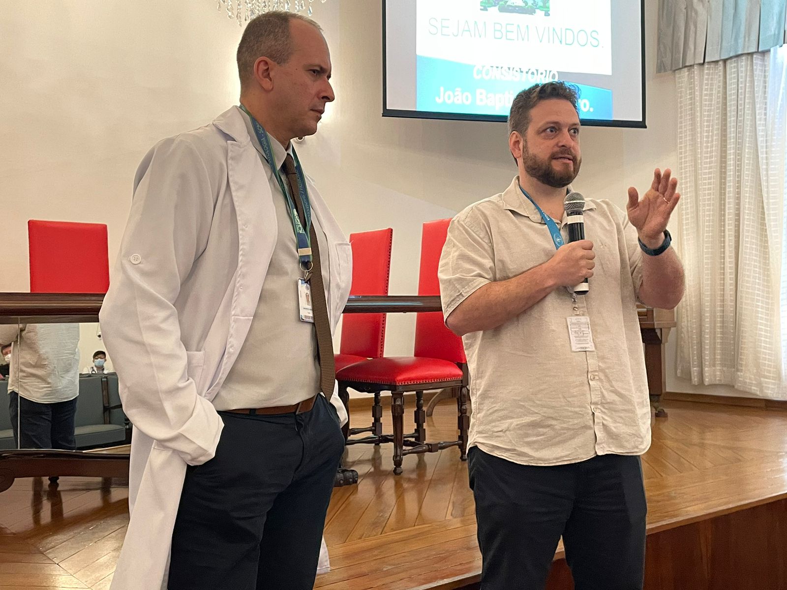 Reunião para integração dos profissionais contou com quase cem médicos no consistório da Santa Casa de Santos.