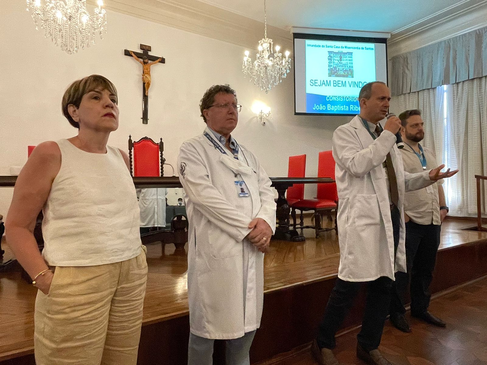 No dia 2/3, a Santa Casa de Santos reuniu no consistório cerca de cem médicos para a aula inaugural que marca o início do período de Residência Médica.