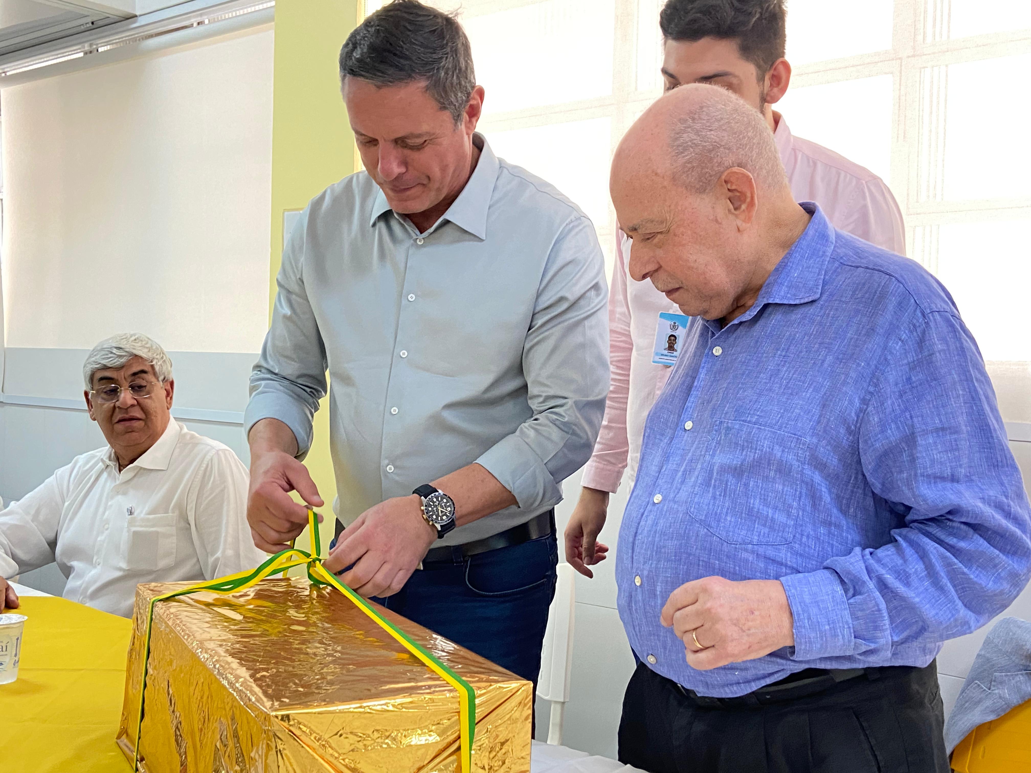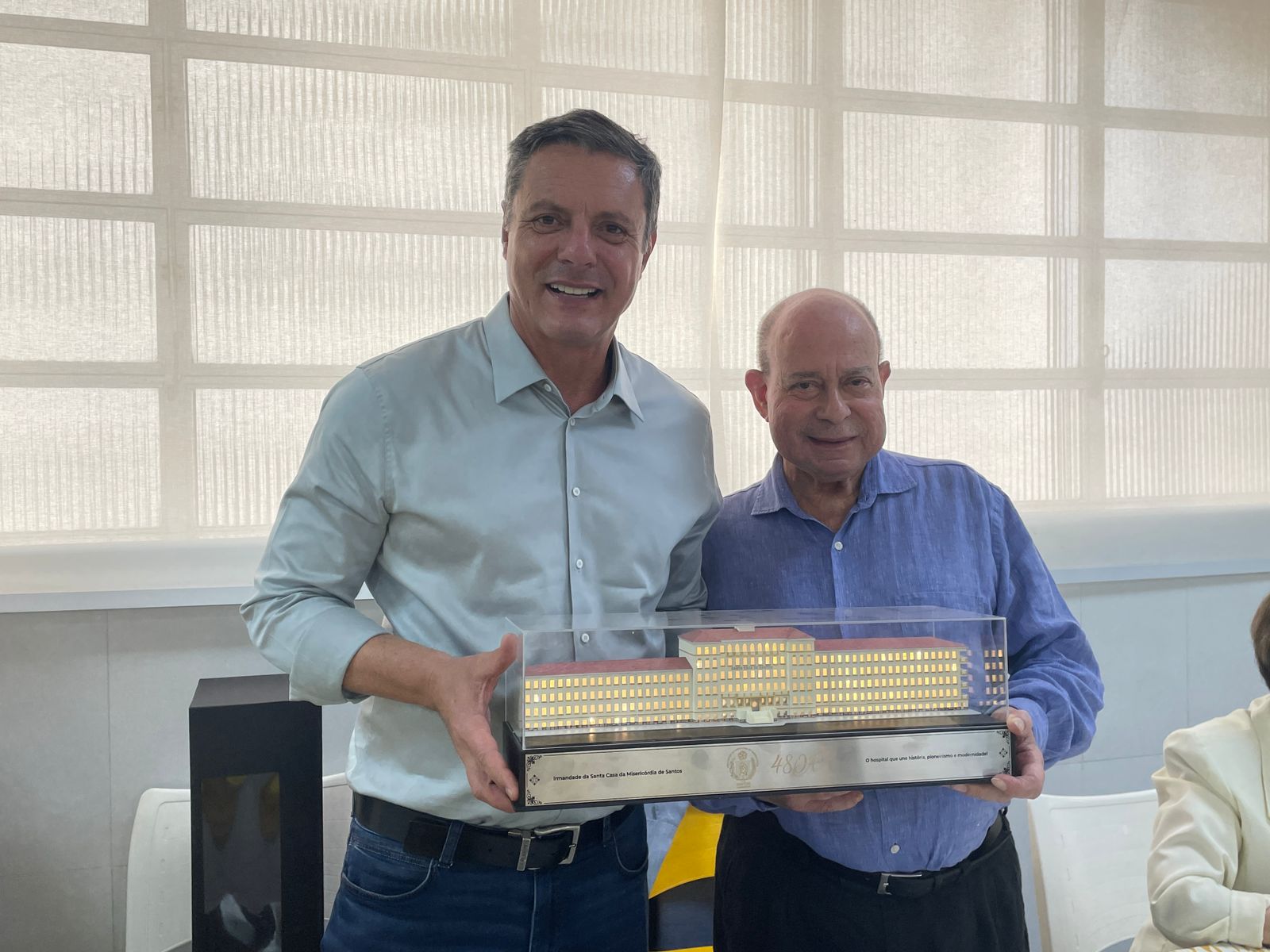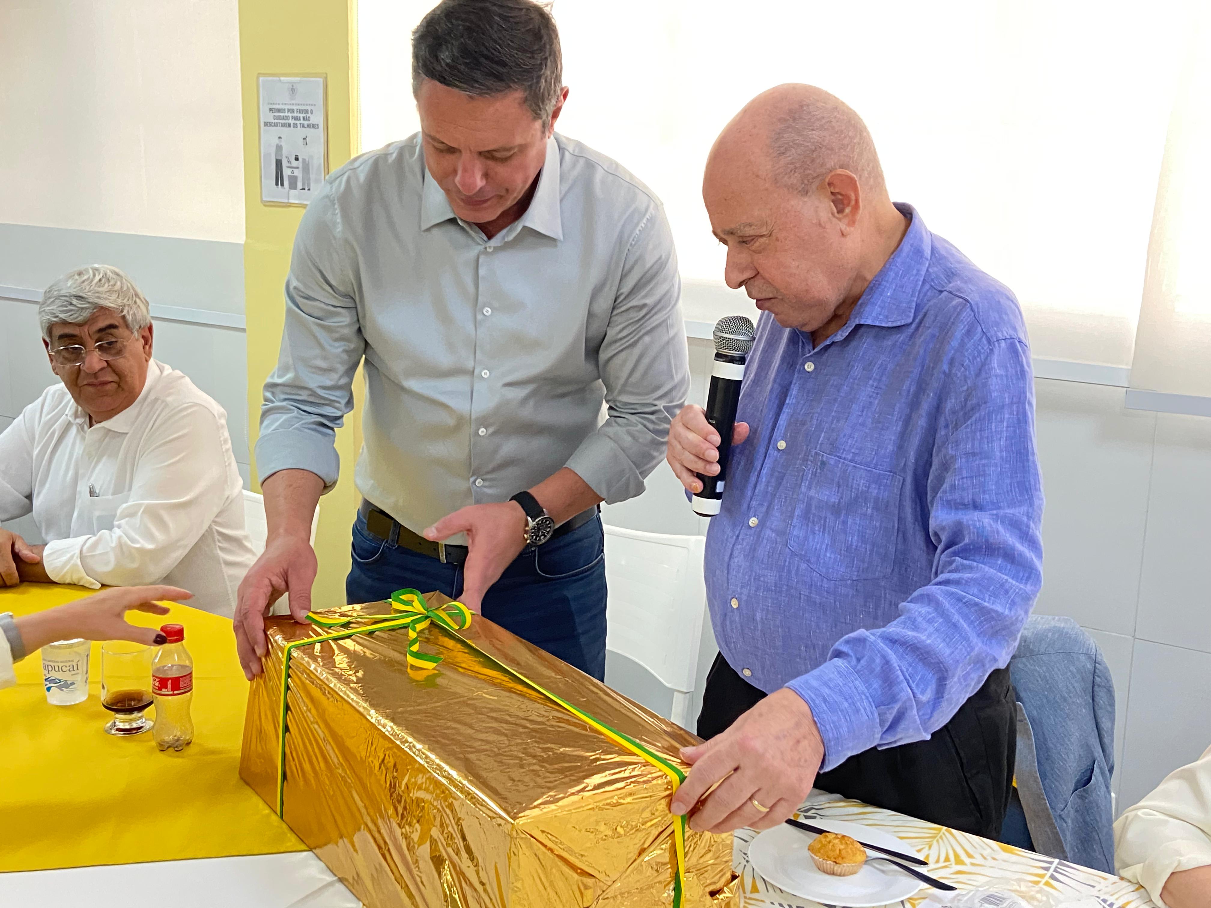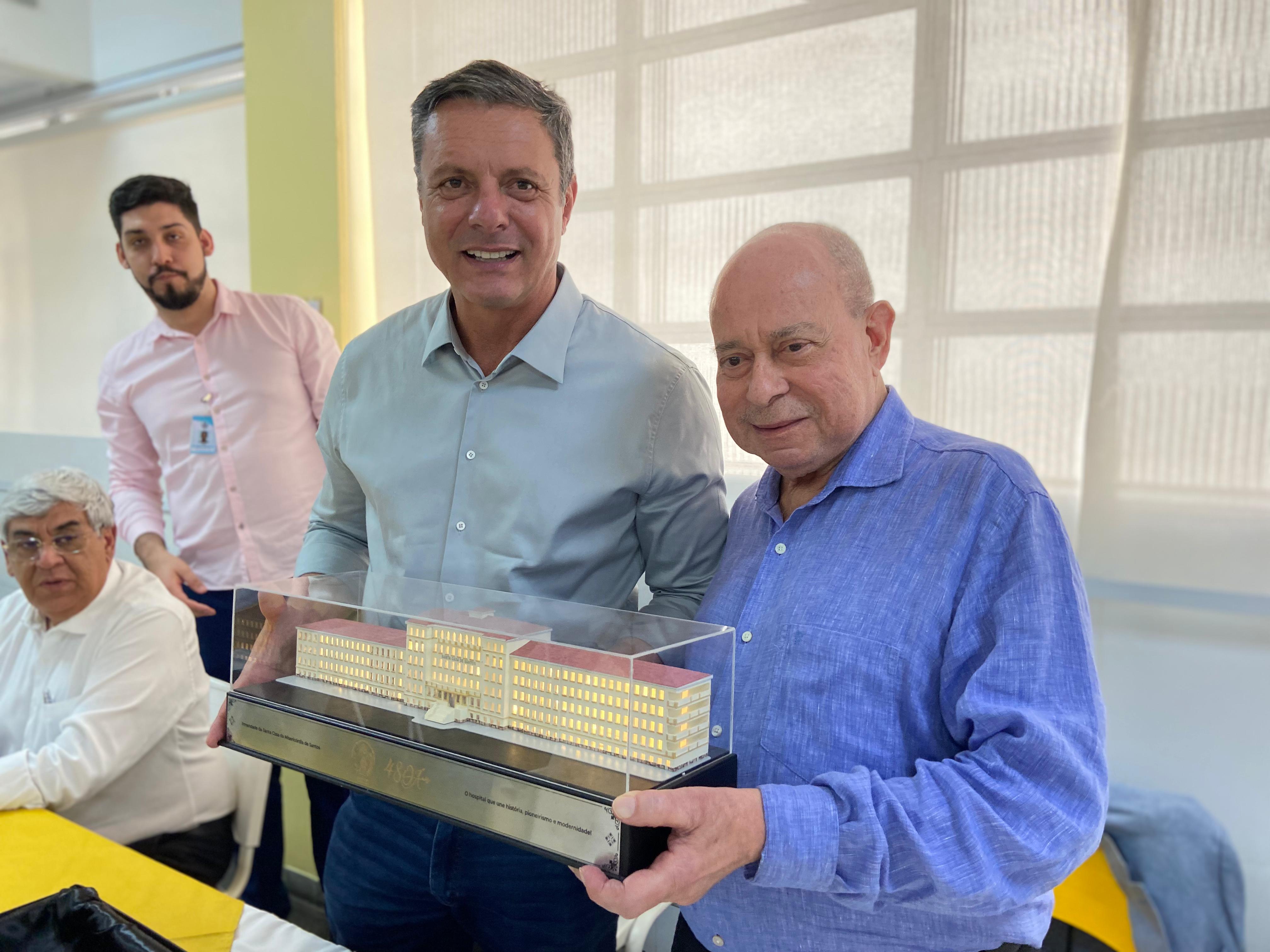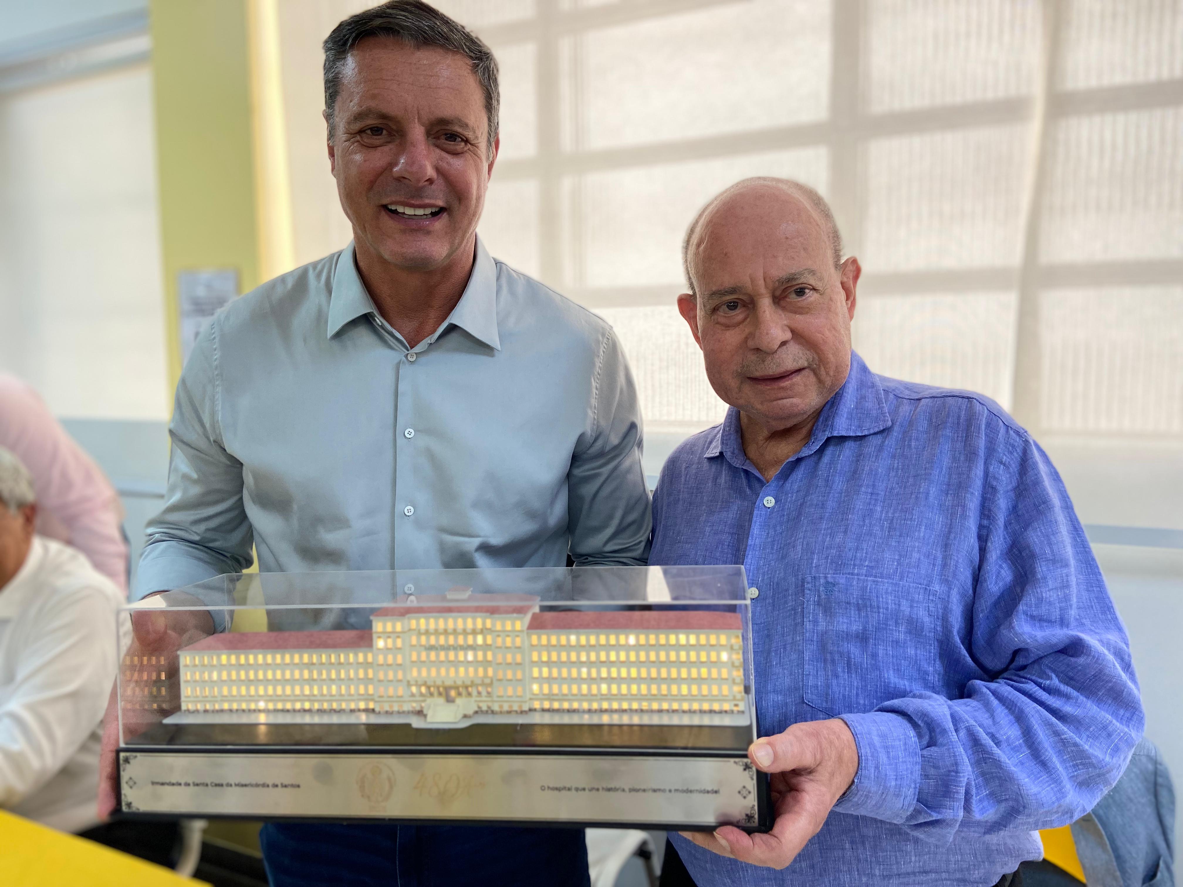Para surpresa do prefeito Rogério Santos, o provedor o presenteou com uma maquete da Santa Casa de Santos, em reconhecimento à parceria da instituição com a gestão municipal. Rogério Santos agradeceu o provedor e ficou muito feliz pelo presente e por ter sido escolhido para ter uma peça tão cheia de significado para a região.