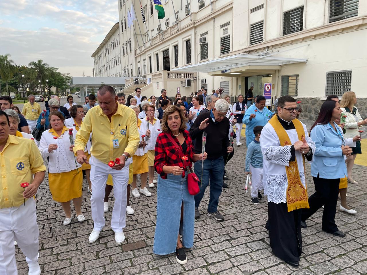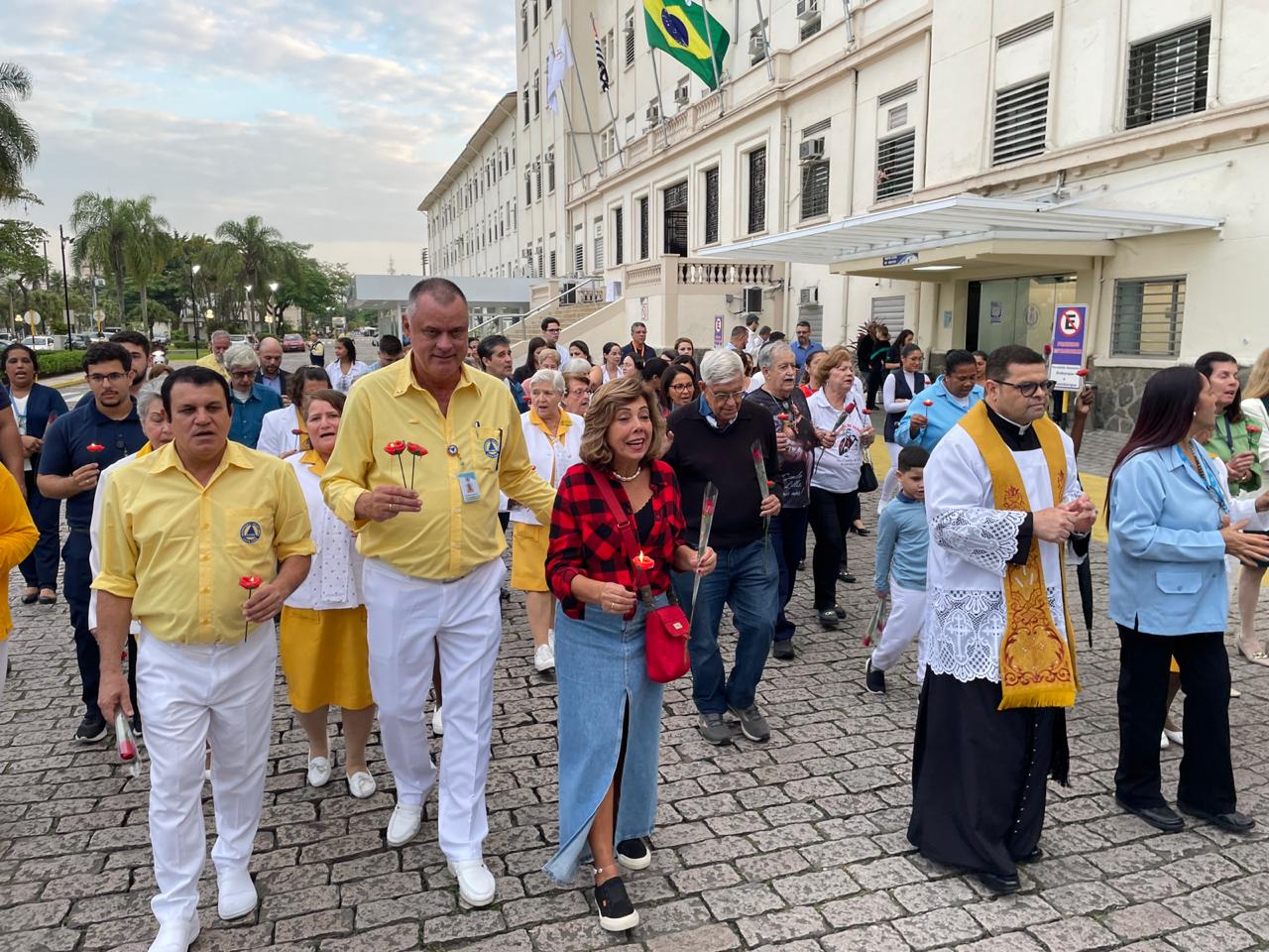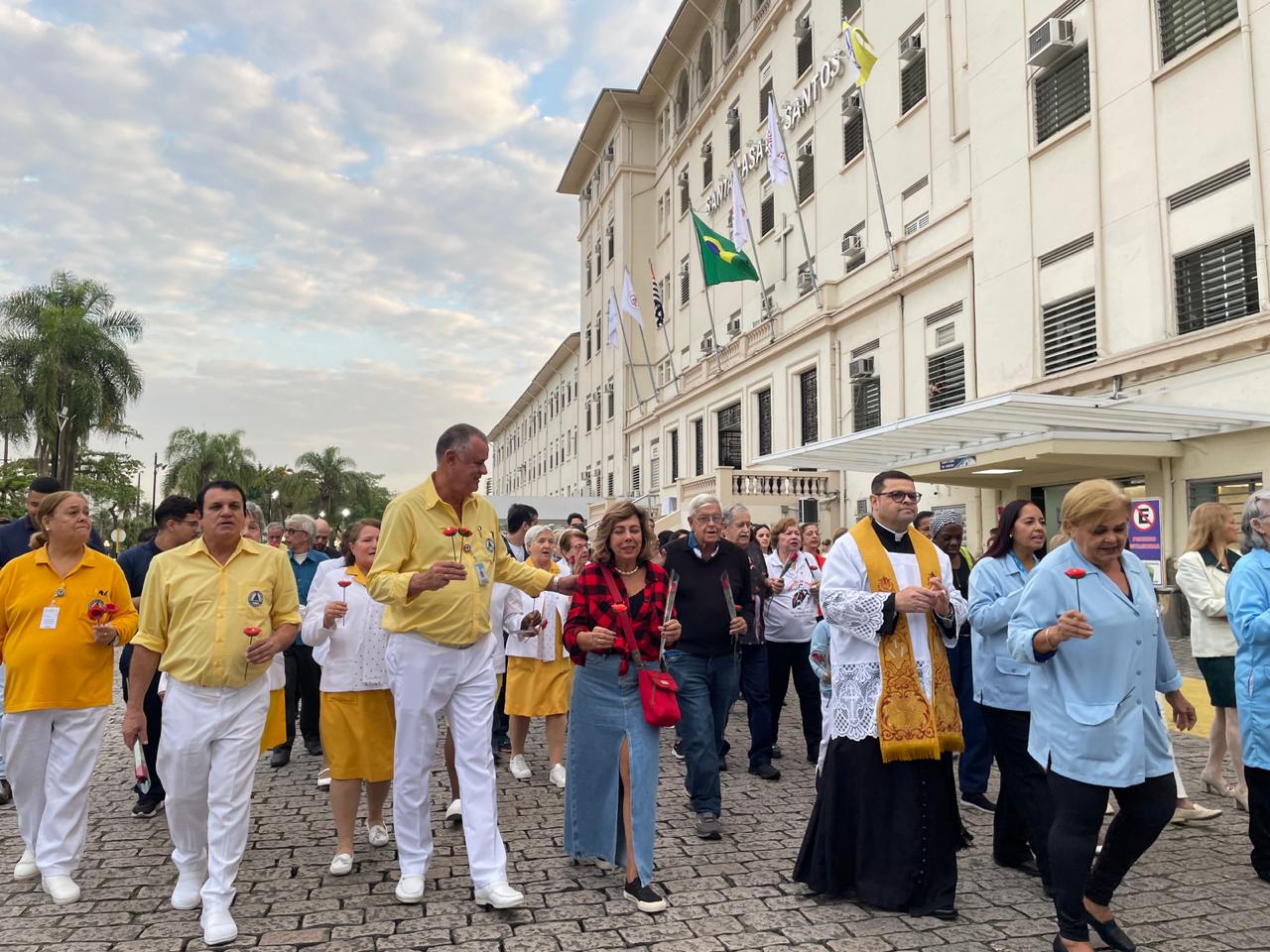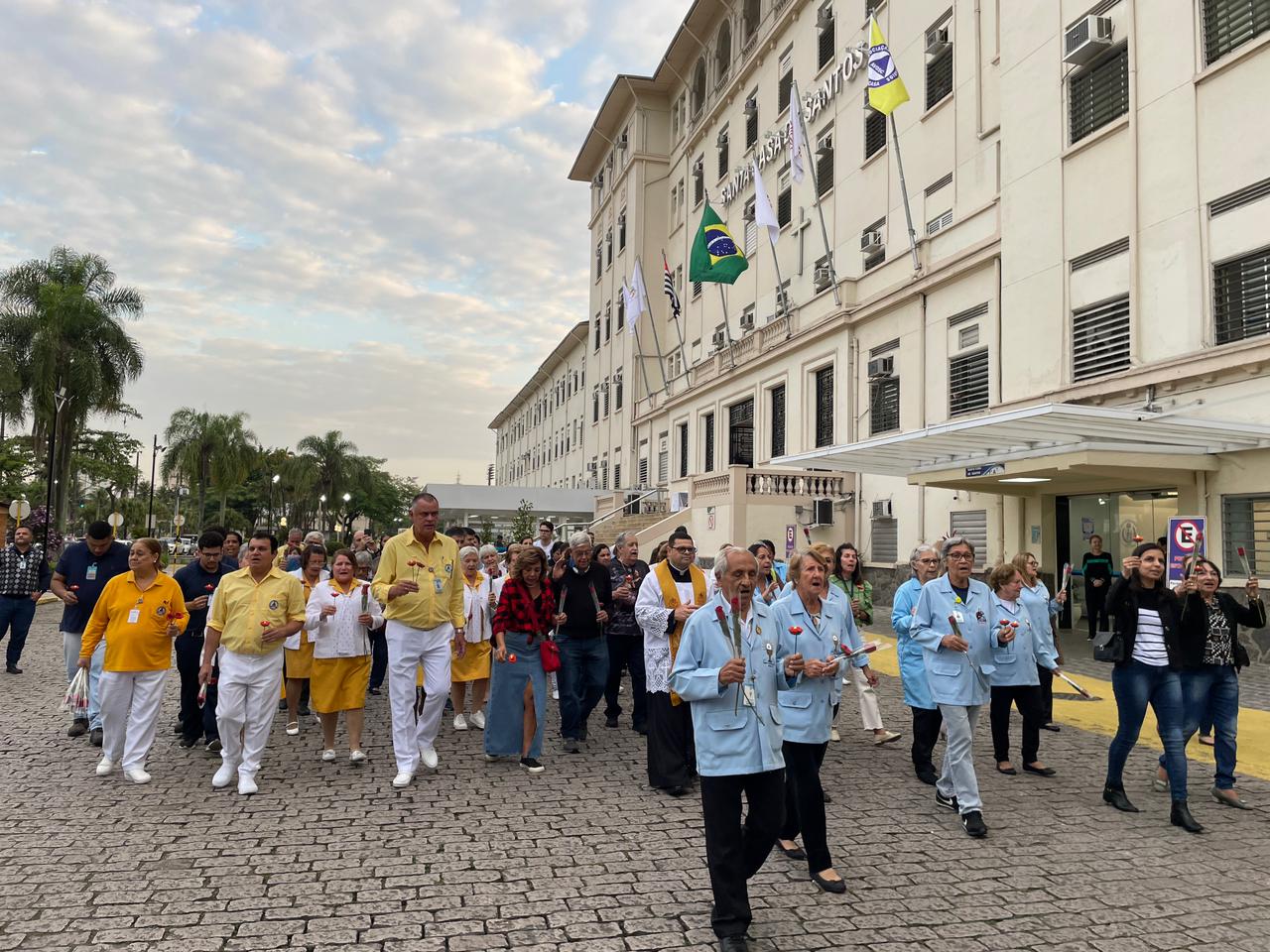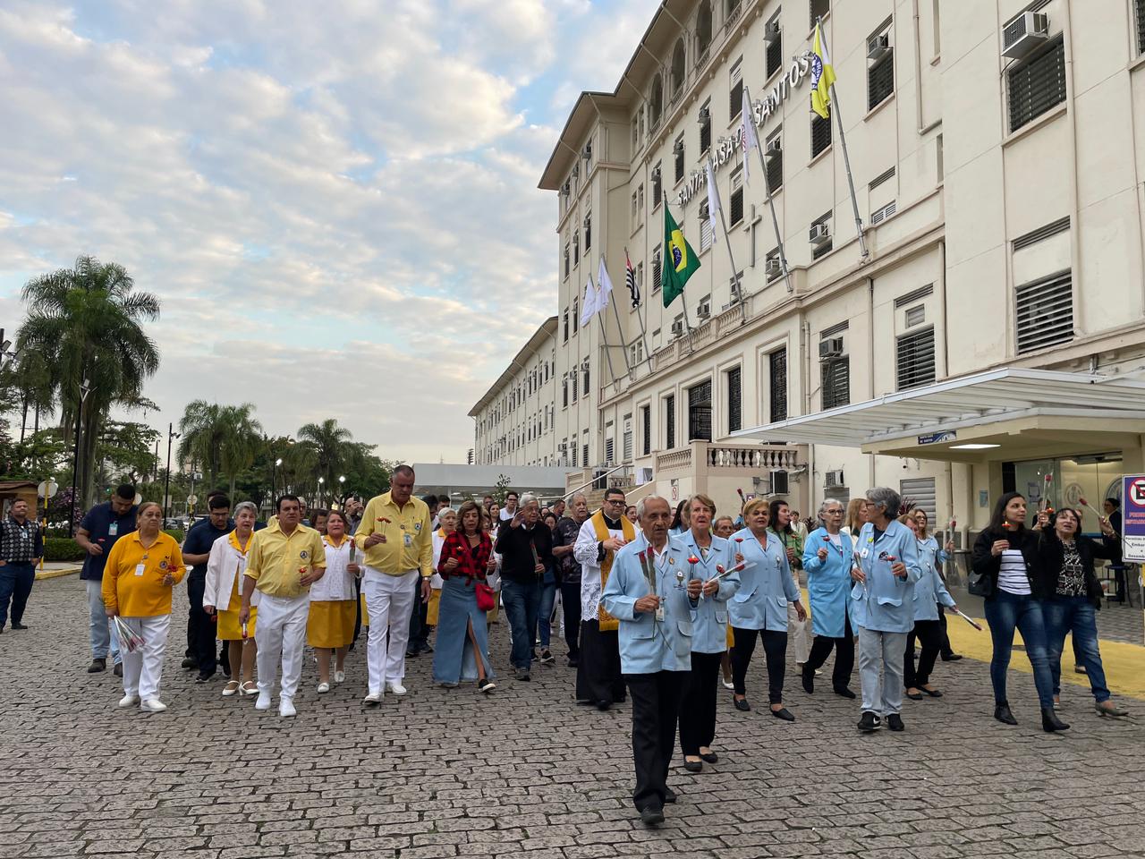 No período da tarde, os voluntários fizeram a distribuição de rosas aos enfermos e, às 16h30, aconteceu a procissão luminosa, saindo da frente da Santa Casa de Santos rumo à Capela Santa Isabel.