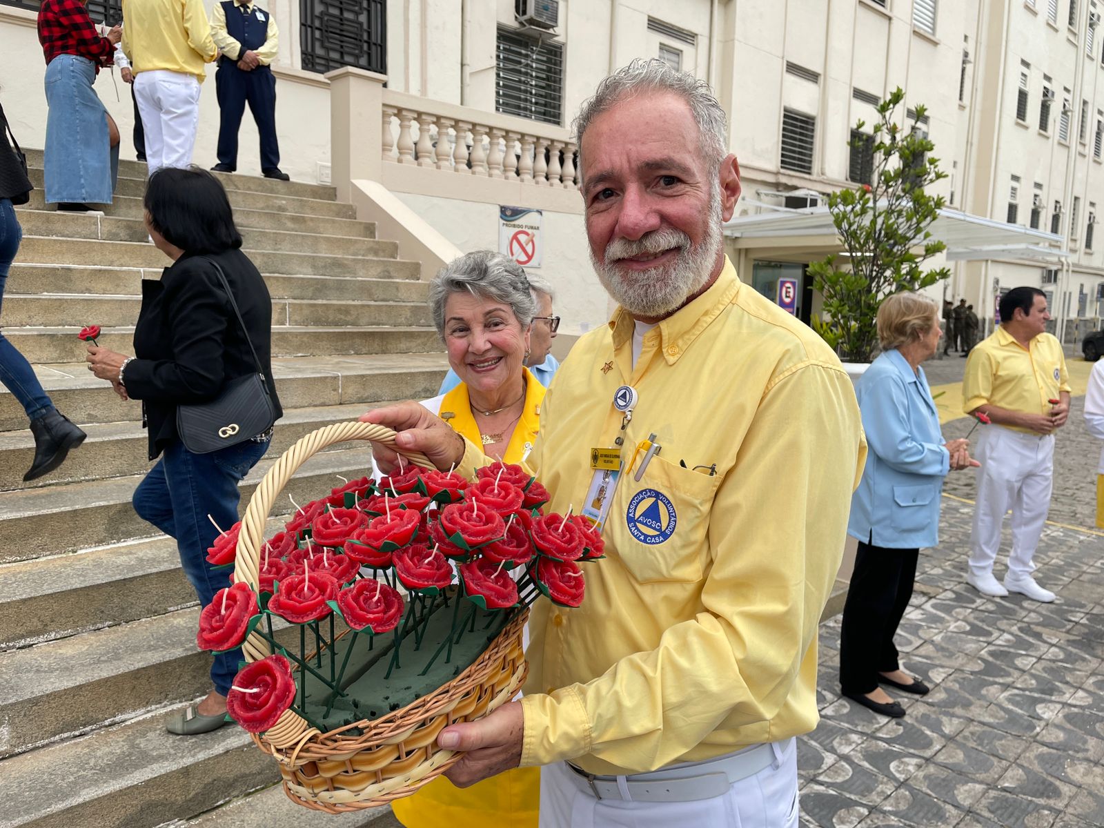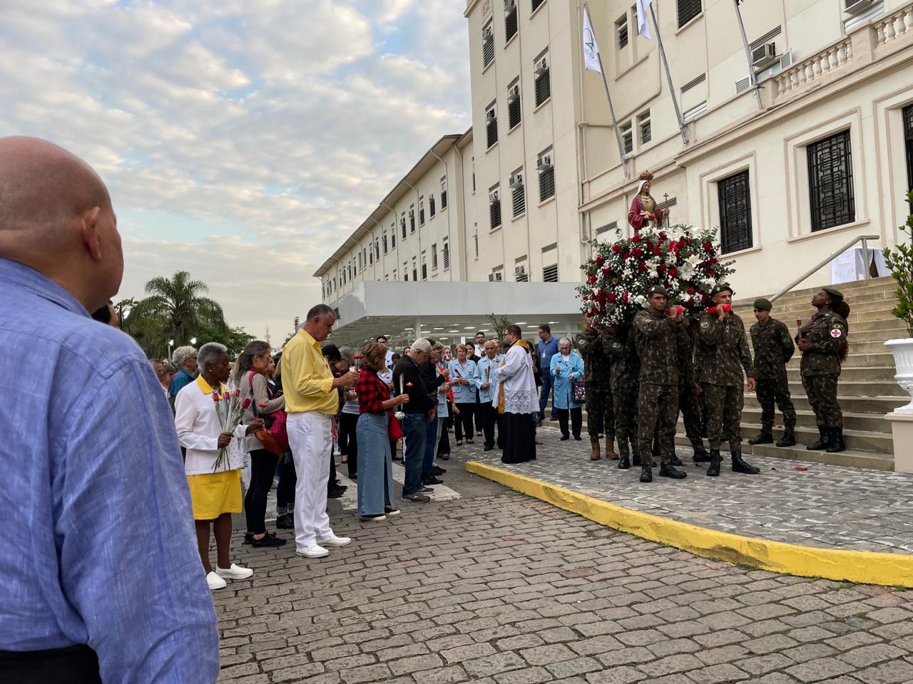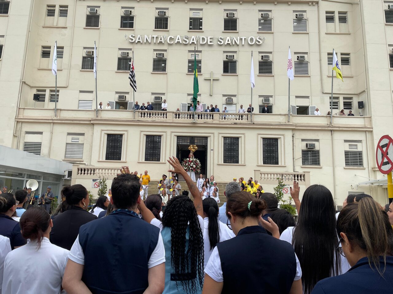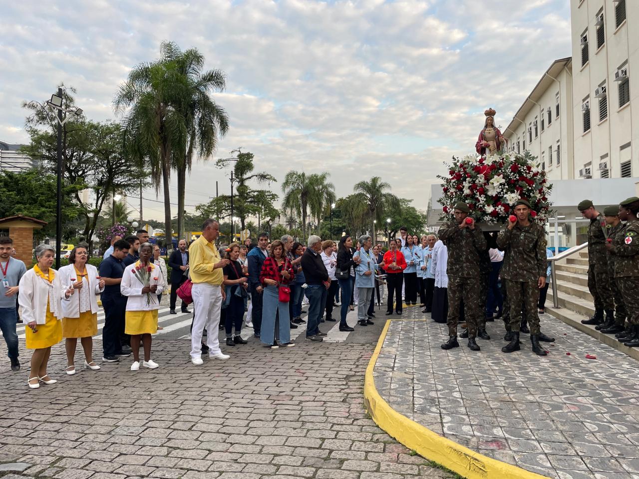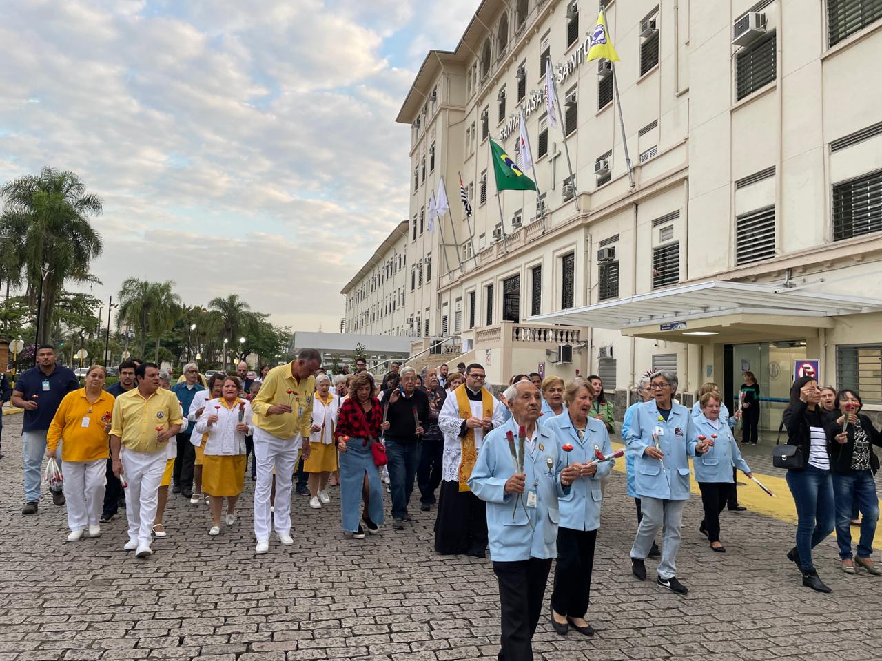 No período da tarde, os voluntários fizeram a distribuição de rosas aos enfermos e, às 16h30, aconteceu a procissão luminosa, saindo da frente da Santa Casa de Santos rumo à Capela Santa Isabel.