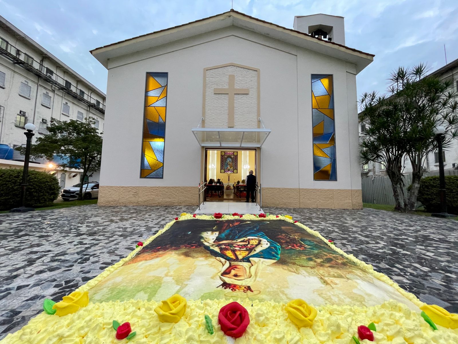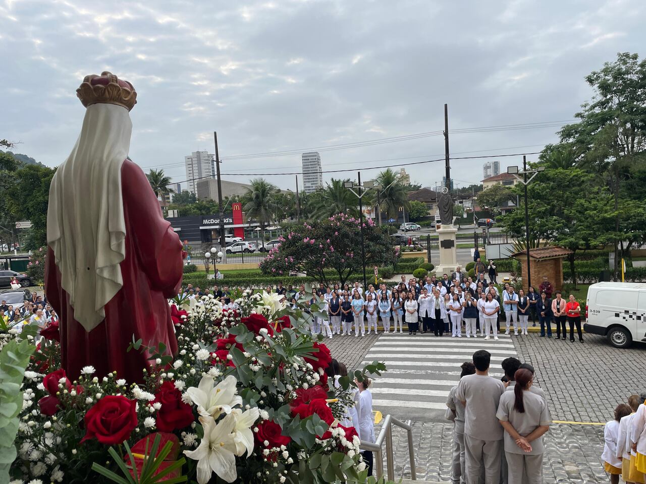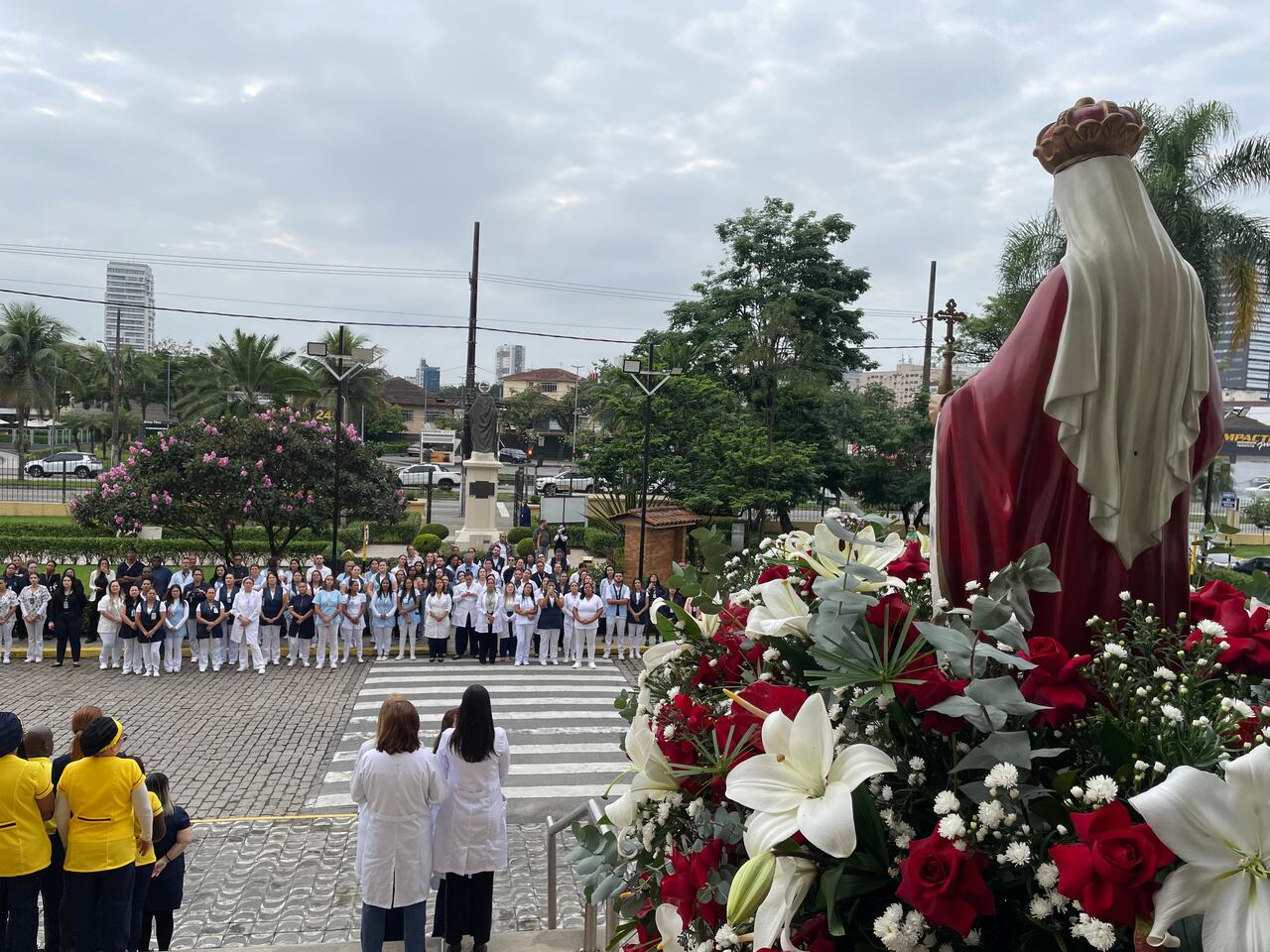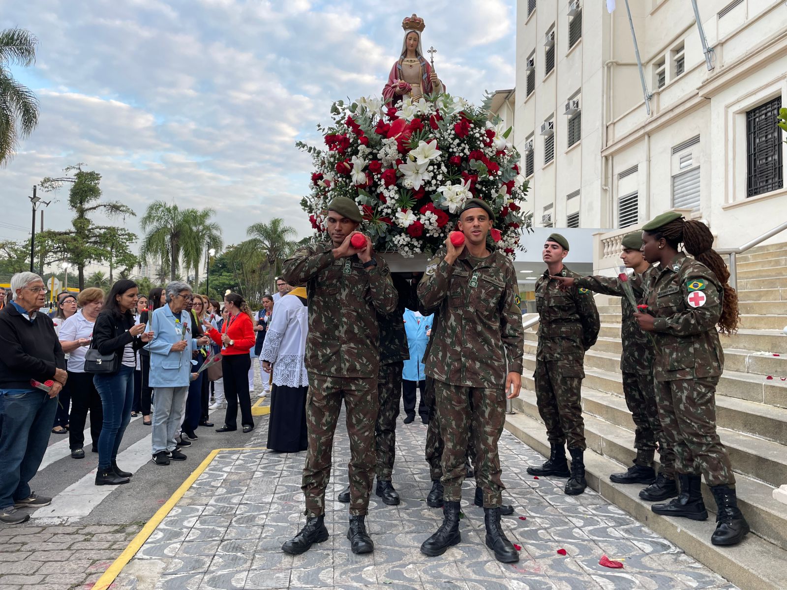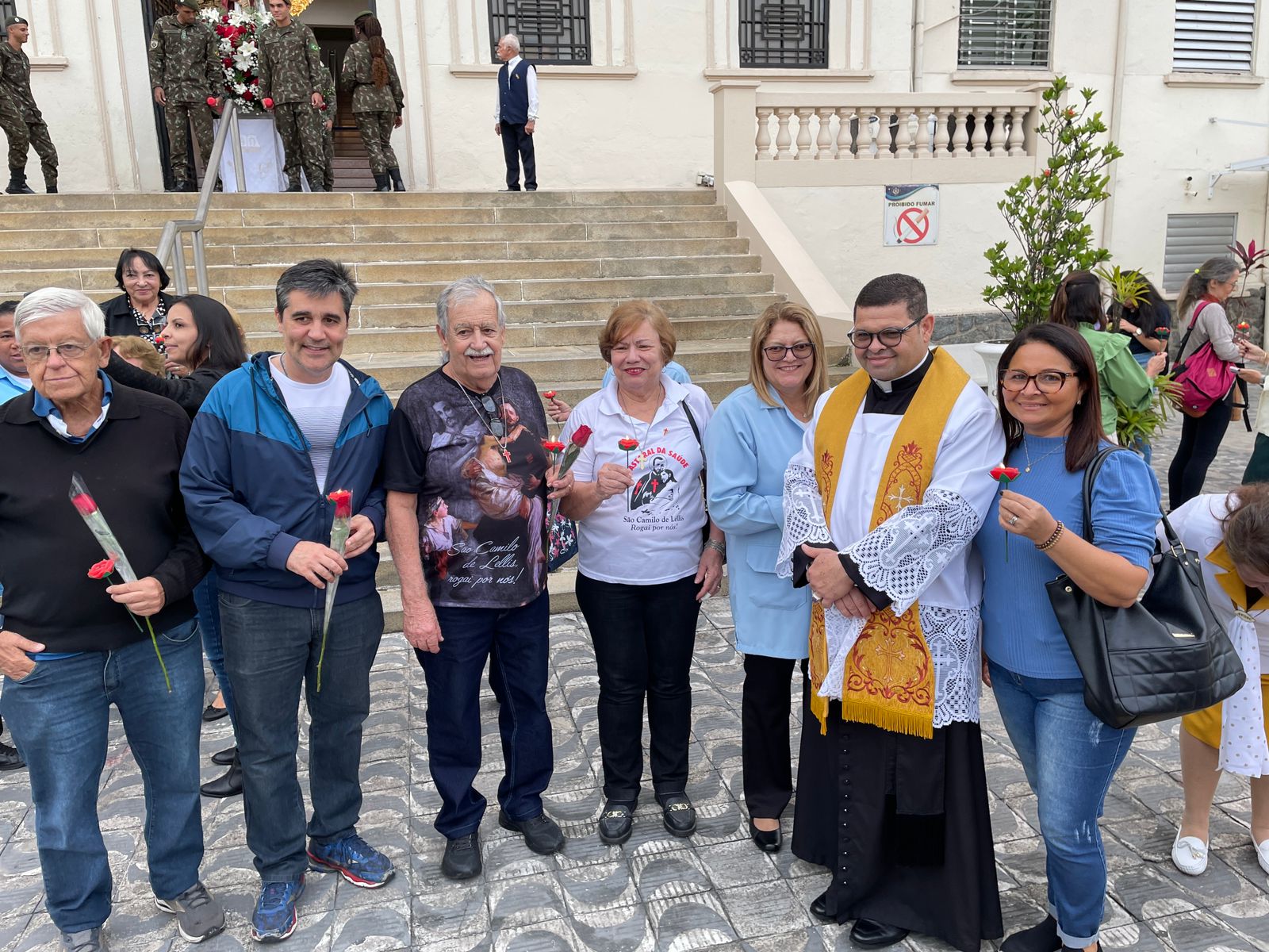 No período da tarde, os voluntários fizeram a distribuição de rosas aos enfermos e, às 16h30, aconteceu a procissão luminosa, saindo da frente da Santa Casa de Santos rumo à Capela Santa Isabel.