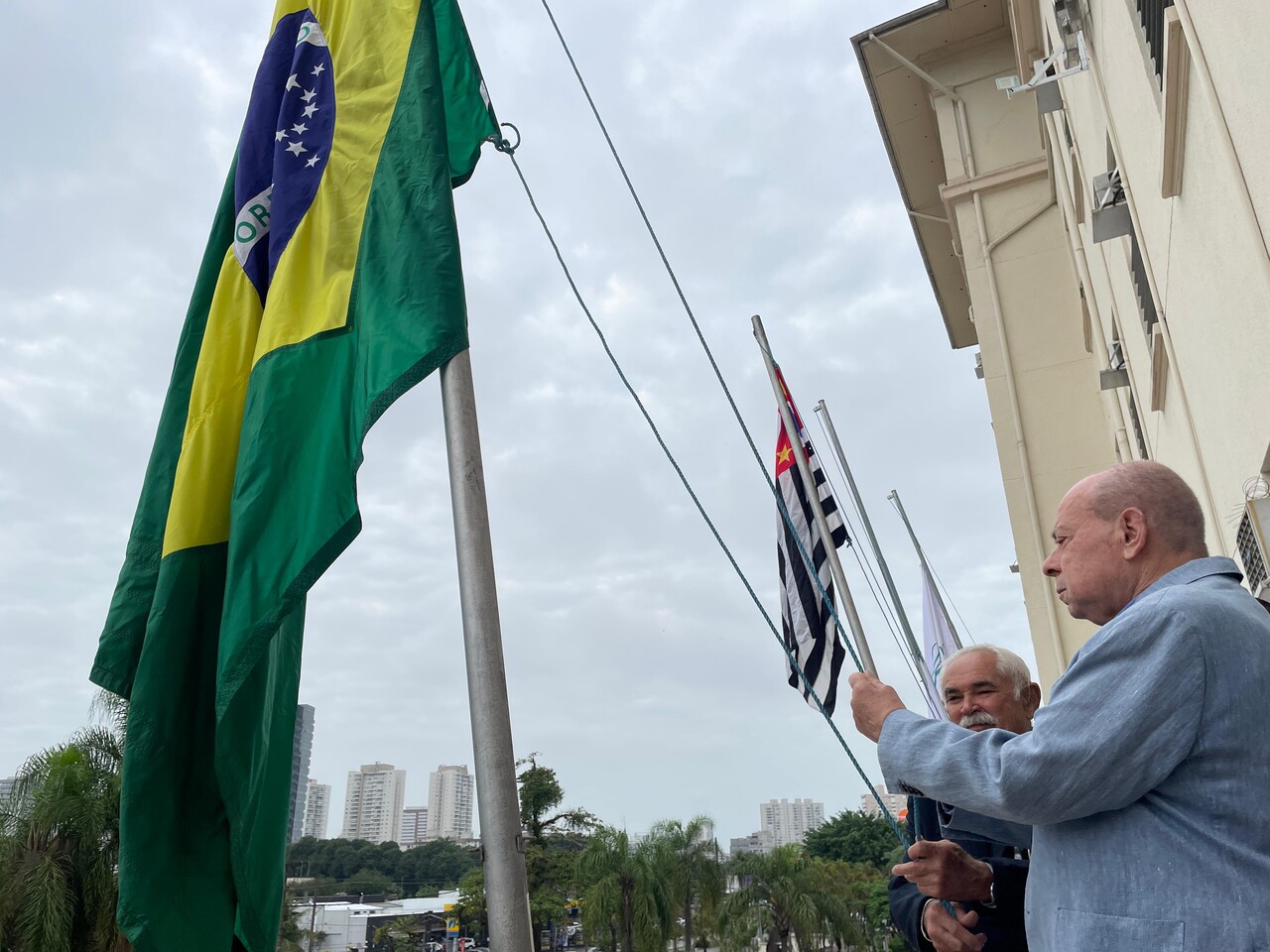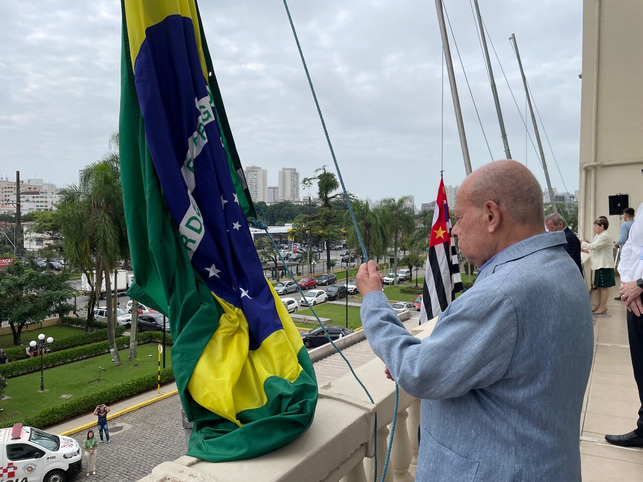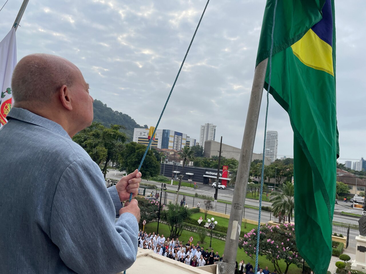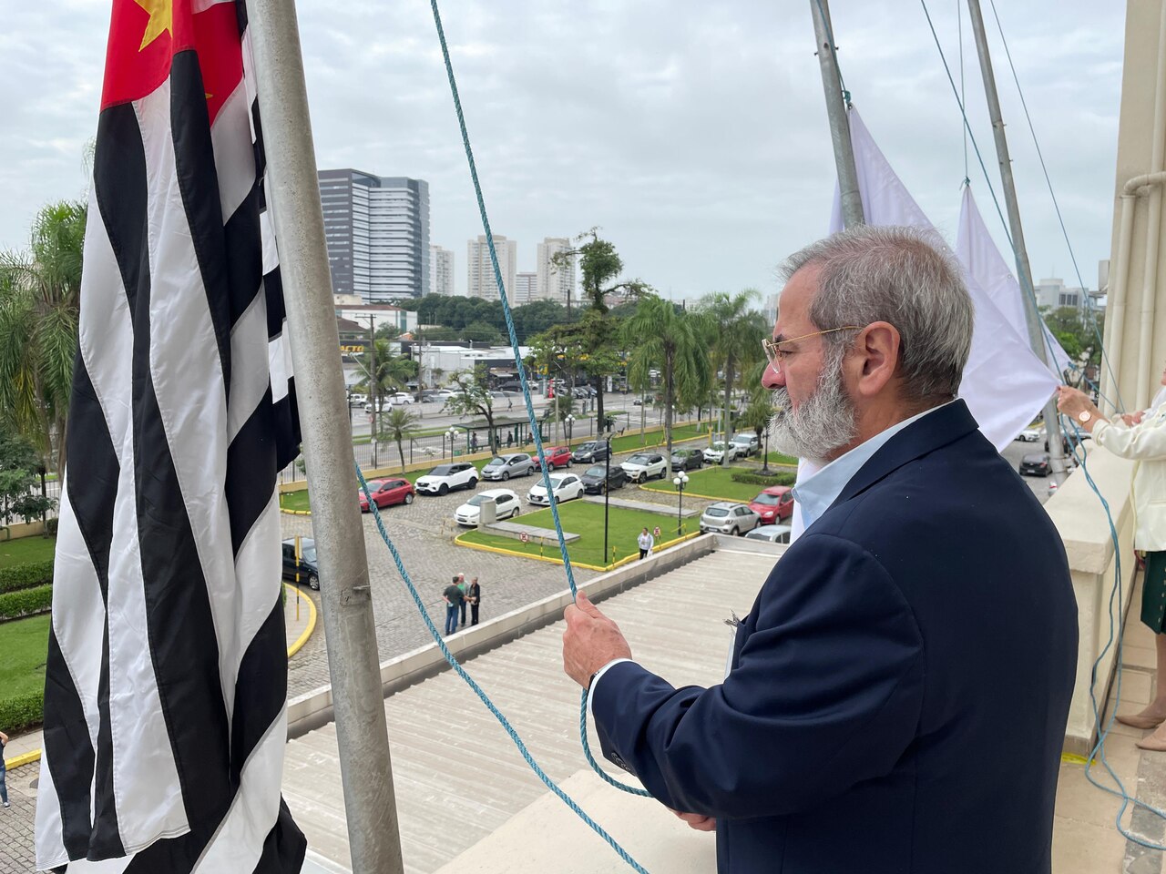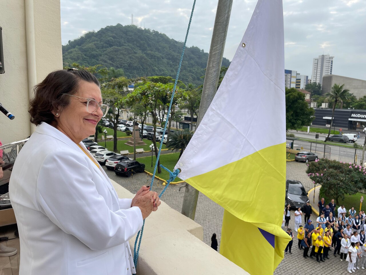 Da sacada da Santa Casa, gestores e membros da Mesa Administrativa e Conselho realizaram o hasteamento das bandeiras, conforme segue: provedor, Ariovaldo Feliciano (Bandeira do Brasil); presidente do Conselho Geral, Orlando Viscardi Junior (Bandeira de São Paulo); vice provedor e presidente da Câmara Municipal de Santos, Carlos Teixeira Filho (Bandeira de Santos); 1º Tesoureiro da Mesa Administrativa, Antonio Carvalho (Bandeira da Santa Casa de Santos); presidente da C.C.Q. , Eliana Lopes Feliciano (Bandeira do voluntariado da CCQ); presidente do voluntariado das Amarelinhas, Aparecida Regina Ramos Santos (Bandeira das Amarelinhas – AVOSC); gestora de Enfermagem, Enfª. Rita Rocha (Bandeira da Enfermagem). Também marcaram presença nos Festejos de Santa Isabel: o mordomo geral, Clóvis Moblize; a vice-presidente do Conselho Deliberativo, Marise Céspedes Tavolaro; o diretor de apoio, Octavio Tavolaro Filho; o diretor clínico, Dr. Constantino Kader Conde; o diretor comercial, Fábio Isoldi; o diretor jurídico, Dr. Aldo Santos Pinto; o diretor técnico, Dr. Alex Macedo; o vice-diretor clínico, Dr. Eloi Moccellin; e o coordenador médico do OS, Dr. Daniel Lustoza.