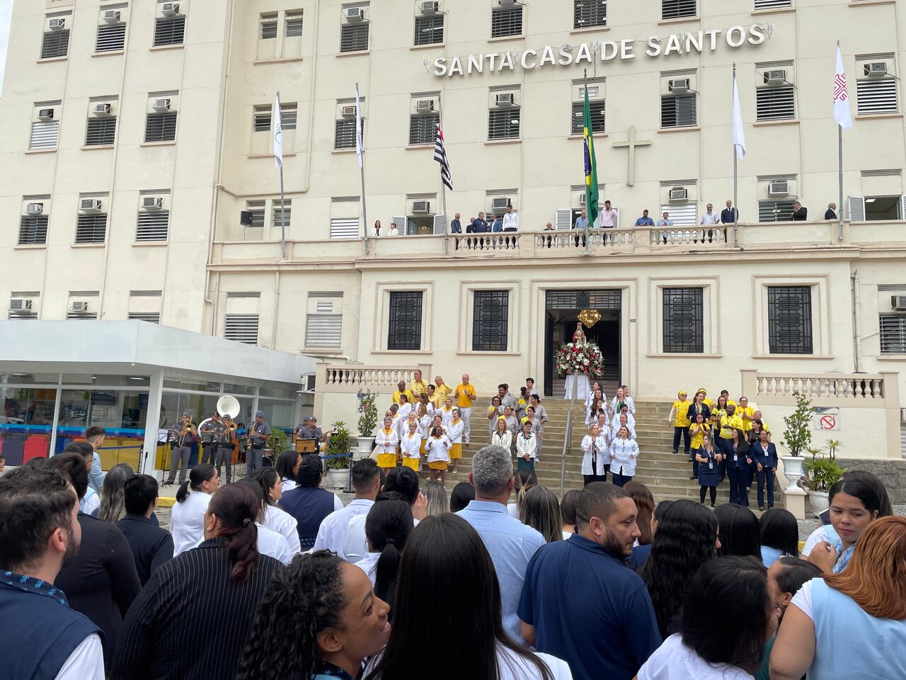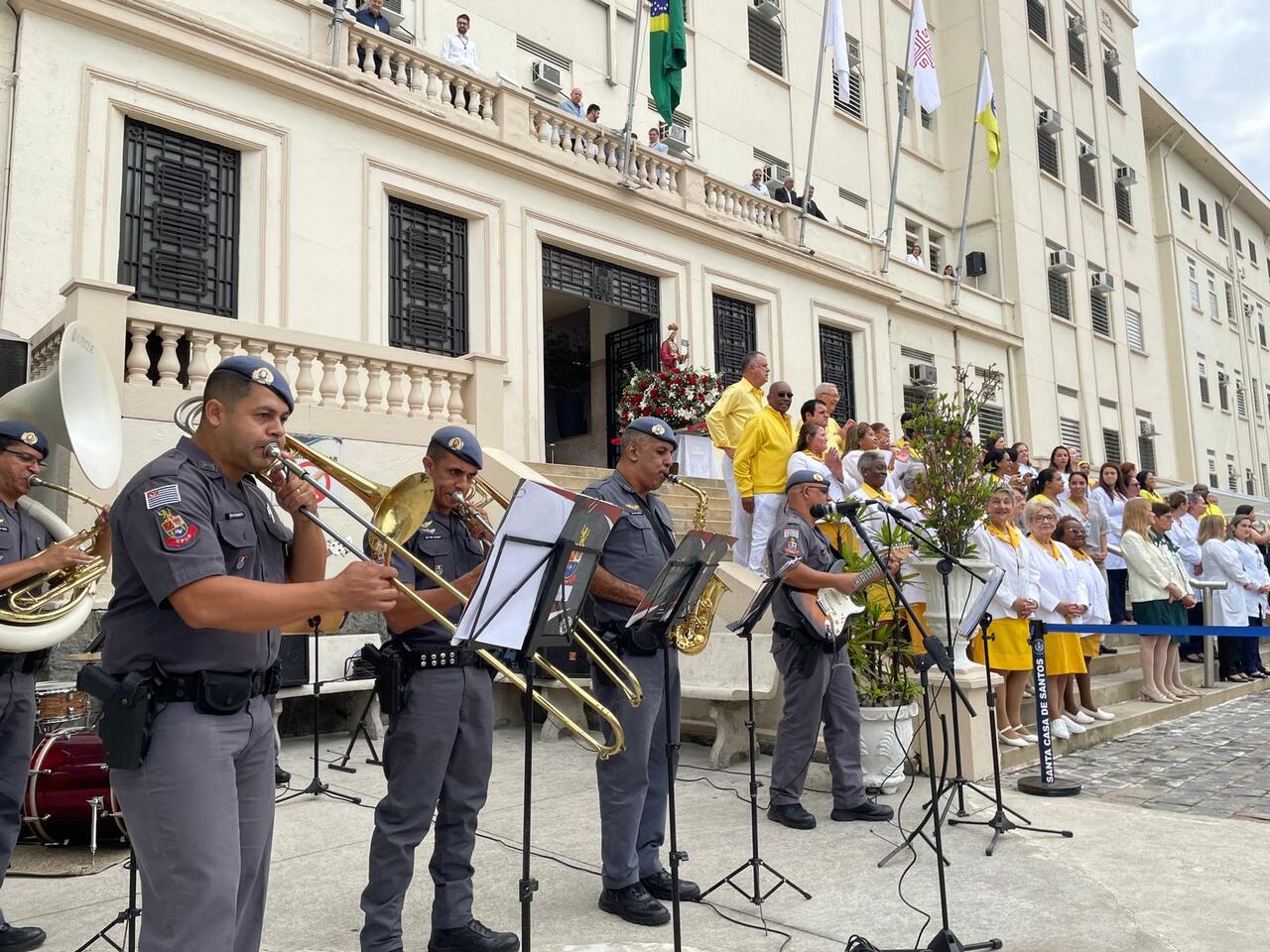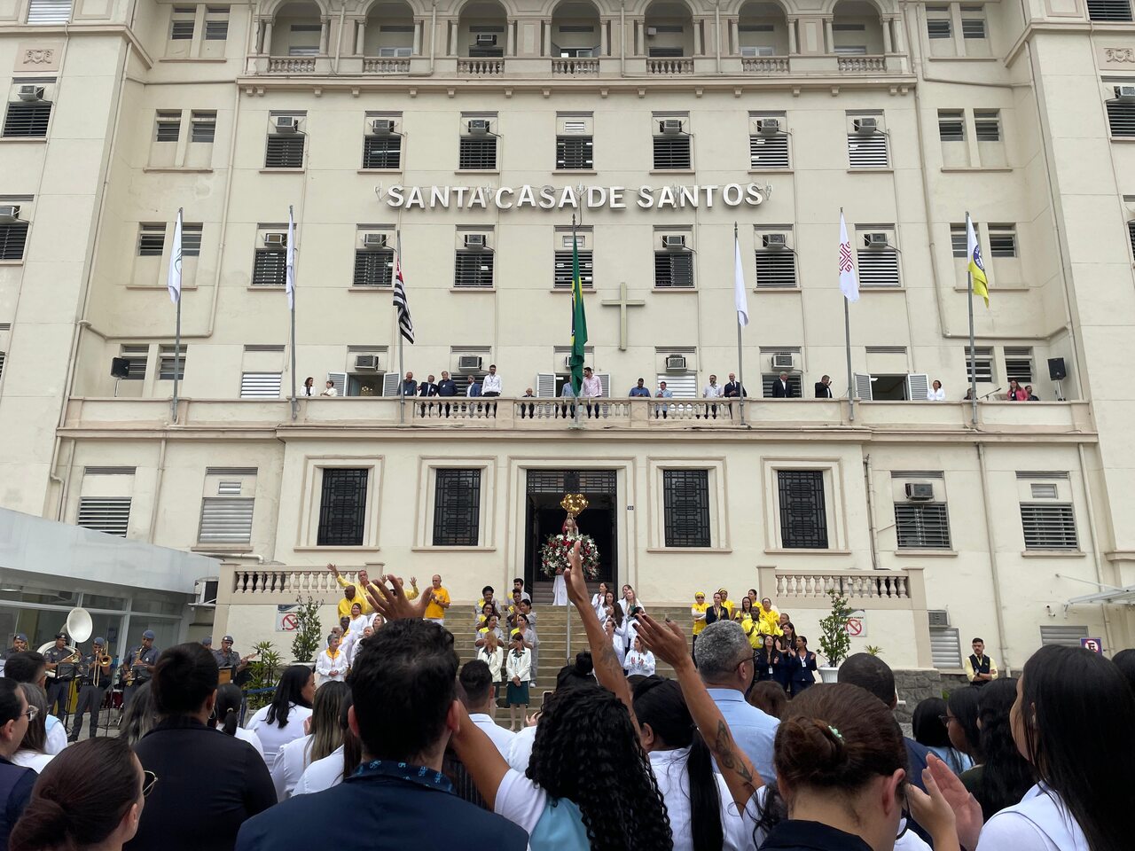 O Dia de Santa Isabel, padroeira das Santas Casas, foi celebrado com programação especial na Santa Casa de Santos, seguindo a tradição da instituição. Às 9h, o público se reuniu em frente às escadarias para o Hasteamento das Bandeiras e prestigiar a Banda Regimental de Música do CPI 6, que fez uma excelente apresentação com repertório de MPB e animou todos os presentes.