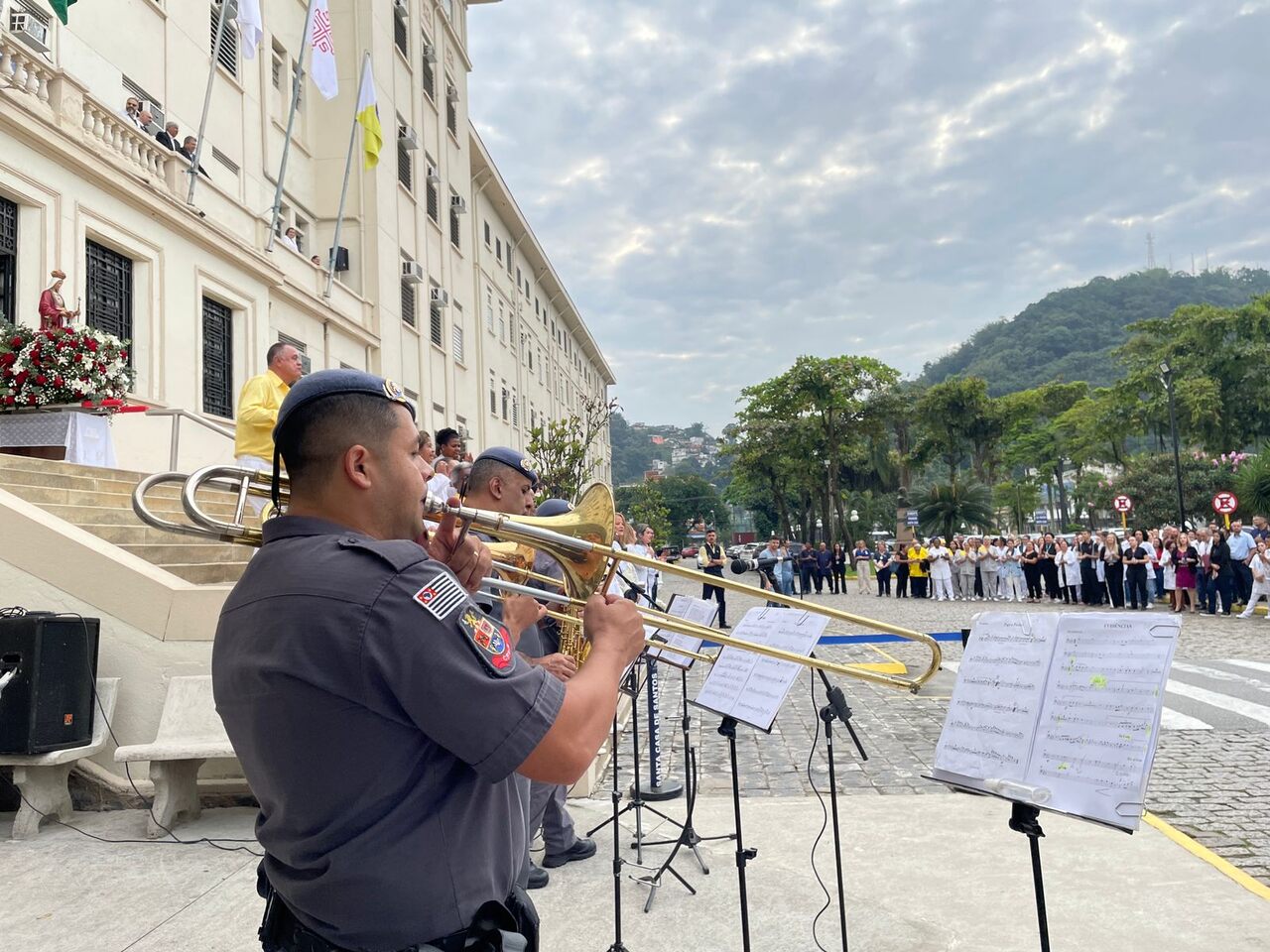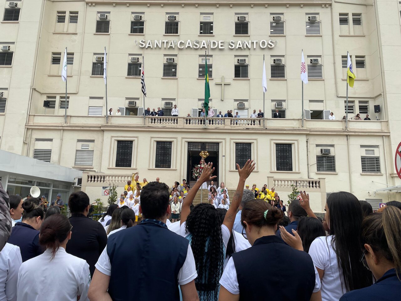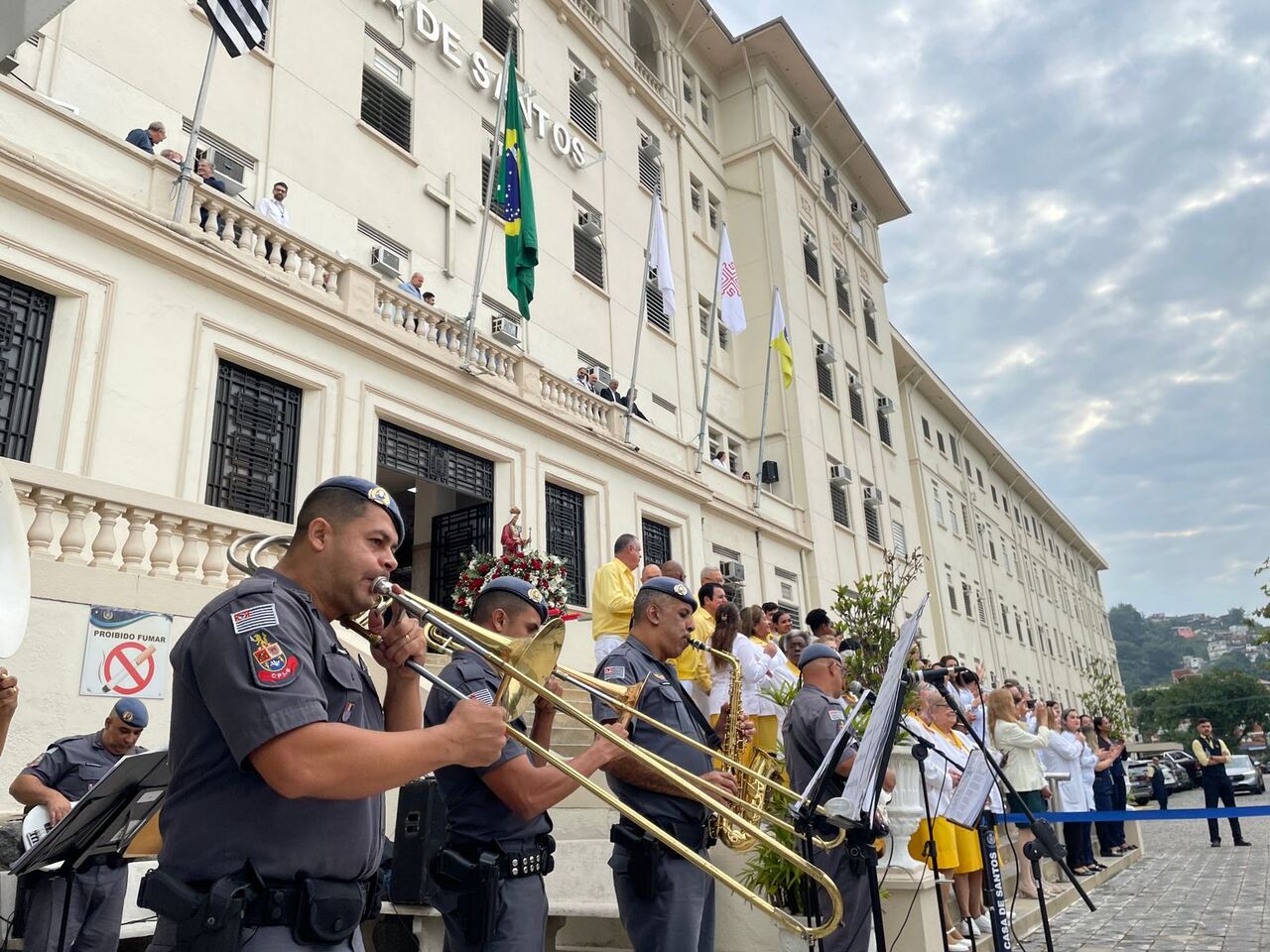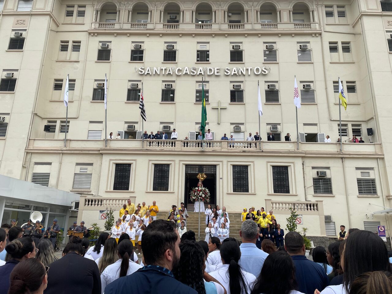 O Dia de Santa Isabel, padroeira das Santas Casas, foi celebrado com programação especial na Santa Casa de Santos, seguindo a tradição da instituição. Às 9h, o público se reuniu em frente às escadarias para o Hasteamento das Bandeiras e prestigiar a Banda Regimental de Música do CPI 6, que fez uma excelente apresentação com repertório de MPB e animou todos os presentes.