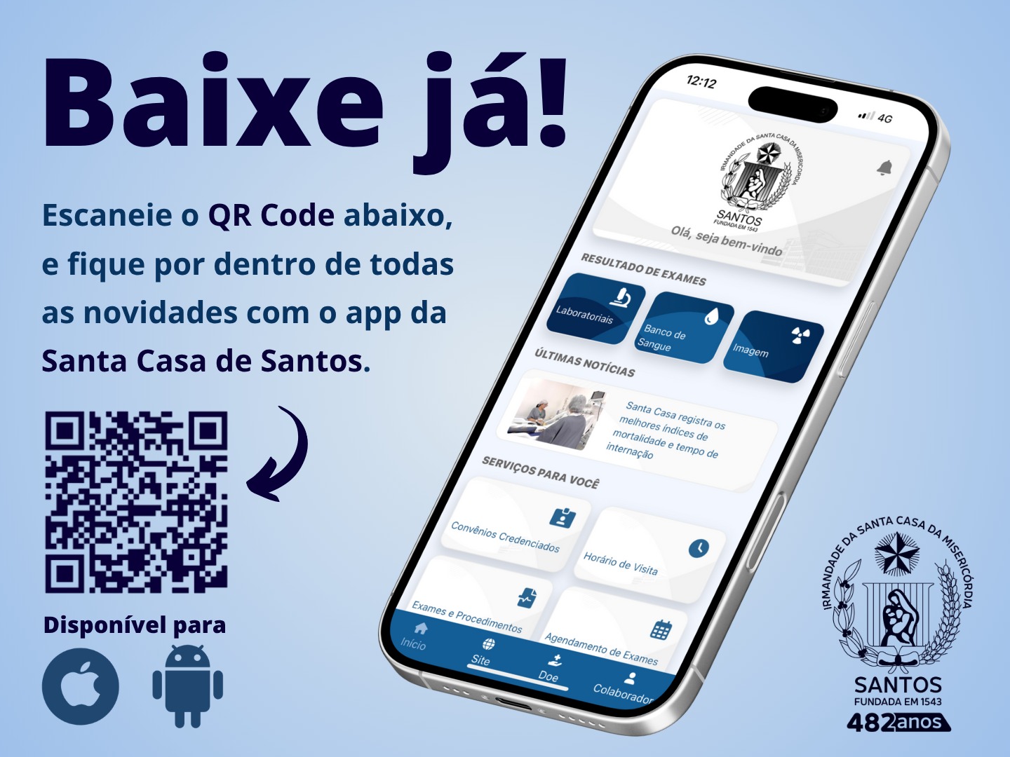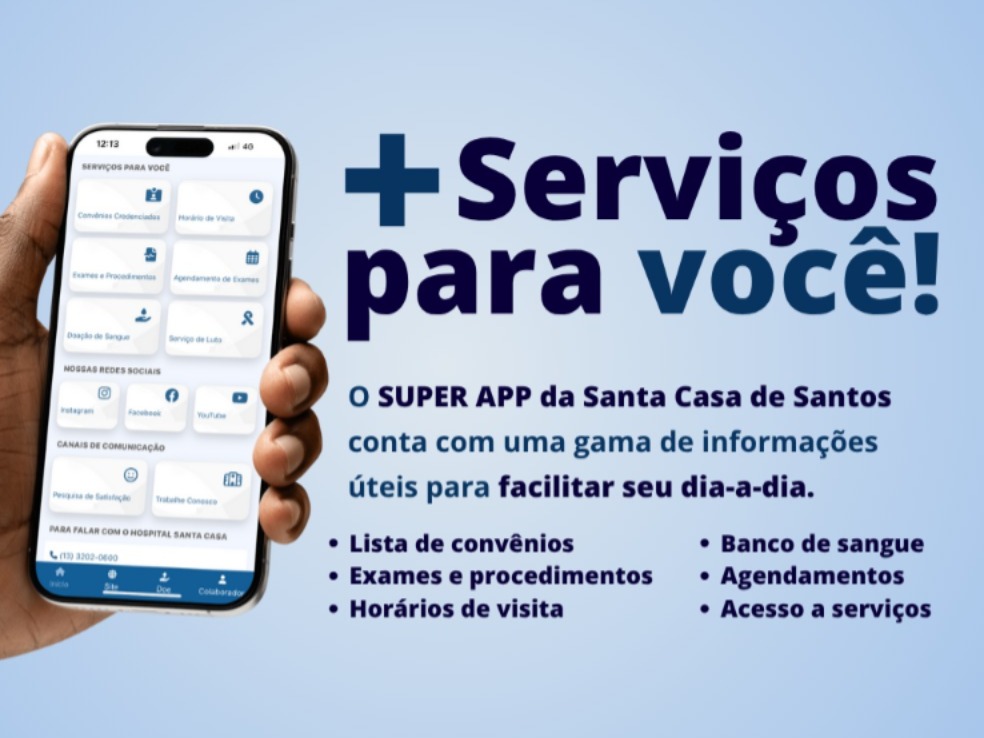 A Santa Casa de Santos, referência em saúde na região há mais de quatro séculos, segue inovando para facilitar a vida dos pacientes, acompanhantes e colaboradores e tornar o acesso aos serviços de saúde mais prático e eficiente. Pensando nisso, a instituição desenvolveu um aplicativo exclusivo, que coloca diversos serviços na palma da sua mão!