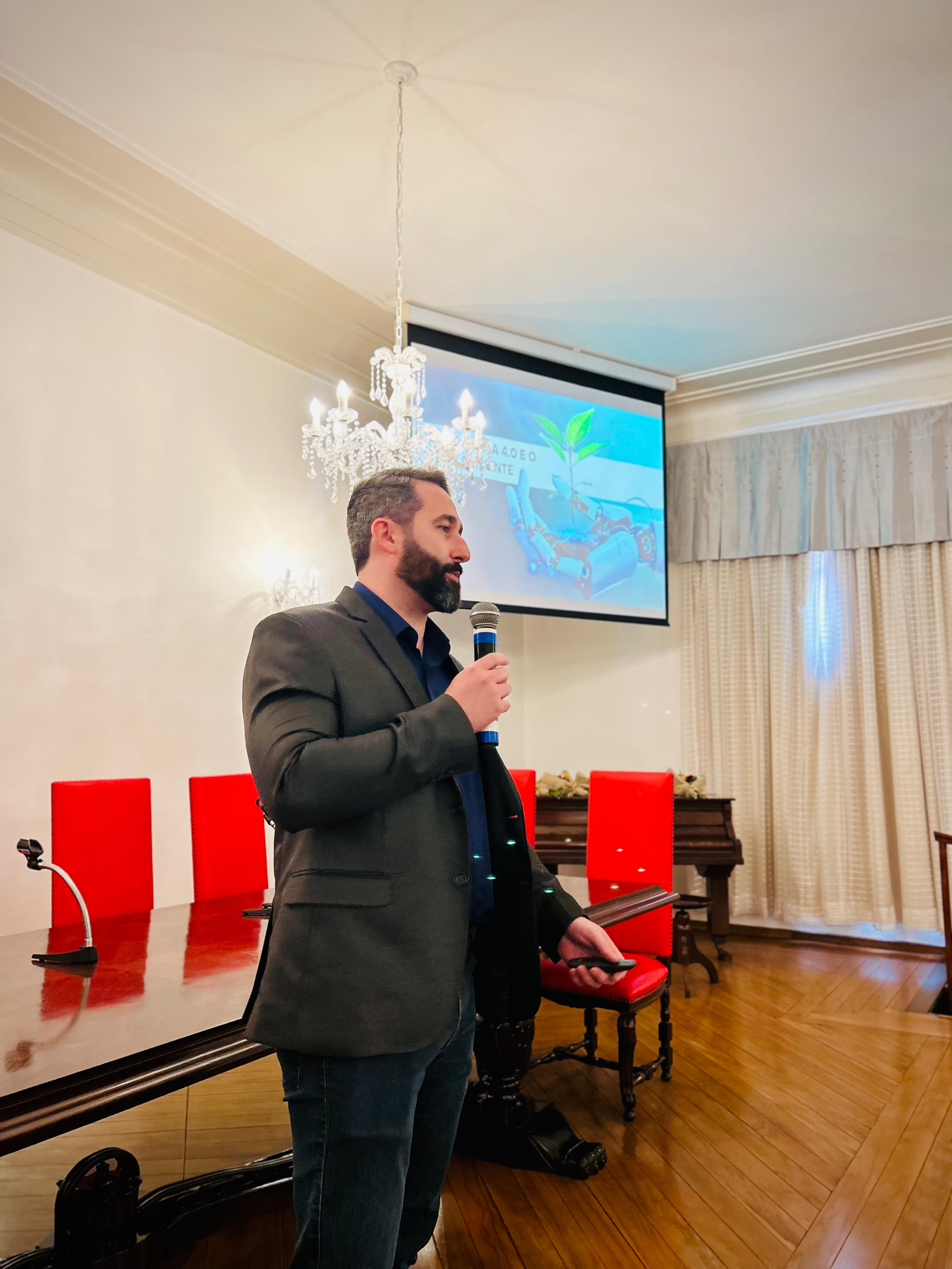 O palestrante convidado, Almir Santos, Diretor Executivo da UTD Suzano, trouxe uma análise aprofundada sobre a Engenharia 4.0 e Meio Ambiente, abordando temas como Big Data, realidade aumentada, impressão 3D, manufatura aditiva, computação em nuvem, cyber segurança, Internet das Coisas e robôs autônomos. Ele também destacou aplicações concretas da Engenharia 4.0 nos hospitais, como sistemas inteligentes de gestão de energia e climatização, robôs autônomos, RFID e Digital Twin.