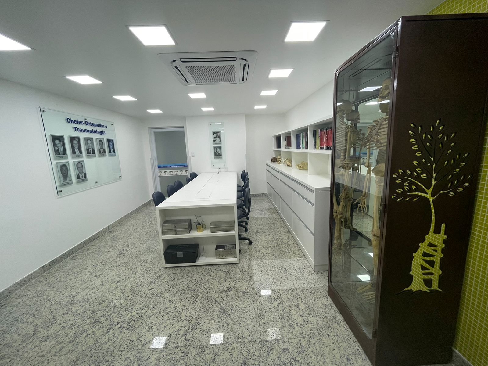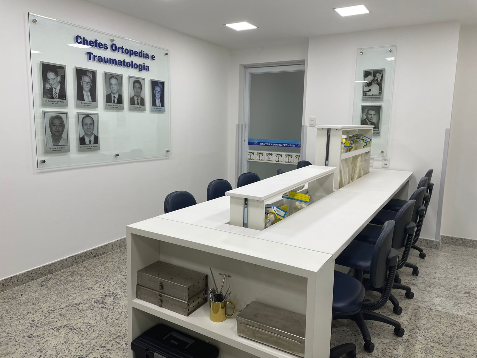 O local também conta com televisor de led full hd, instrumentos cirúrgicos para simulações, e um painel ilustrando todos os médicos chefes que fizeram parte da história do serviço.