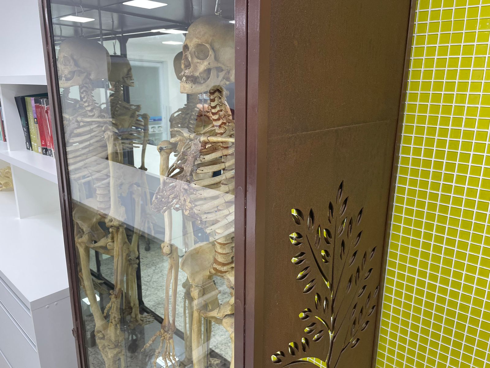Toda a estrutura e mobiliário foram planejados pensando nos mínimos detalhes, propiciando o melhor desempenho das atividades propostas, que incluem a prática de procedimentos em protótipos e ossos sintéticos. O grande destaque da sala é a mesa de estudos com compartimento automatizado e revestimento em couro, para evitar o deslizamento das peças usadas na prática das técnicas.